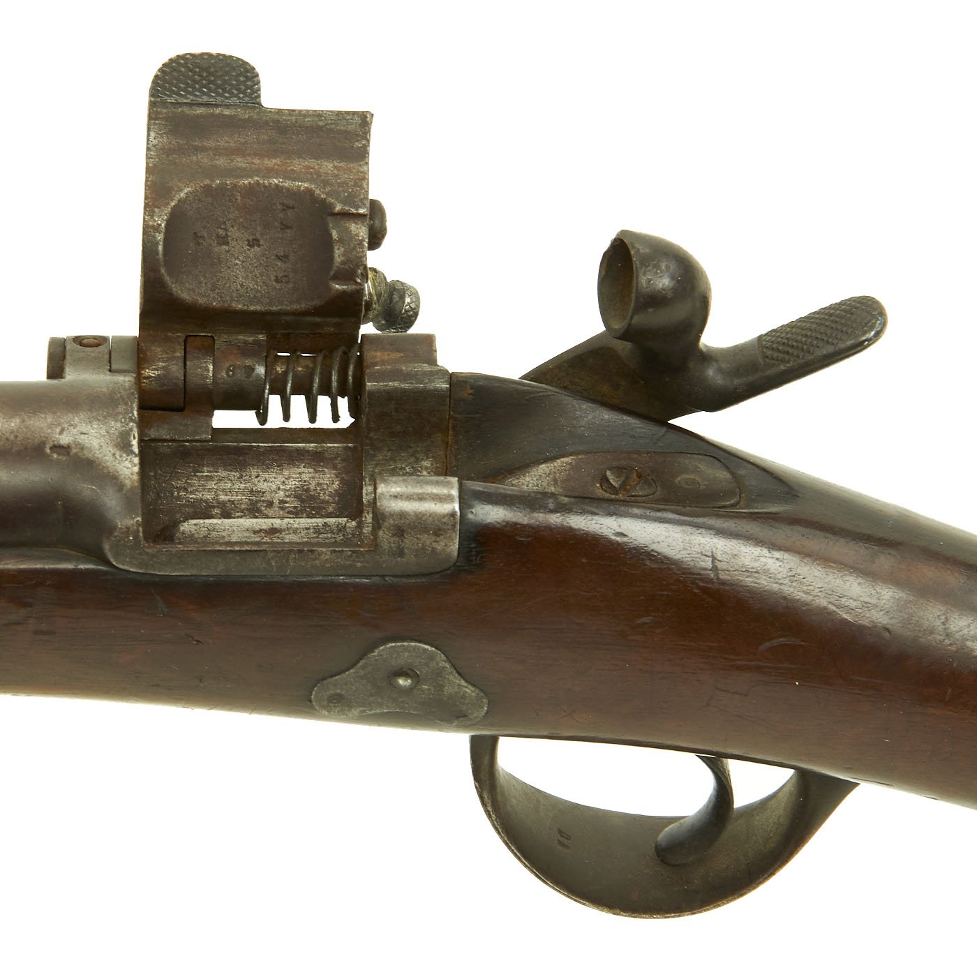 Most of the Tabatière Rifles were converted from the 1857 French back action Percussion Rifle and were designated the Model of 1857/1869. A much smaller quantity were converted from the original French Modèle 1822 Flintlock smooth bore muskets, which had been converted themselves into percussion in the 1840s, and had been fitted with RIFLED Barrels.
