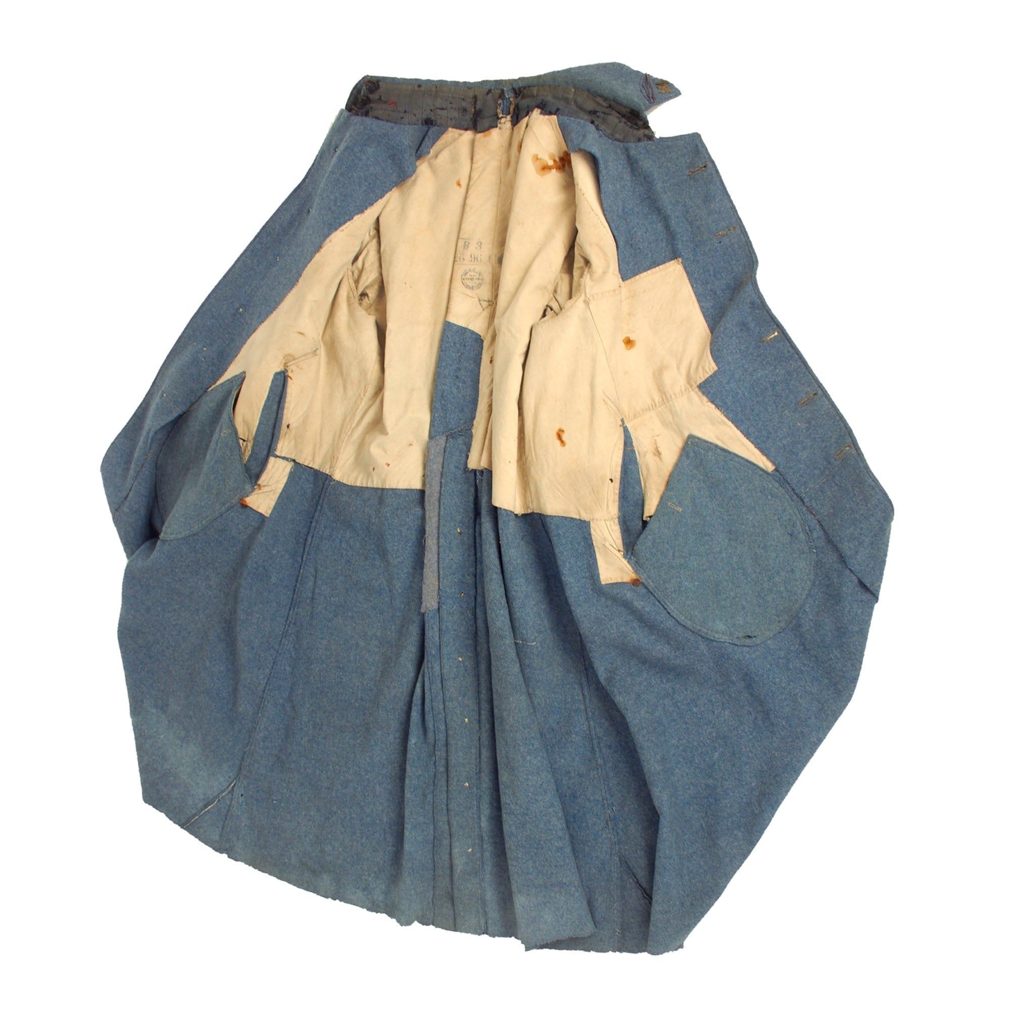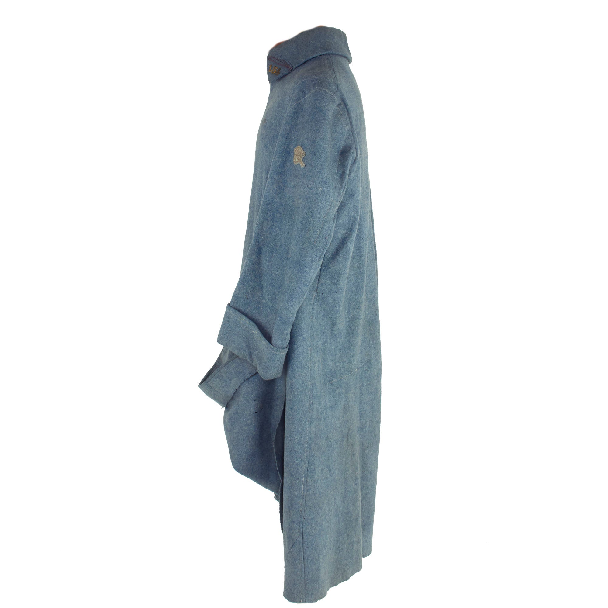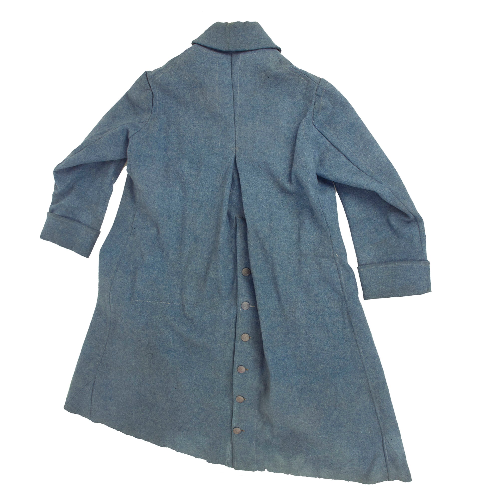 Original Item: Only One Available. This heavy greatcoat is in lovely, field used condition with various field repairs done to it as well as what appears to be possible post war repairs. The buttons still retain their original finish and all appear to be present. The tunic appears as “rough” but you have to keep in mind that the French, as well as the rest of the world, had fought a long and brutish war in their backyards. Resupplies were cut off, ambushed and attacks were always present and they were unable to acquire new items so the soldiers would have to repair and reuse what they already had, and this is a great example of that.