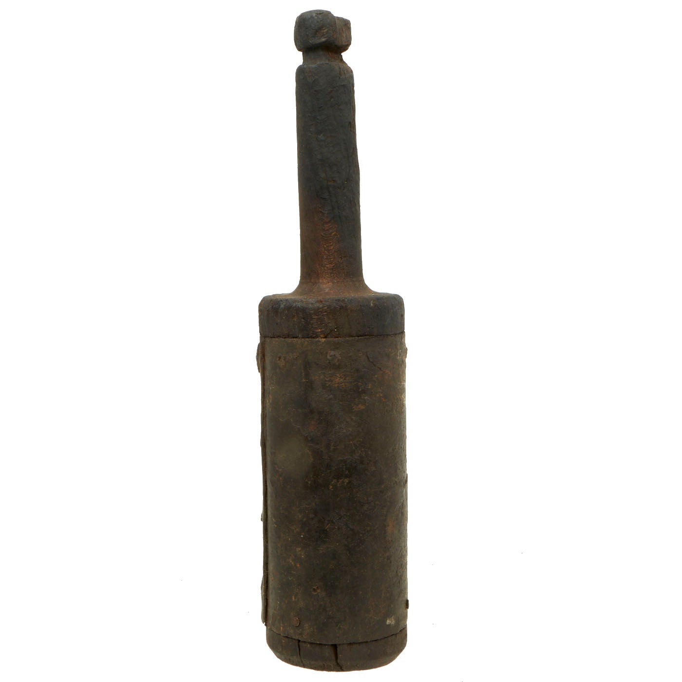 This example is offered totally inert with all explosives removed per BATF specifications. It still has both the wooden ends, and the end plug is marked 3-7. Ready to add to your "Great War" explosives collection!