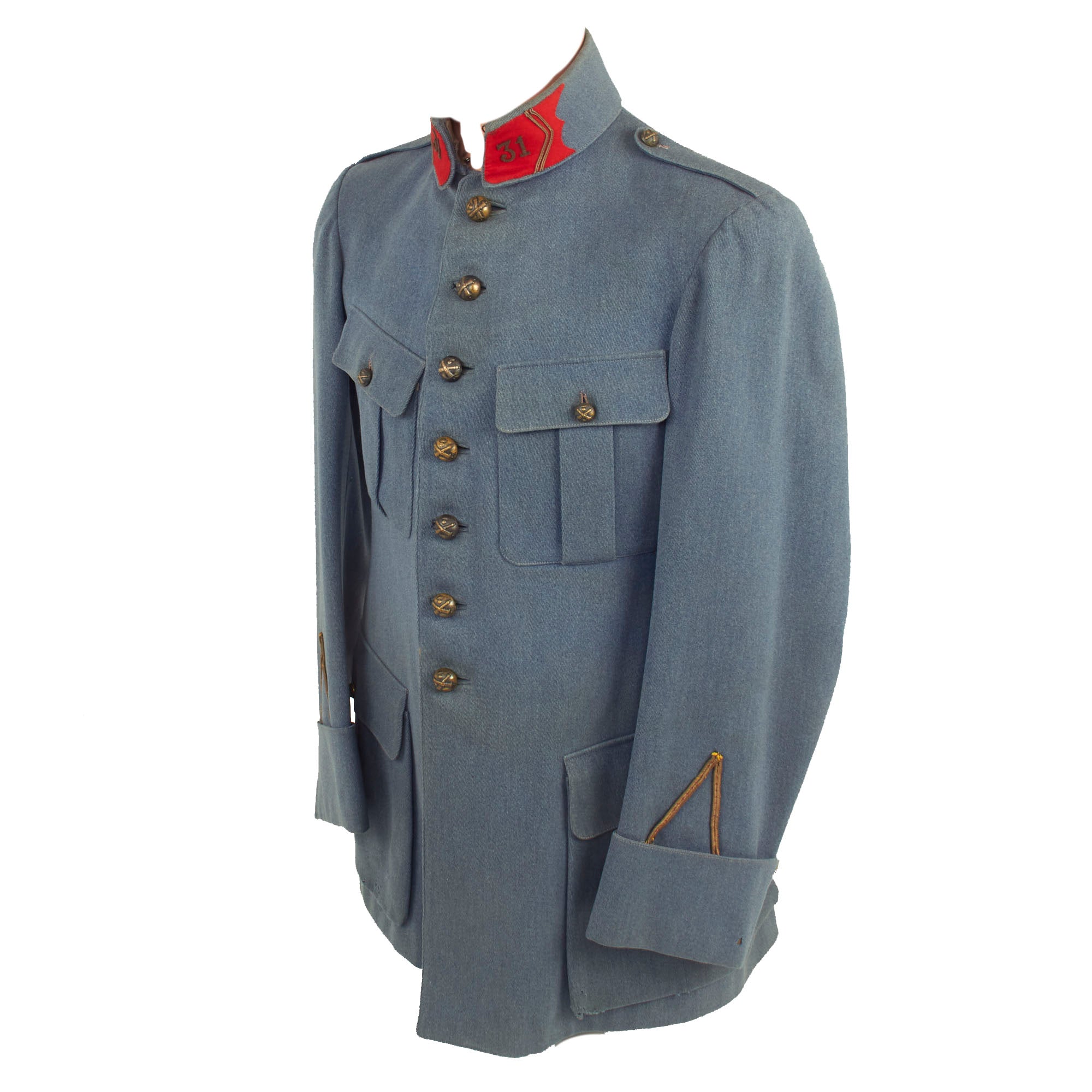 Original French WWI 31st Army Corps Artillery Sergeants Horizon Blue Wool Uniform - Tunic and Pants