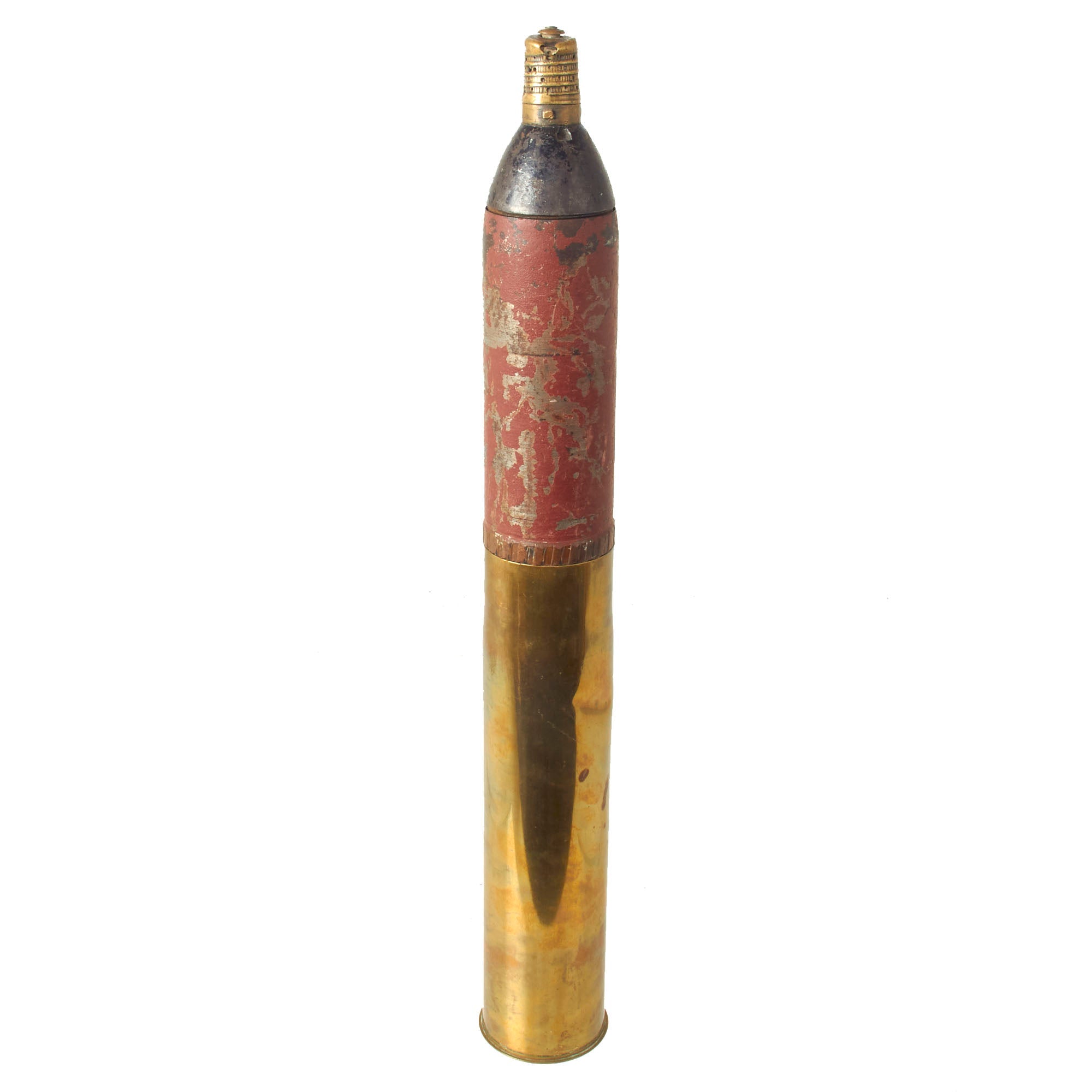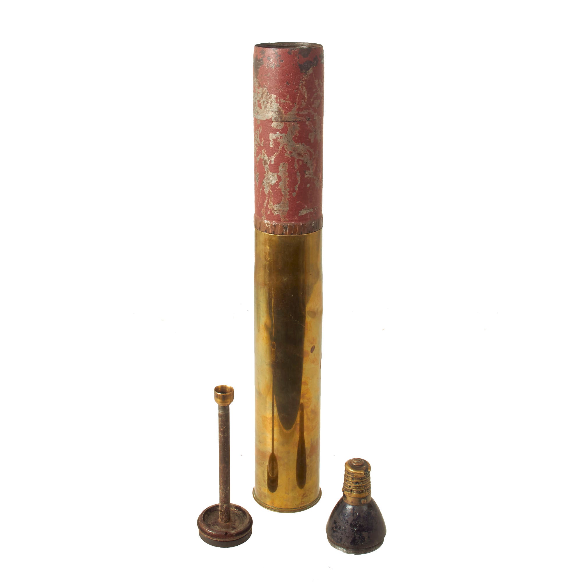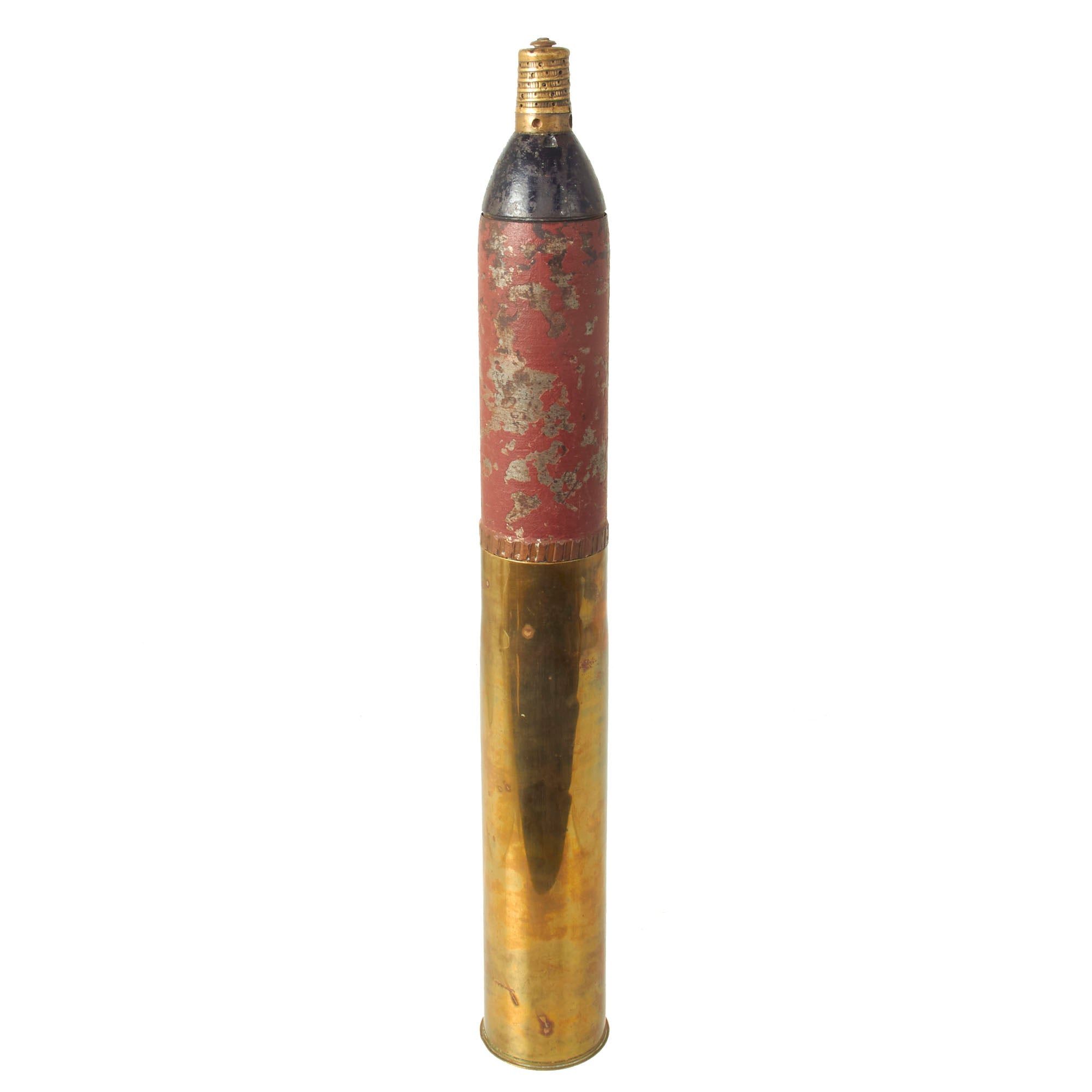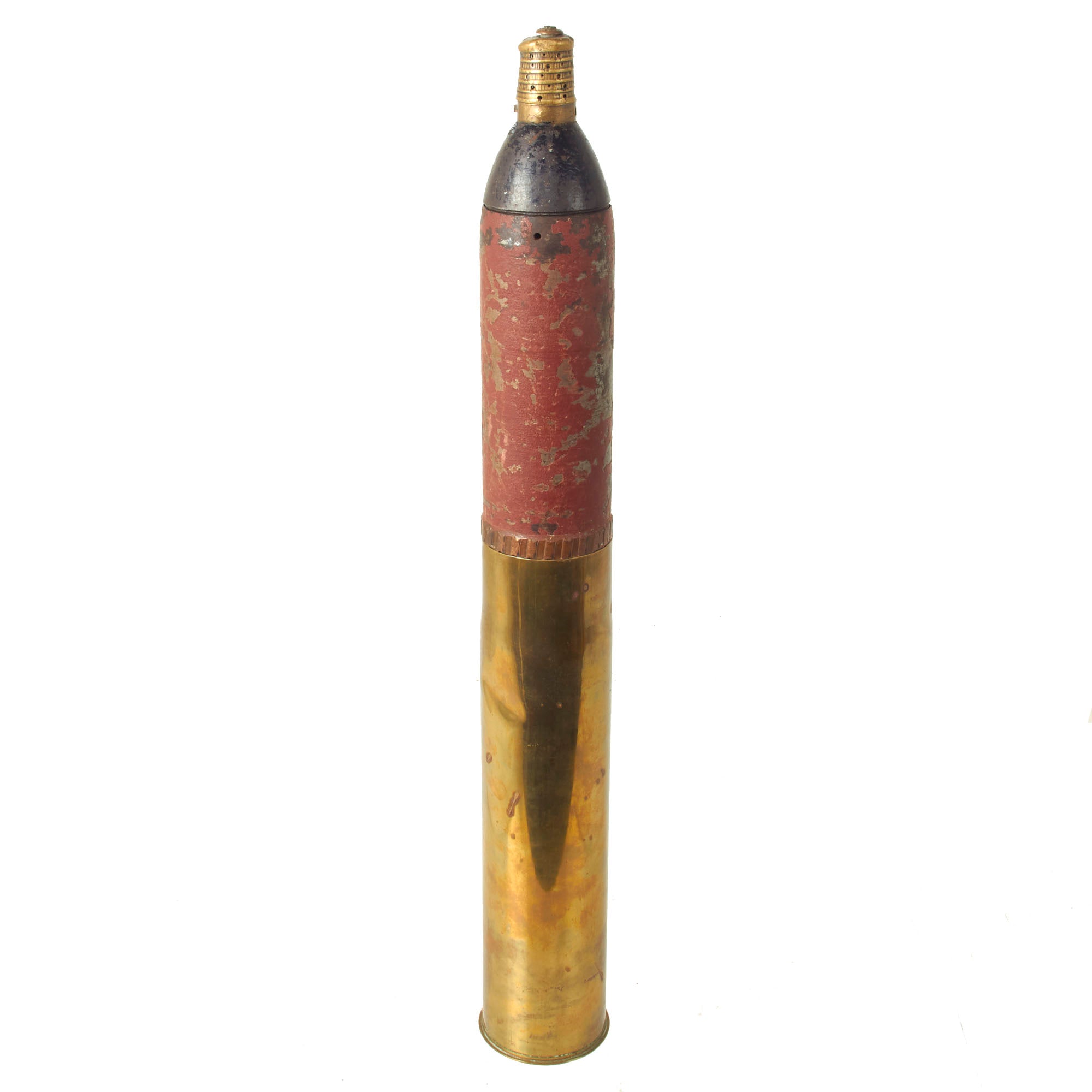 Original Item: Only One Available. This is a lovely example of a 75mm Shrapnel round as used with the M1897 75mm FIeld Gun. This round is completely INERT per BATF compliance and cannot be used as an explosive device.