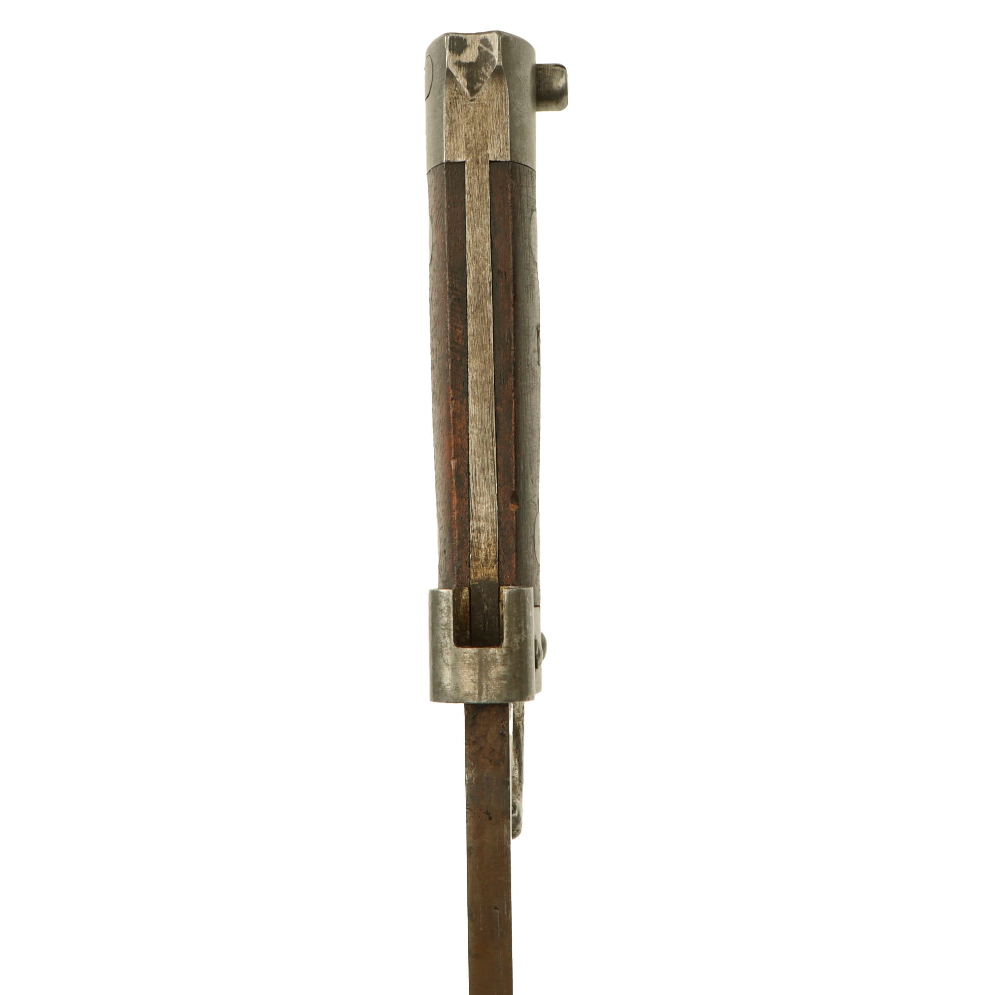 Original Item: Only One Available. These were originally issued before the Great War and were designed to be for use with the Mannlicher Berthier Infantry Rifles. It is a somewhat standard sword type bayonet, with a single edged fullered blade. The pommel design however is definitely somewhat unique, designed for a bayonet lug that fits into a round hole in the pommel of the bayonet.