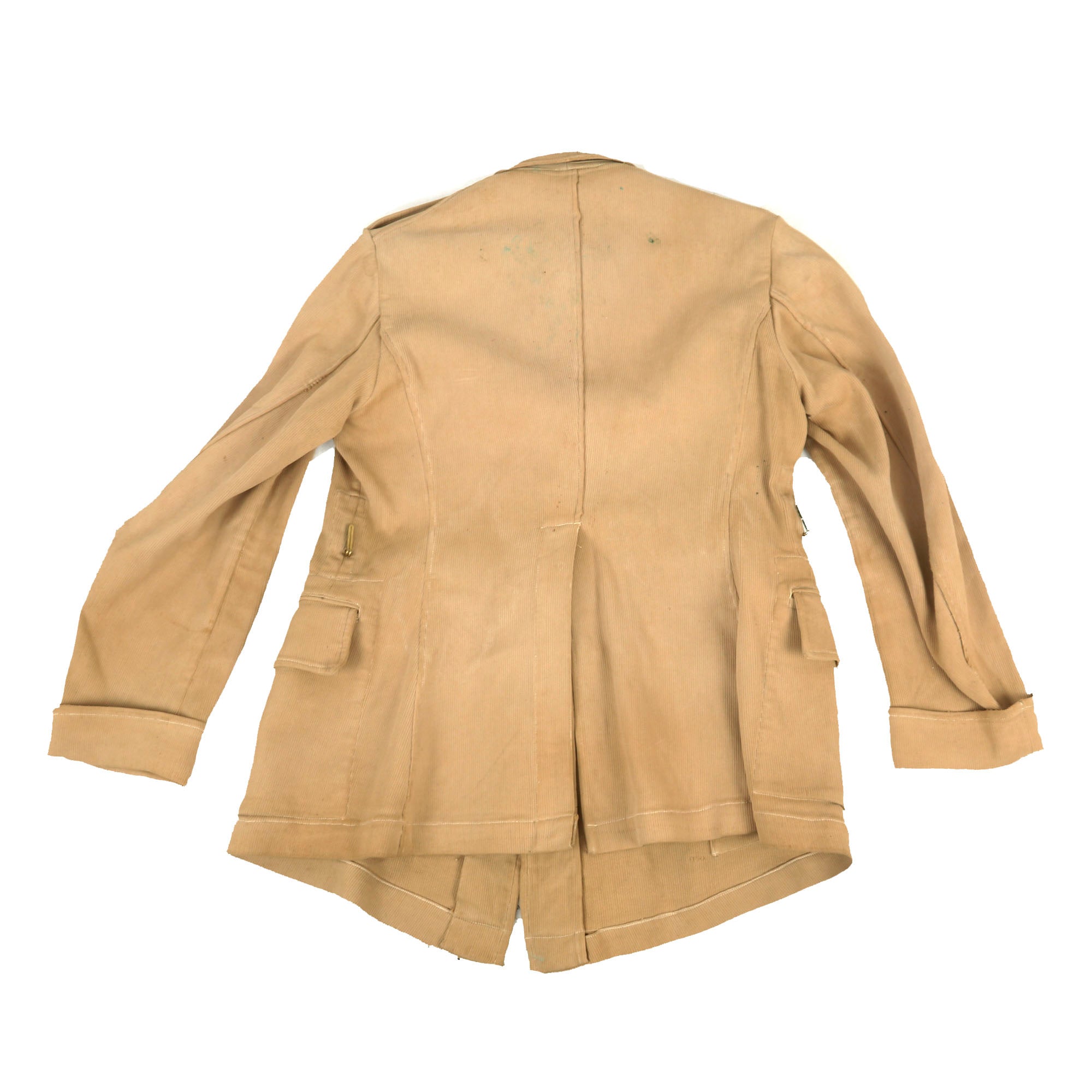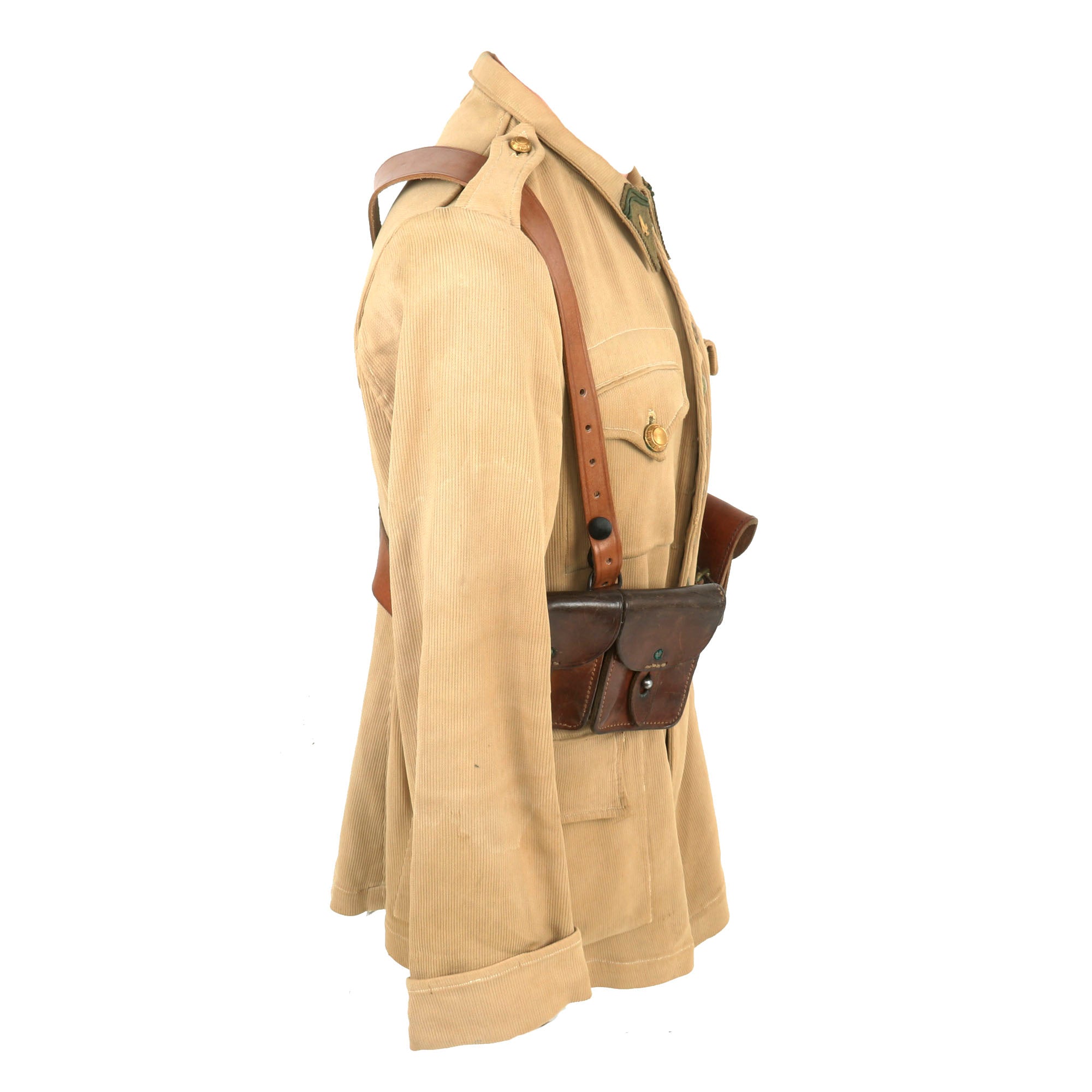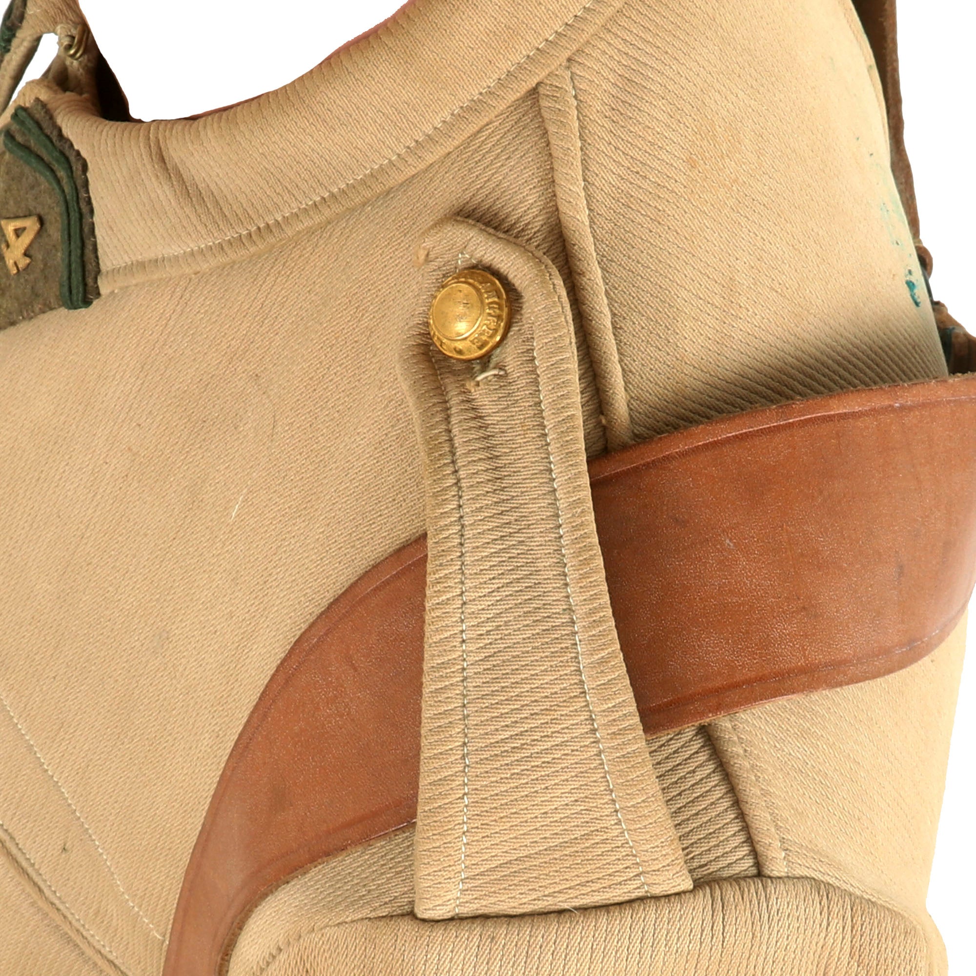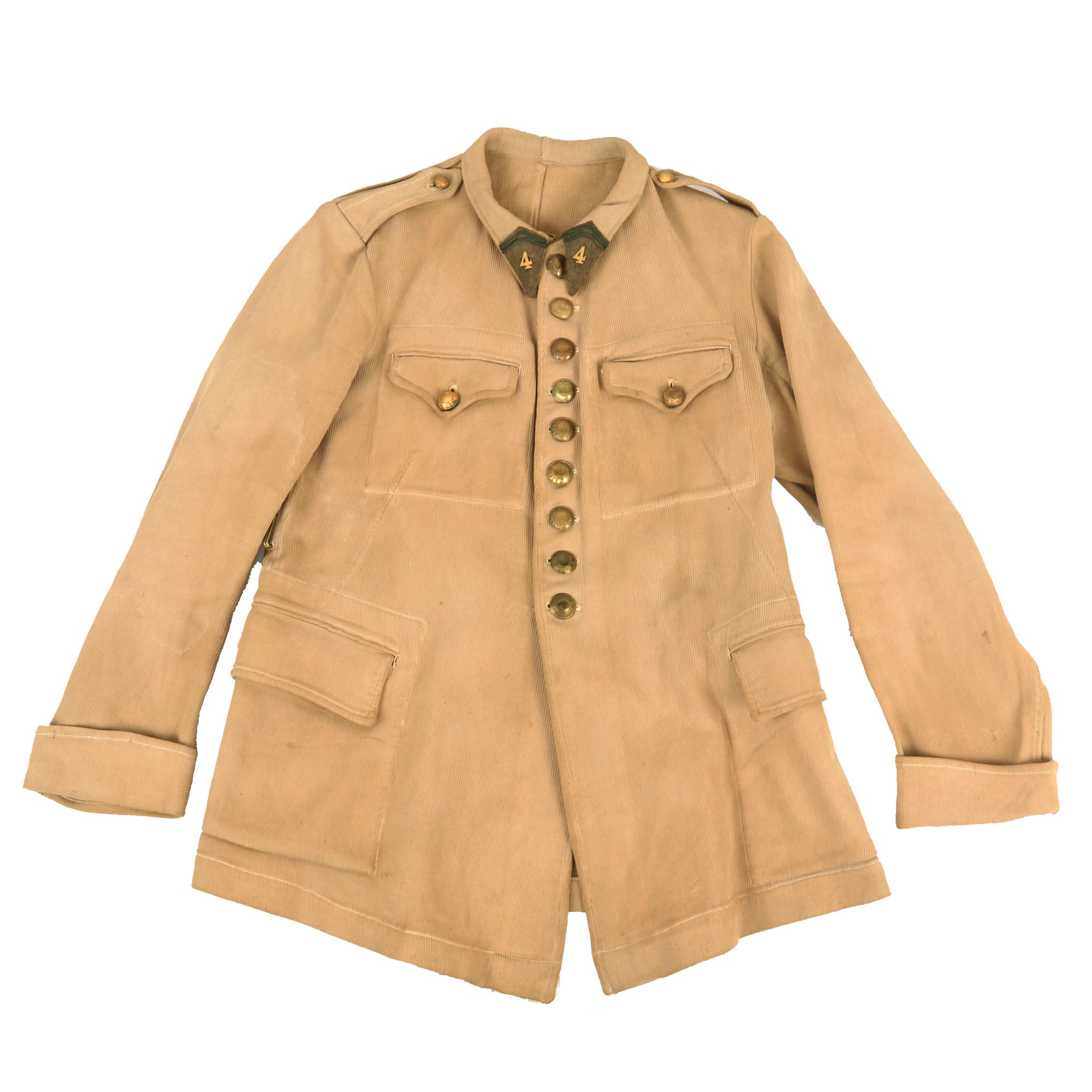 This is a lovely Post-WWI French Foreign Legion Corduroy uniform named on the interior under the buttons to Motat Gouaix of the 4th Foreign Regiment as indicated by the collar tabs. The Created in November 1920 in Marrakesh, Morocco, the 4th Foreign Regiment became the 4th Foreign Infantry Regiment in 1922. Following its formation, the regiment was engaged in campaigns in Morocco in the Rif War between 1920 and 1934.