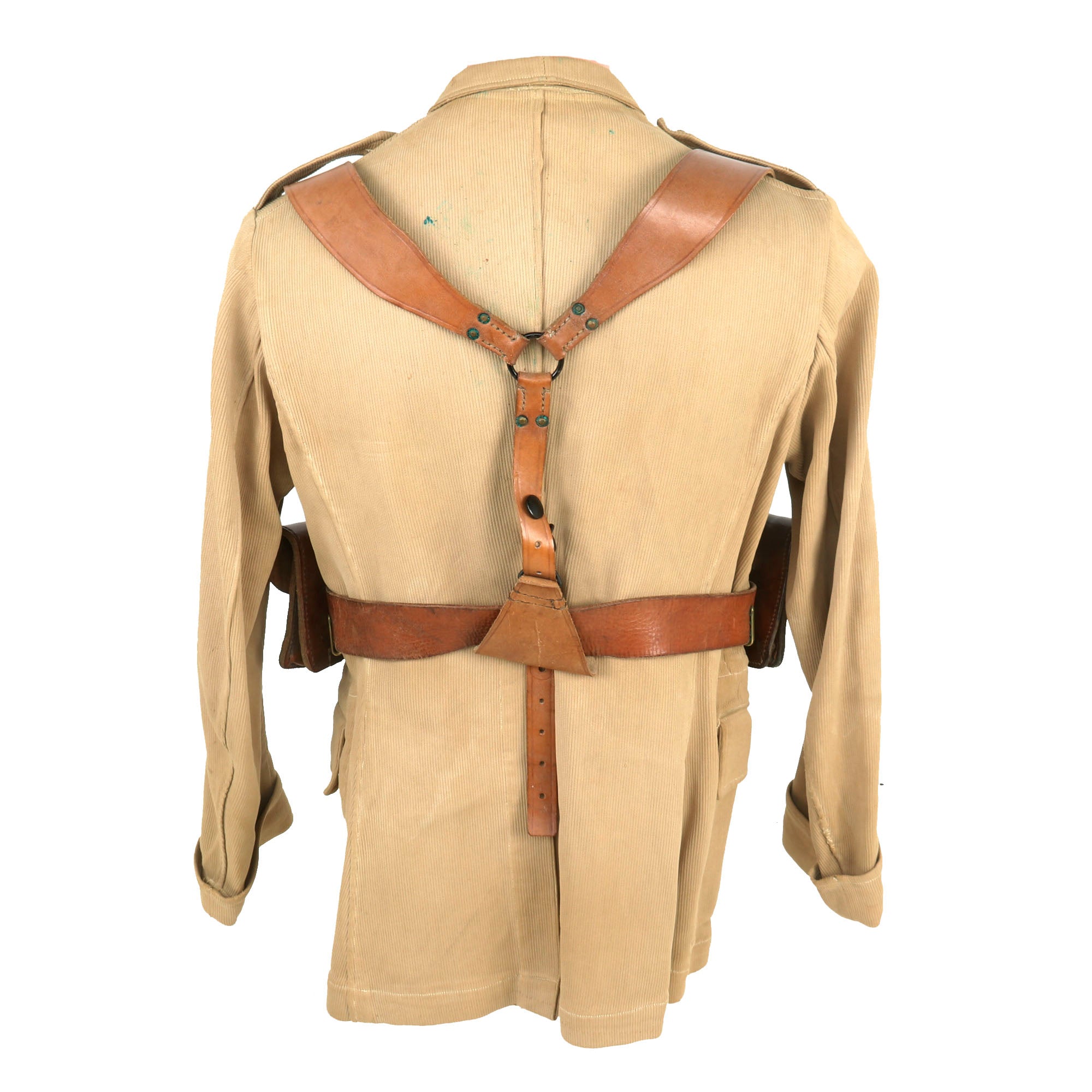 The included Y-Strap rig is from the 1950s era and was added to the grouping for display purposes. It sits well in the belt loops on the jacket and is good for display.