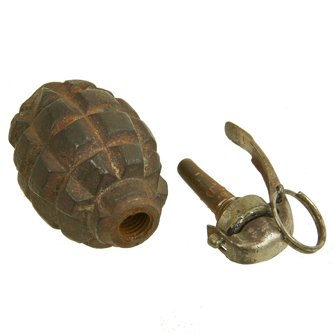 Original Item: Only One Available. This is totally inert BATF compliant genuine World War One French F1 Grenade with a Billant Modèle 1916 B fuse offered in very good condition. This was the fourth and most effective type of fuse used with the F1 grenade during WWI. The first fuse was a simple lit wick type, which had obvious drawbacks.