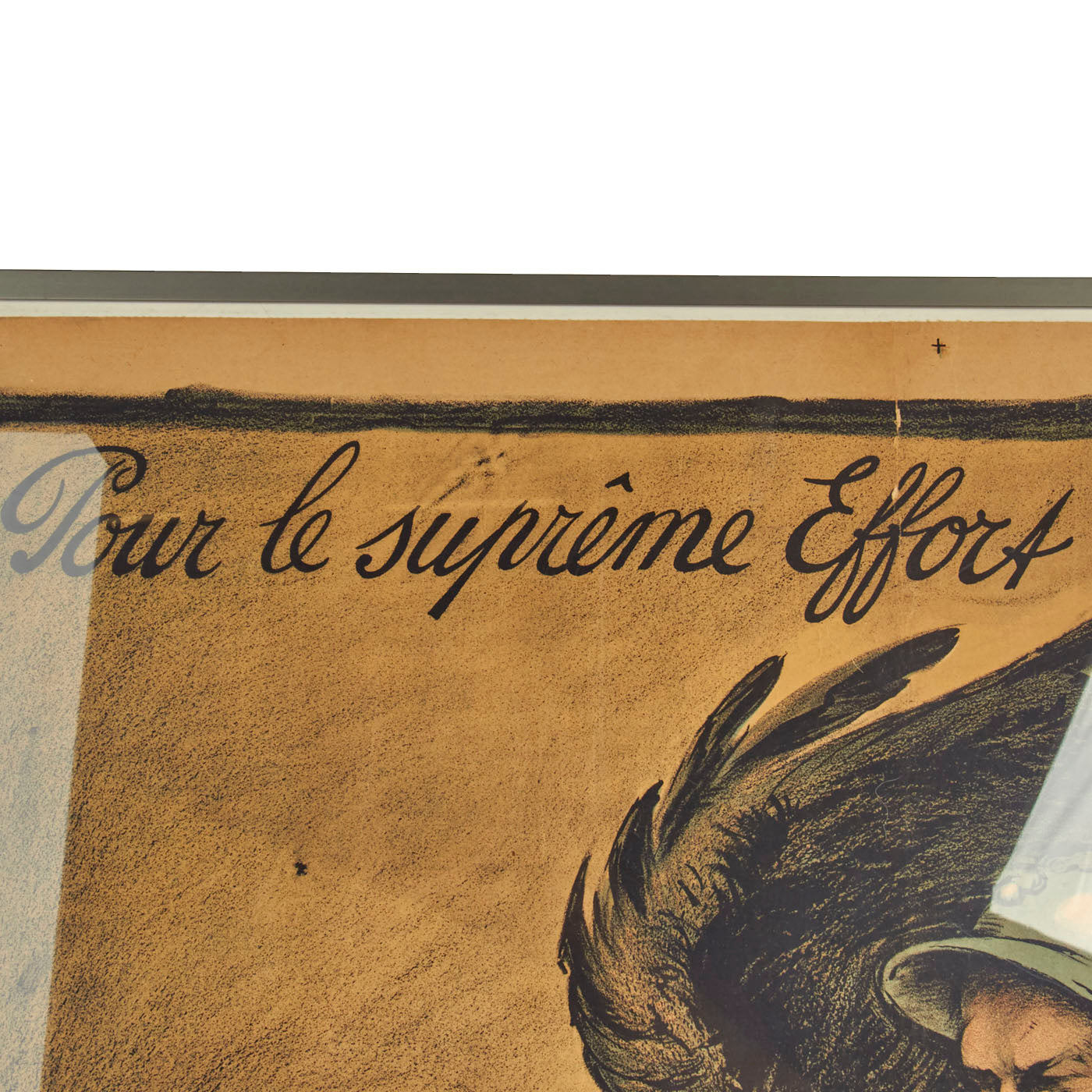 Here, the artist illustrates the horror of German occupation by adding a burning village, abandoned gun, and spiked German helmet to the background. The very real and desperate fight between French and German troops in August 1918 is dramatized here as a ferocious eagle bites and attacks a French soldier, its large wings spreading beyond the border of the image. Walter Russell Bowie, an American Red Cross chaplain assigned to France during the war, wrote about this poster’s impact on the streets of France in 1918: “For many months France had been trying to drive the Germans back. For a long time she had been fighting that great, black eagle whose wings threw a shadow over all the land. France . .. had fought until it seemed as though all the strength of Frenchmen was exhausted, and as though it was not possible to try any more. But that poster was meant to make them remember that they must still keep on. There was to be one last, great try. The eagle was not yet choked. France must not let go until the work was finished.”