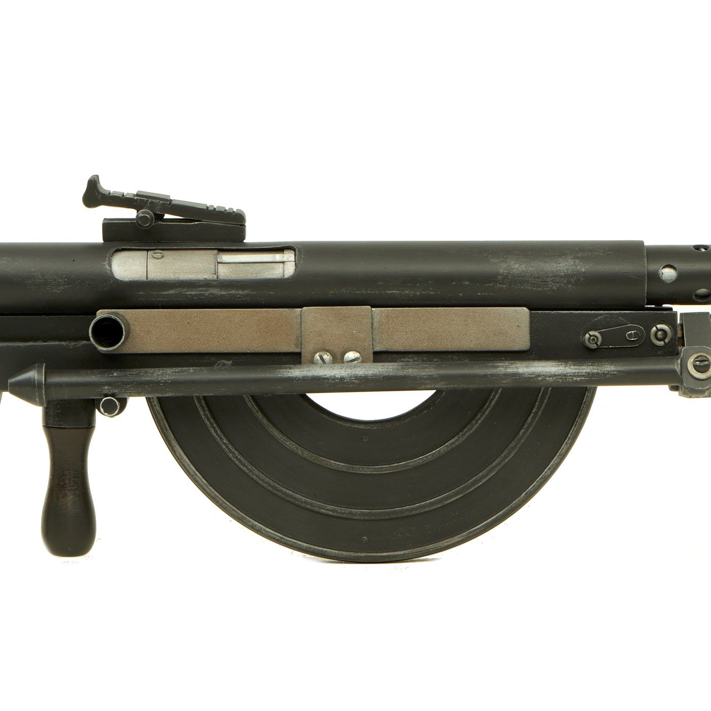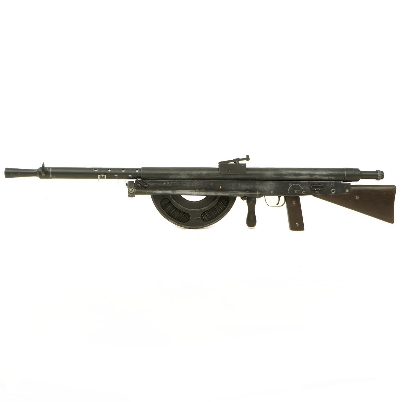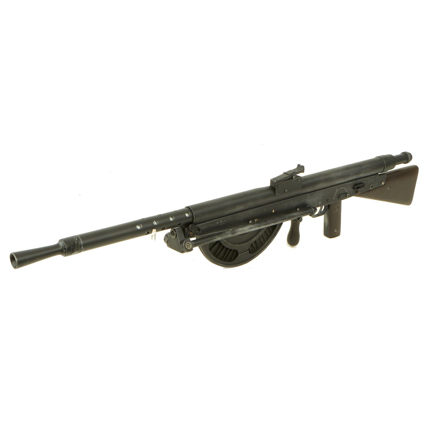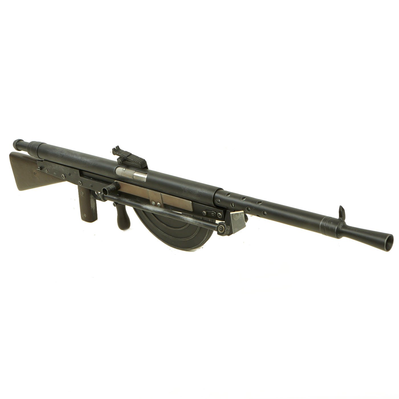 The Chauchat, named after its main contributor Colonel Louis Chauchat, was the standard machine rifle or light machine gun of the French Army during World War I (1914-18). Its official designation was "Fusil Mitrailleur Modele 1915 CSRG" (in English: "Machine Rifle Model 1915 CSRG"). It was mass manufactured during World War I by two reconverted civilian plants: "Gladiator" and "Sidarme". Beginning in June 1916, it was placed into regular service with French infantry where the troops called it the FM Chauchat. The Chauchat machine rifle in 8mm Lebel was also extensively used in 1917-1918 by the American Expeditionary Forces (A.E.F) where it was officially designated as the "Automatic Rifle, Model 1915 (Chauchat)". The armies of eight other nations, notably: Belgium, Finland, Greece, Italy, Poland, Romania, Russia and Serbia, also used the Chauchat machine rifle in fairly large numbers during and after World War I.