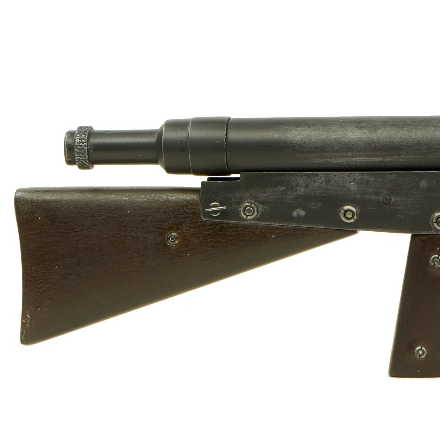 Original Item: Only One Available. Here we have a lovely French WWI Replica Display gun, made from composite plastic components with steel fasteners. It is 1:1 scale, and comes complete with a replica magazine with simulated internal springs. It is definitely not one single casting, and is made from multiple components that attach together.
