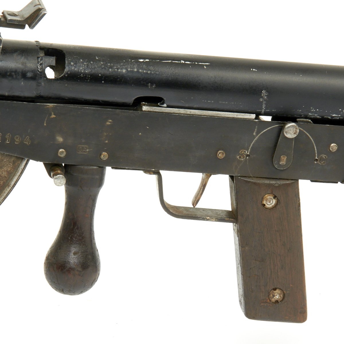 Condition is quite nice, and the wooden stocks are in very good condition. It is also marked 13194 on the butt cap, so most likely the parts set that this was built out of was a matched one. The bipod is a replacement.