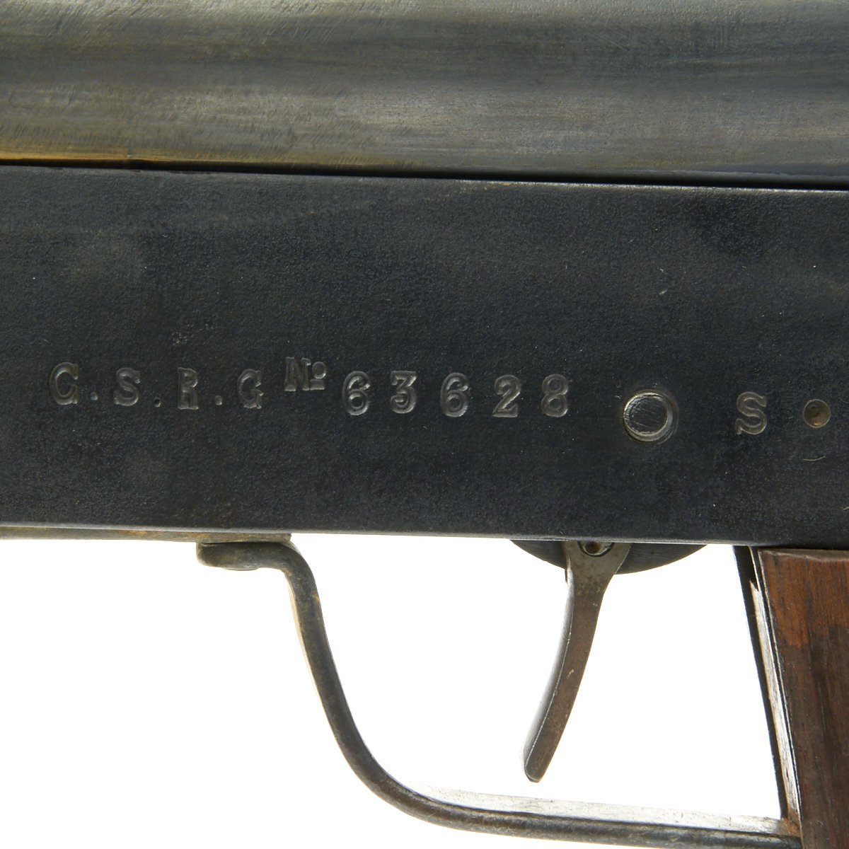 C.S.R.G. No. 13194 Condition is excellent, and the wooden stocks are in very good condition. It is also marked 63628 on the butt cap. This is an all matched serial number example complete with original bipod. We've only ever had a handful of these exceptionally rare LMGs, so this is an wonderful seldom seen opportunity to add to your Great War Collection.