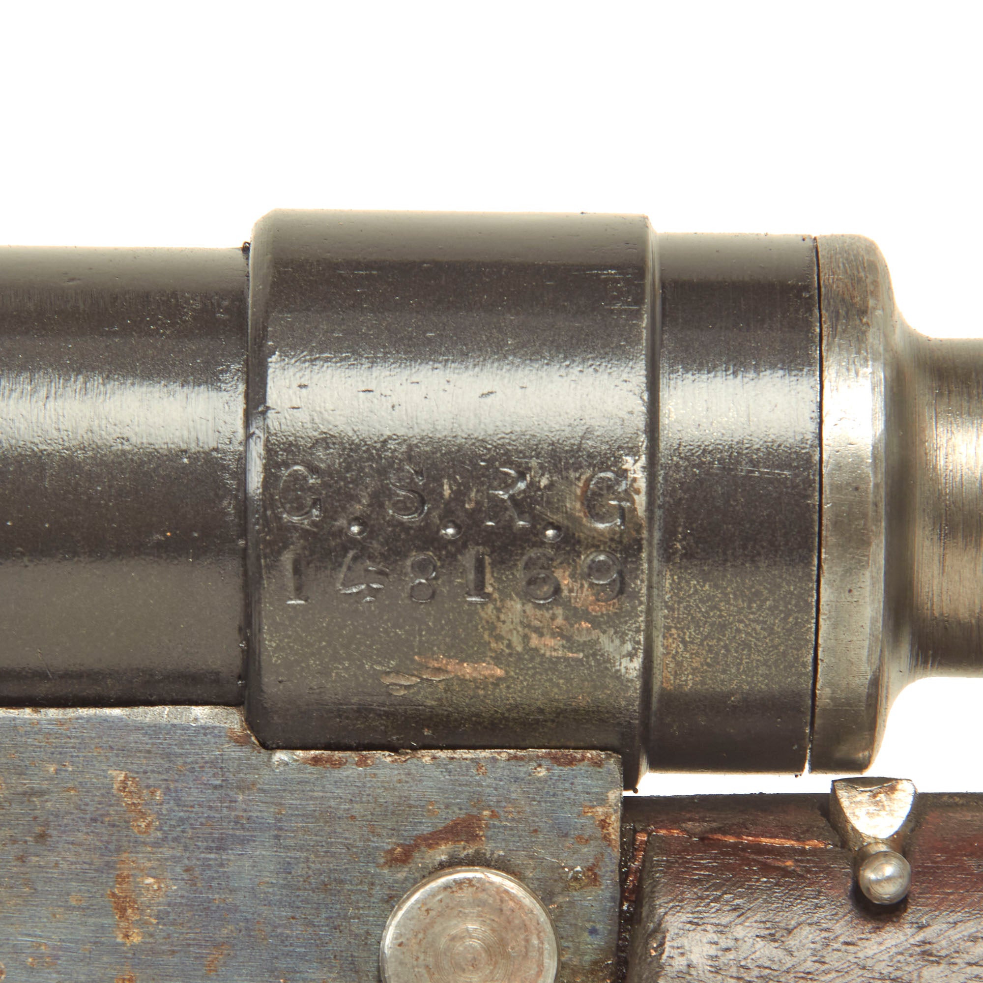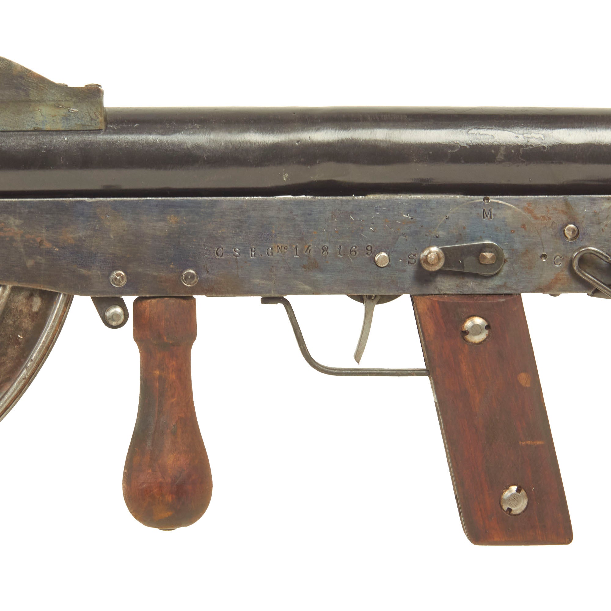 Condition is excellent, and the wooden stocks are in very good used condition, showing only light wear from service and a lovely color. It is also marked C.S.R.G. / 148169 on the rear of the receiver, and 148169 on the end cap of the recoil assembly butt cap! This is an all matched serial number example complete with original bipod, and comes with an original curved magazine (which can be deactivated if shipped to locations where required). We have found a few reference photos online showing the Chauchat in service with French Soldiers, which are shown for reference purposes only and not included.