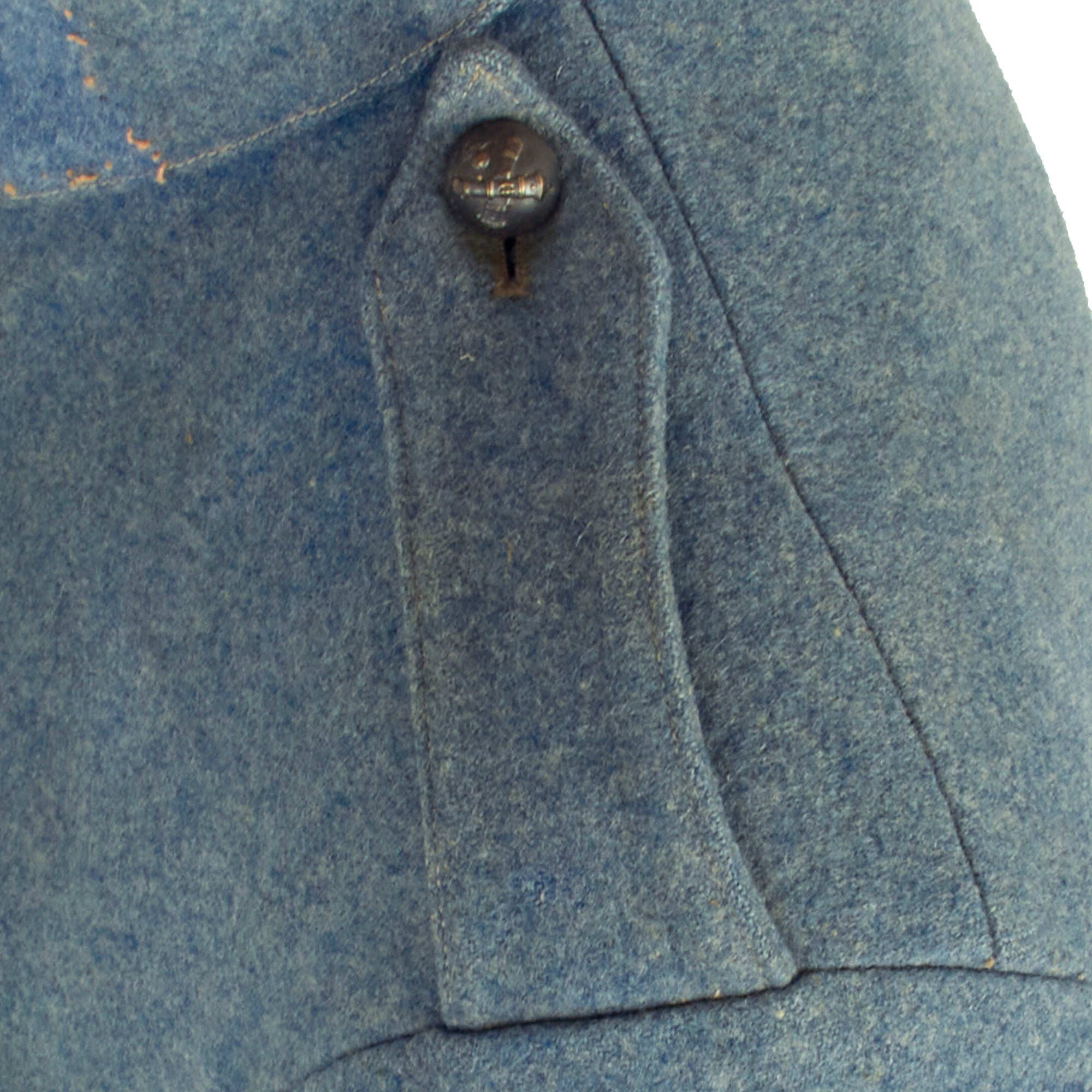 This heavy wool tunic is in lovely, field used condition with various field repairs done to it, mainly around the collar. The buttons still retain most of their original finish and all buttons appear to be present. The lower sleeve cuffs feature a lovely single gold rank slanted stripe indicating that this was once worn by a Sergeant in the French Army. The tunic appears as “rough” but you have to keep in mind that the French, as well as the rest of the word, had fought a long and brutish war in their backyards.