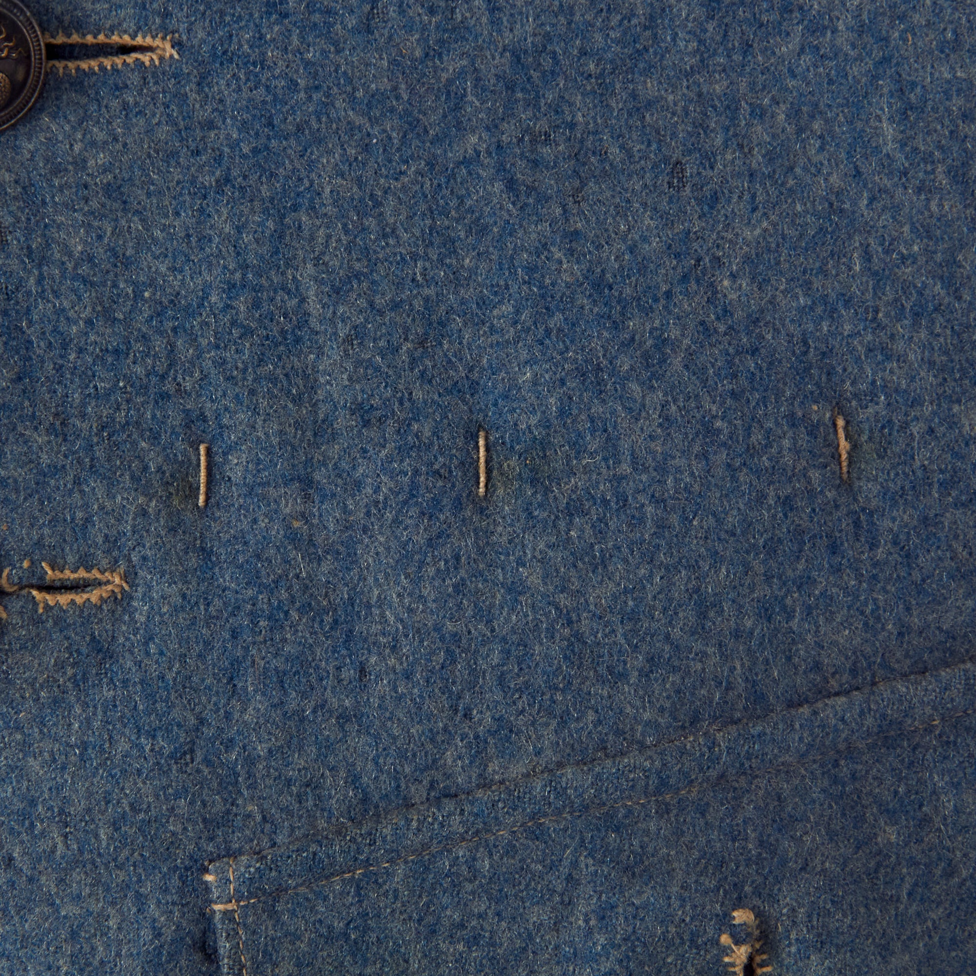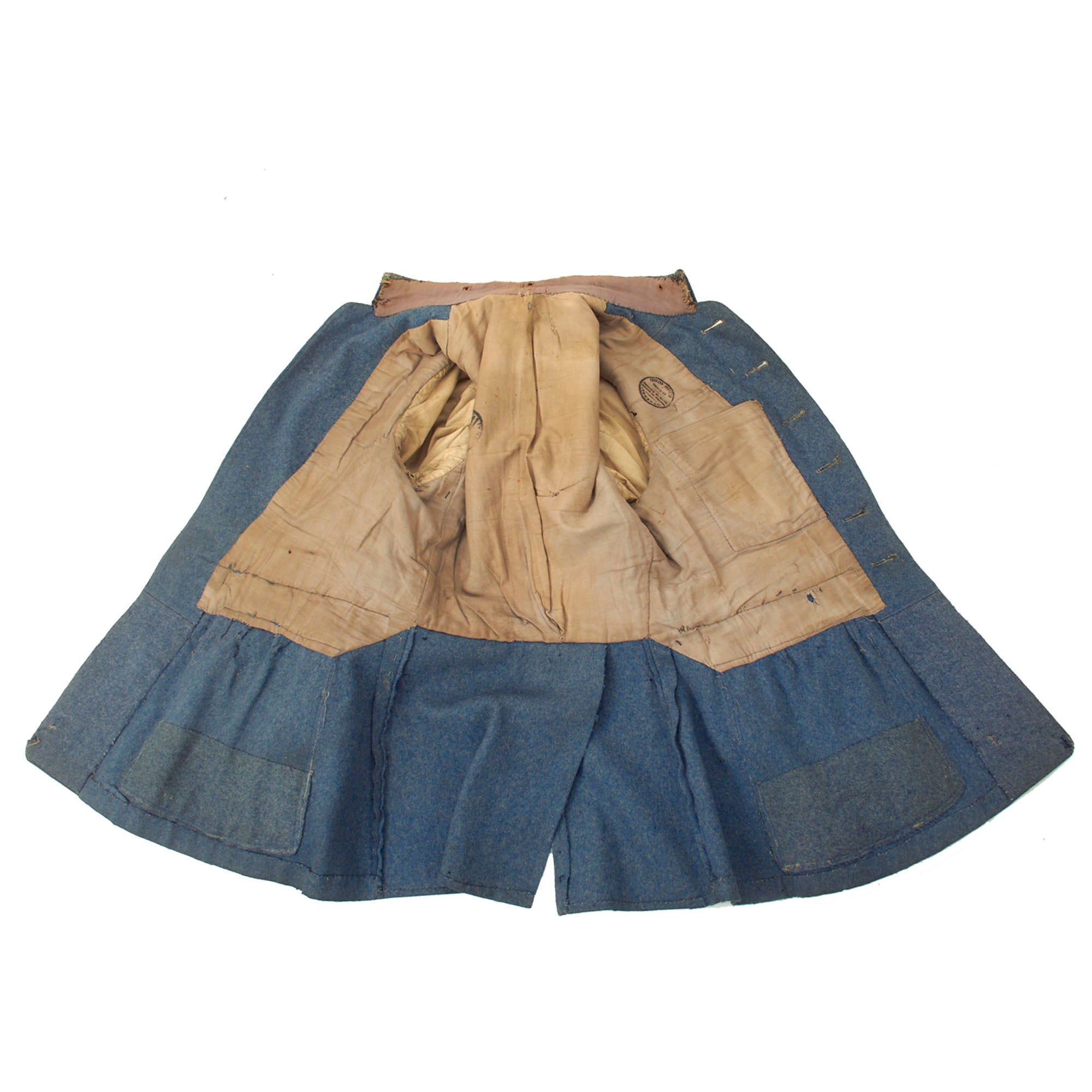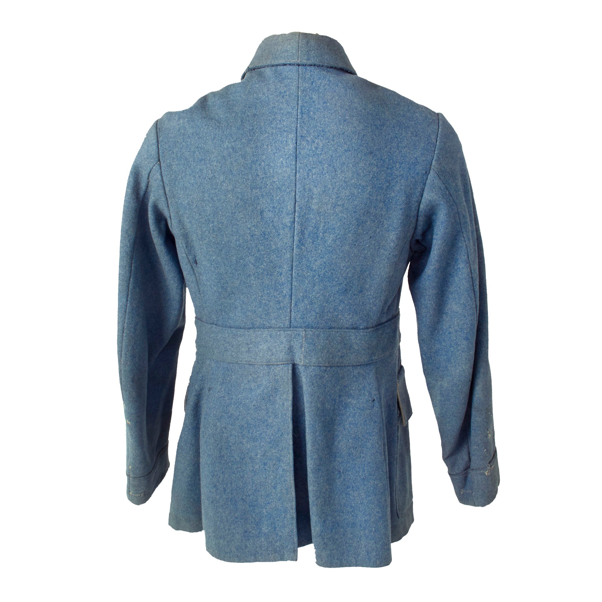 Original Item: Only One Available. This heavy wool tunic is in lovely, field used condition with various field repairs done to it as well as what appears to be possible post war repairs. The buttons still retain their original finish and all appear to be present. The tunic appears as “rough” but you have to keep in mind that the French, as well as the rest of the world, had fought a long and brutish war in their backyards. Resupplies were cut off, ambushed and attacks were always present and they were unable to acquire new items so the soldiers would have to repair and reuse what they already had, and this is a great example of that.