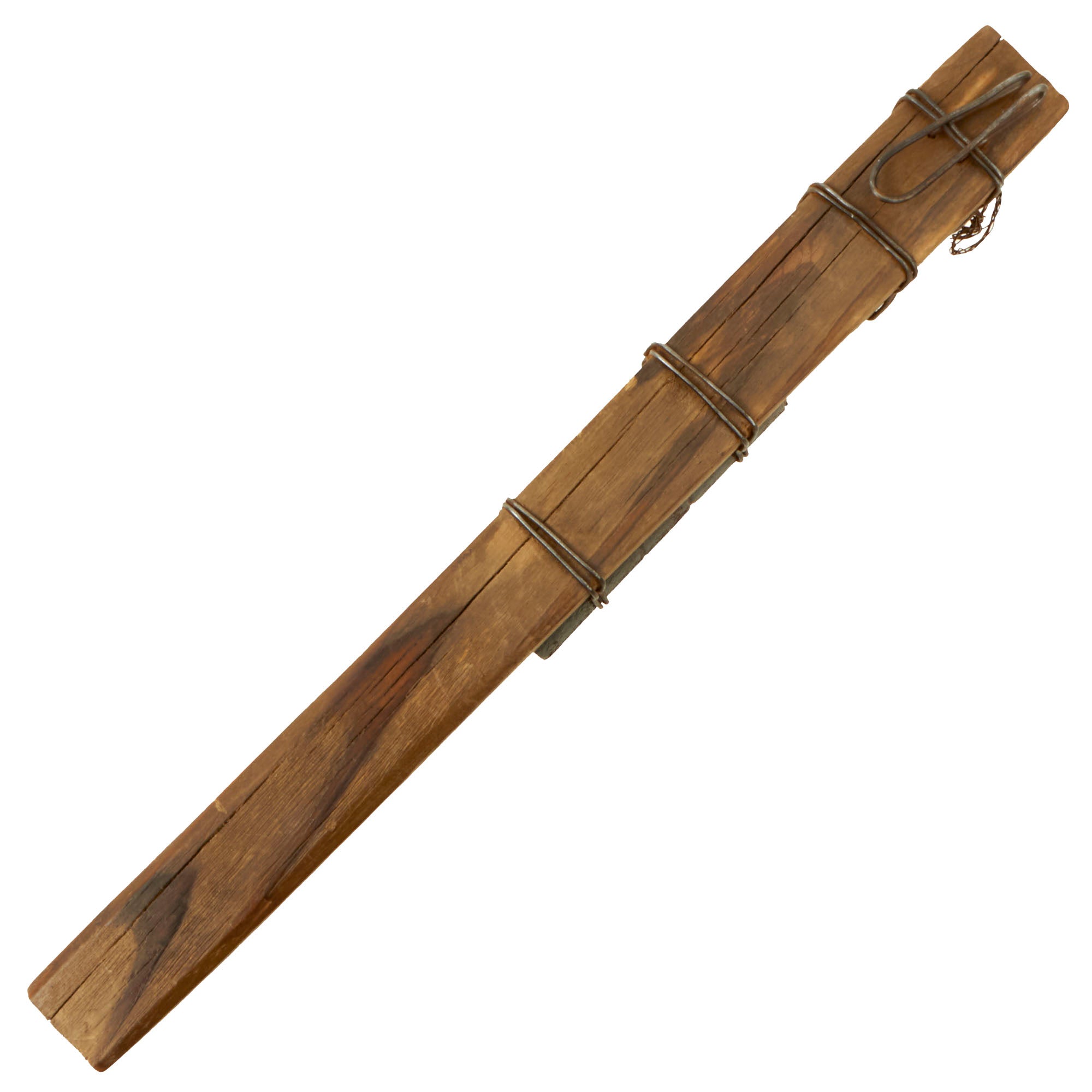 Condition is quite good considering the stick has been replaced. The pieces were likely found with a rotted-away stick, so it was remounted later to appear as it originally did. The device measures approximately at 14"L x 2" x 1 1/2".