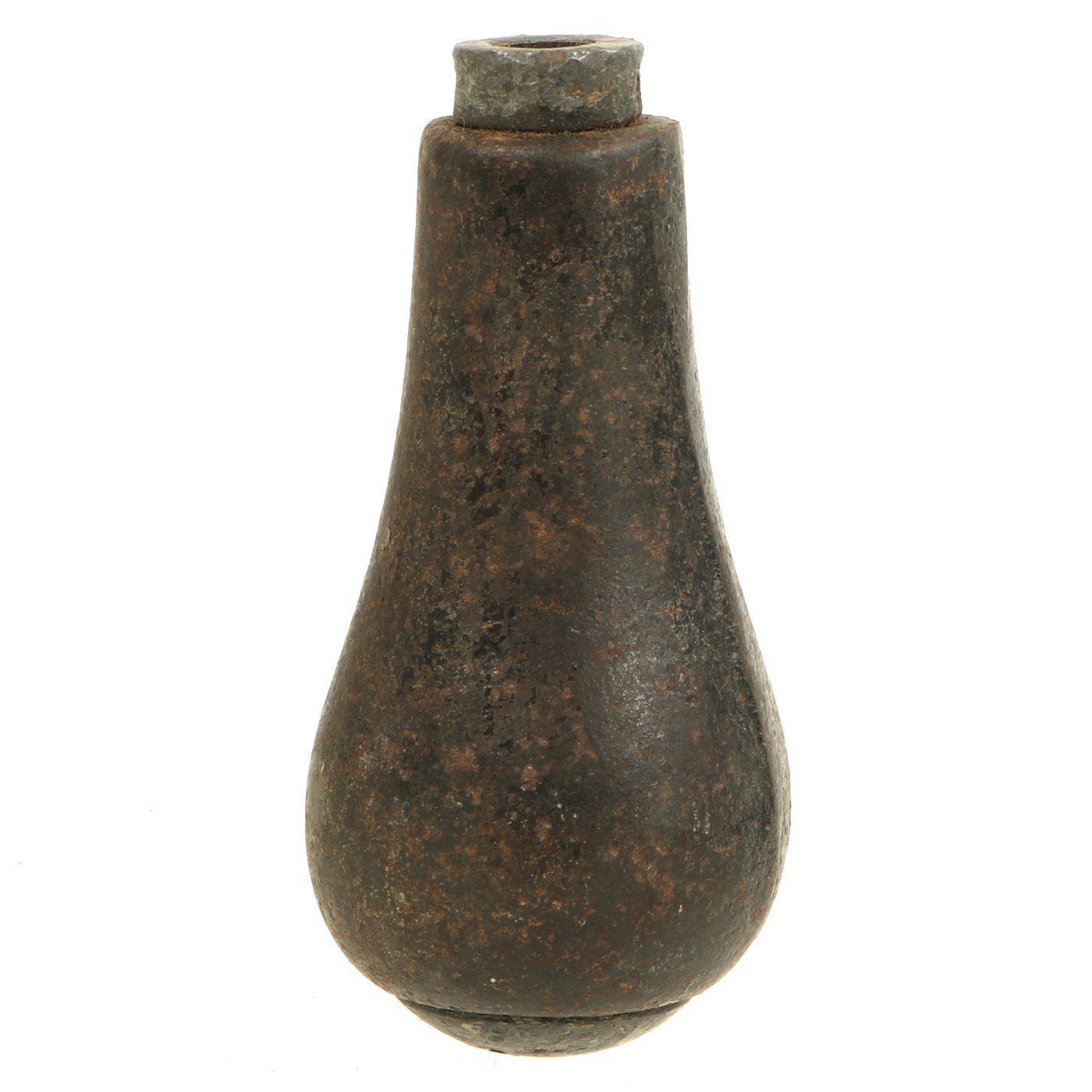 This example has an intact body, lead bottom cap, fuze bolster, and a partial "spoon". This would normally be connected to the fuze assembly at the top, but this is missing.