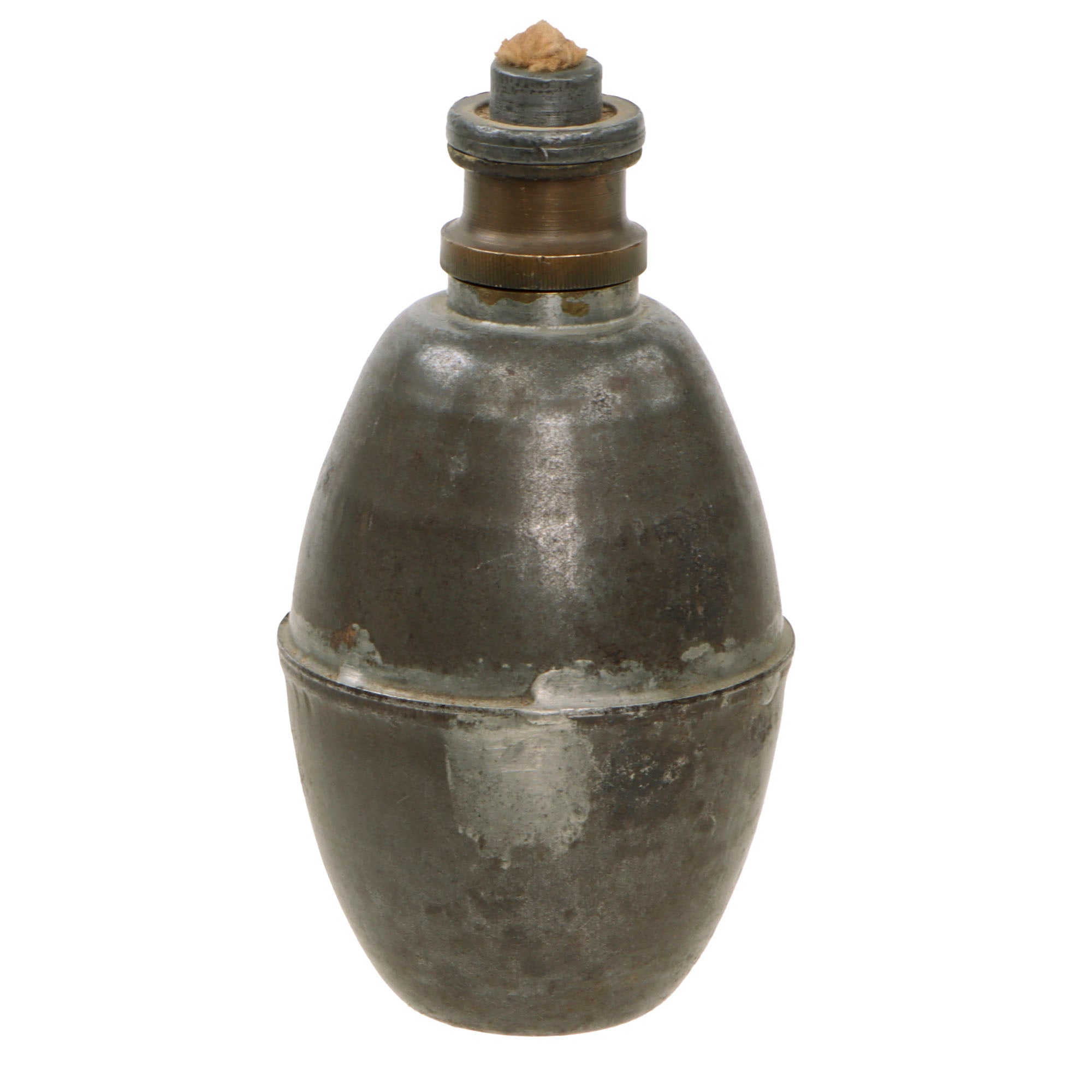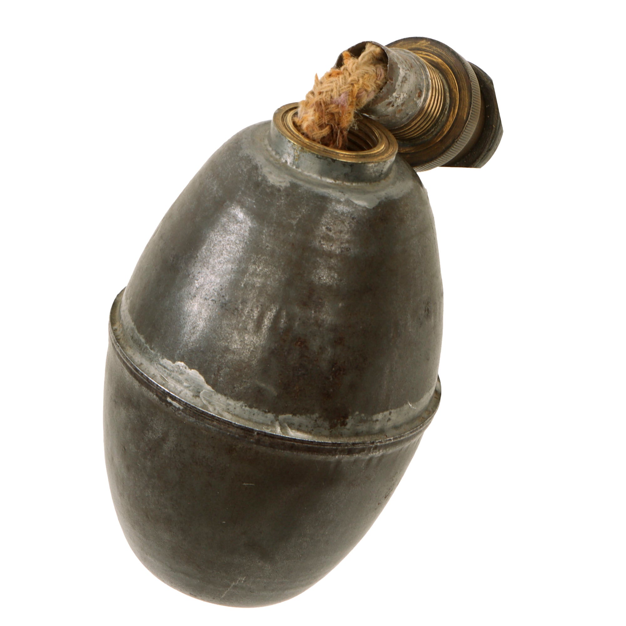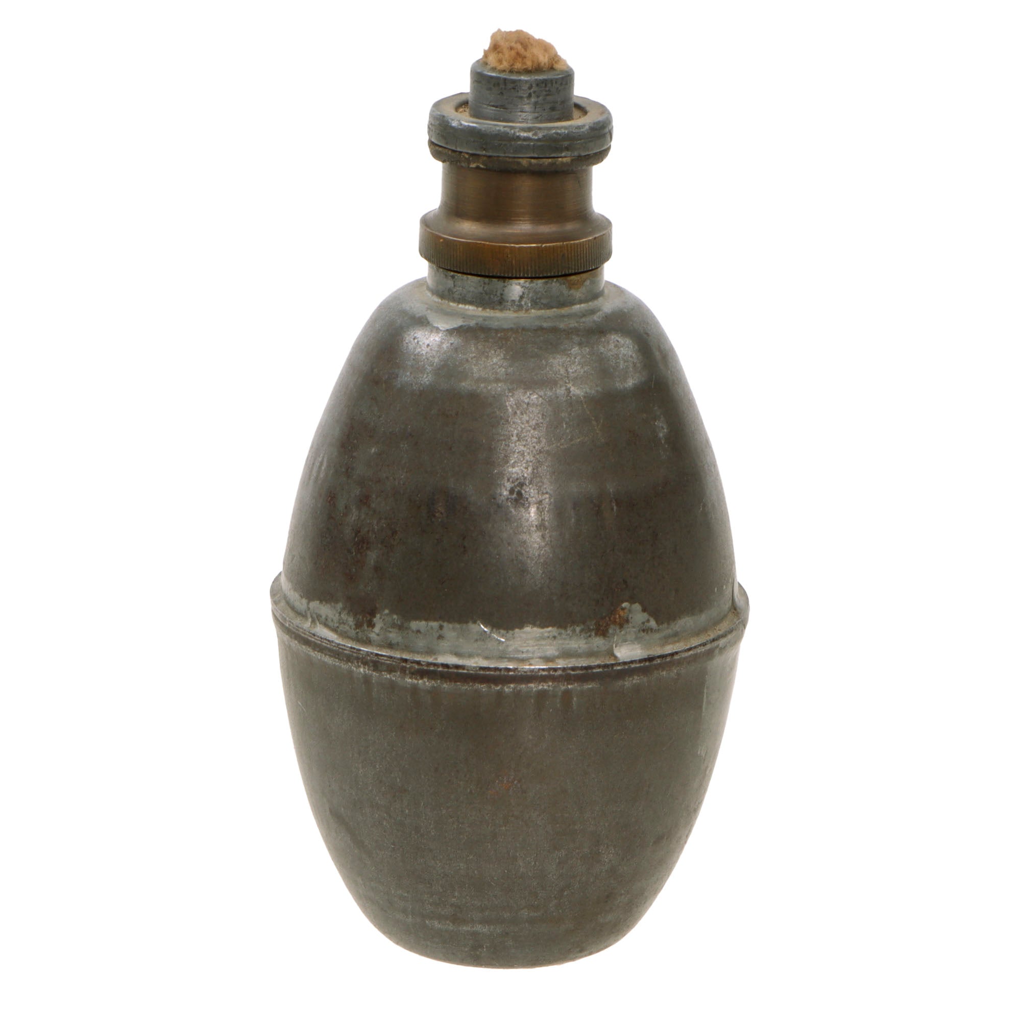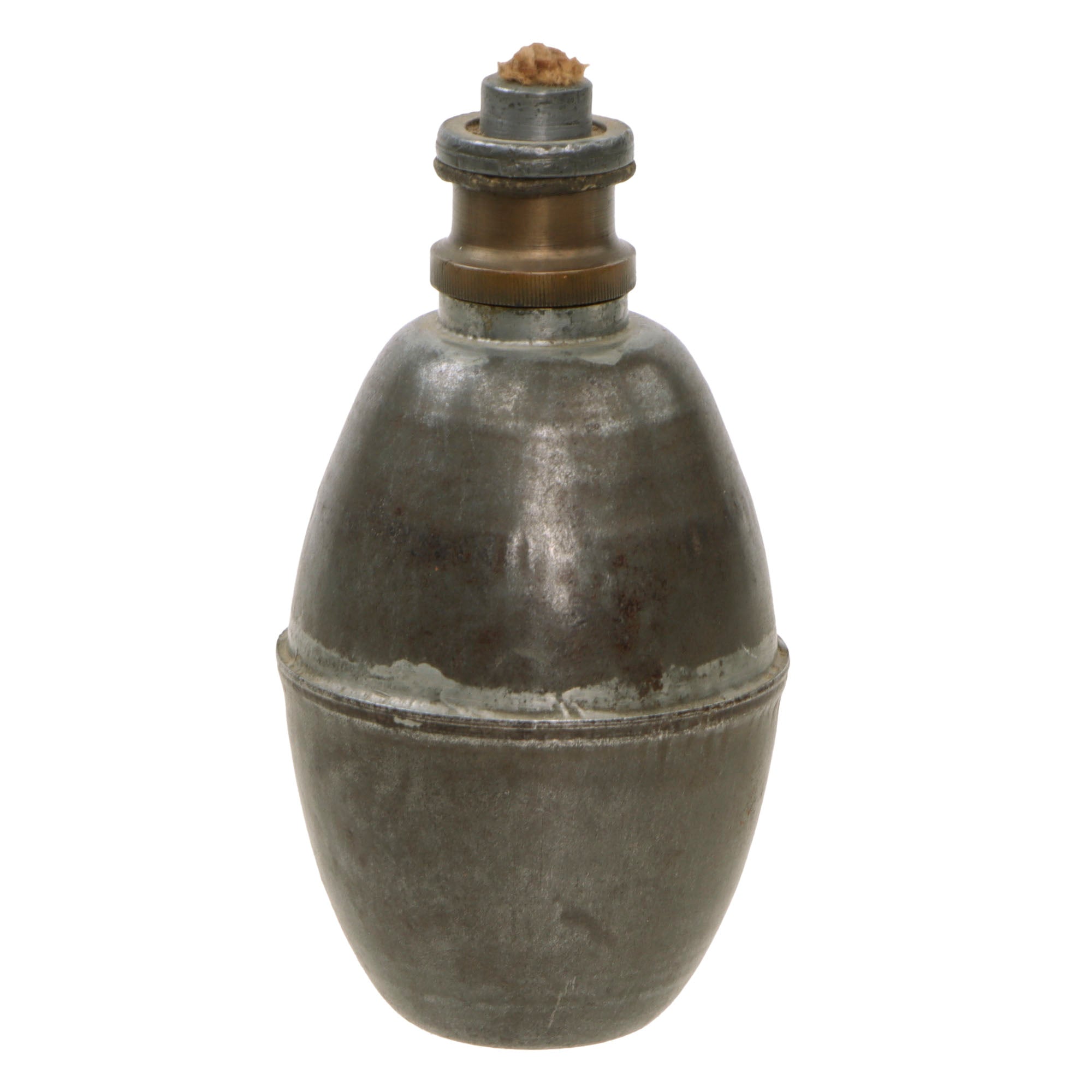 The fuze still unscrews for inspection of the interior. Several kinds of suffocating grenades were already in use in the French police before the war. These were adapted from those, and made more military friendly. They were originally constructed with tin or other corrosion reducing liners, as the gas liquid is highly corrosive.