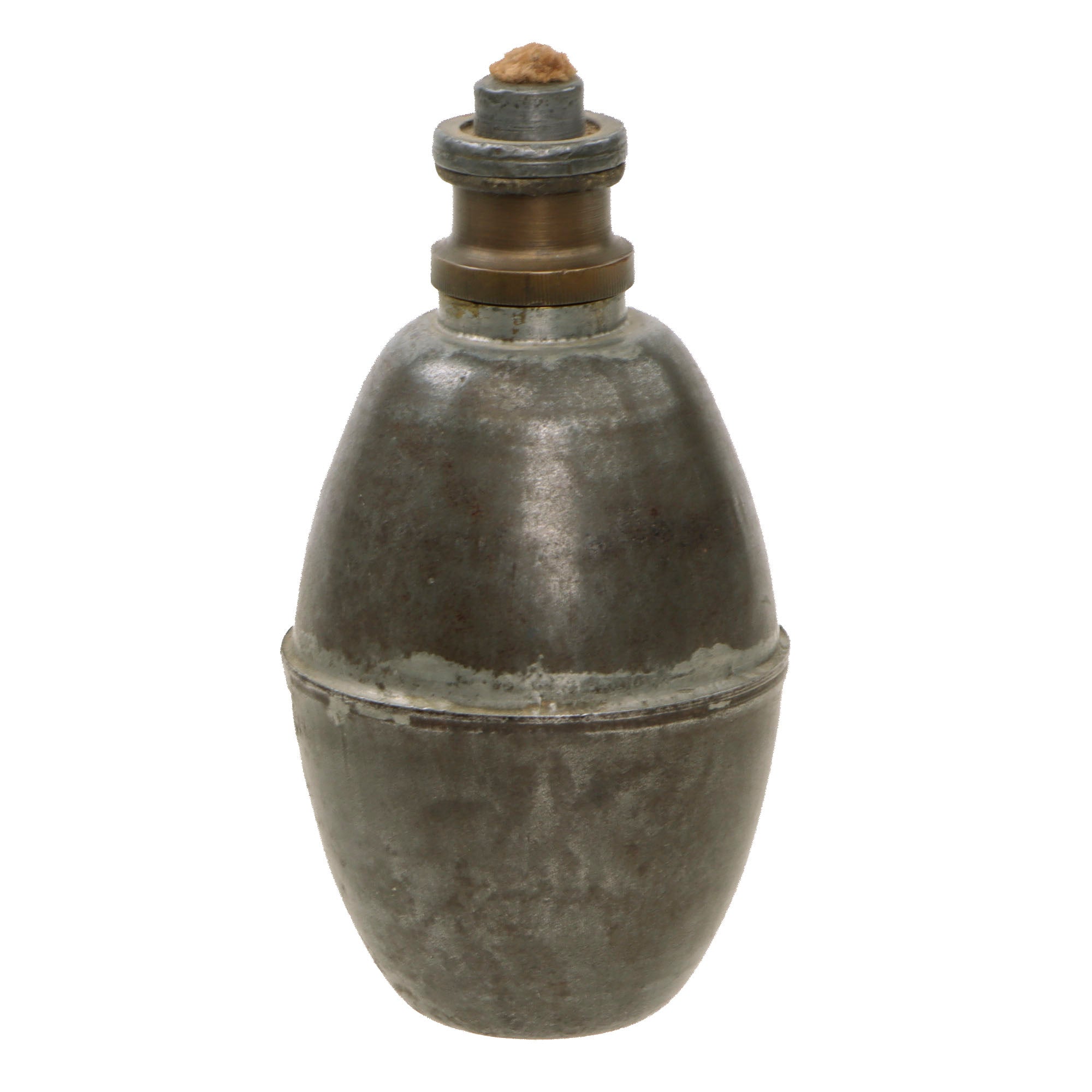 Original Item: Only One Available. This is totally inert BATF compliant genuine World War One French Grenade Suffocante modèle 1916 (Suffocating Grenade Model 1916) tear gas grenade. It features a wick fuze that still retains most of the wick on the interior! This example also isn’t ground dug, rare to see. Like all deactivated ordnance, this grenade is Not Available for Export.