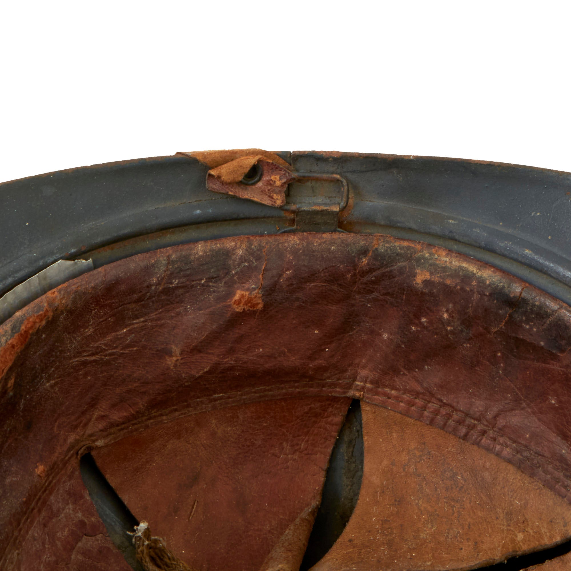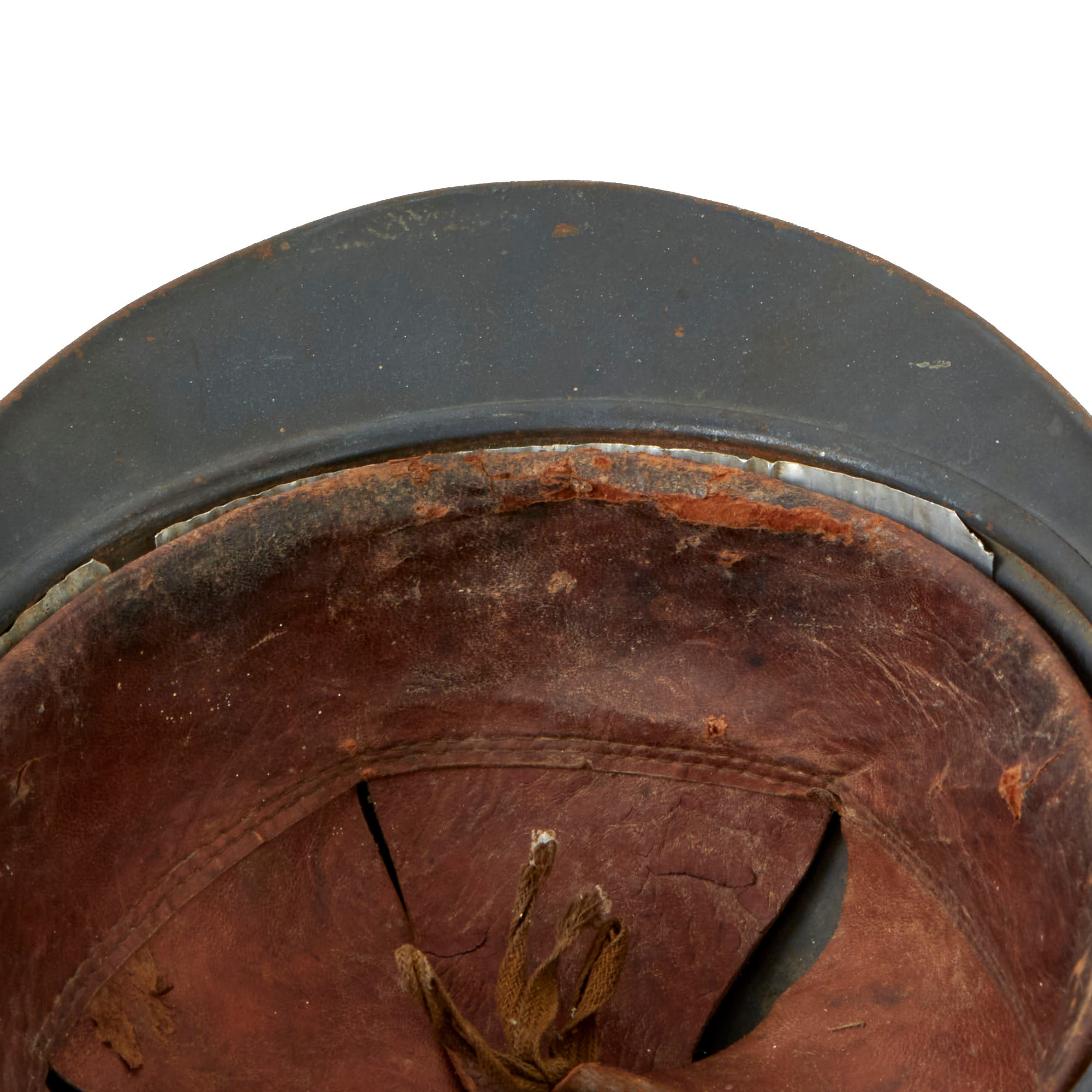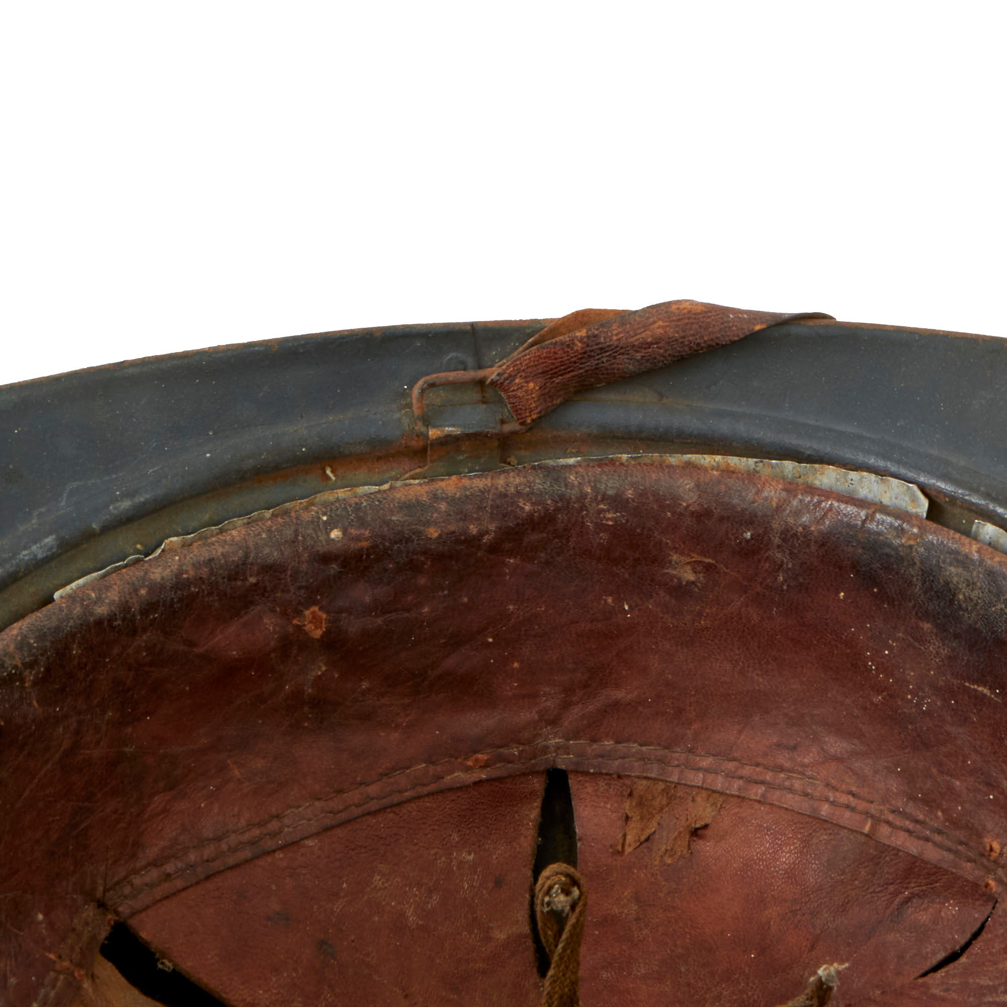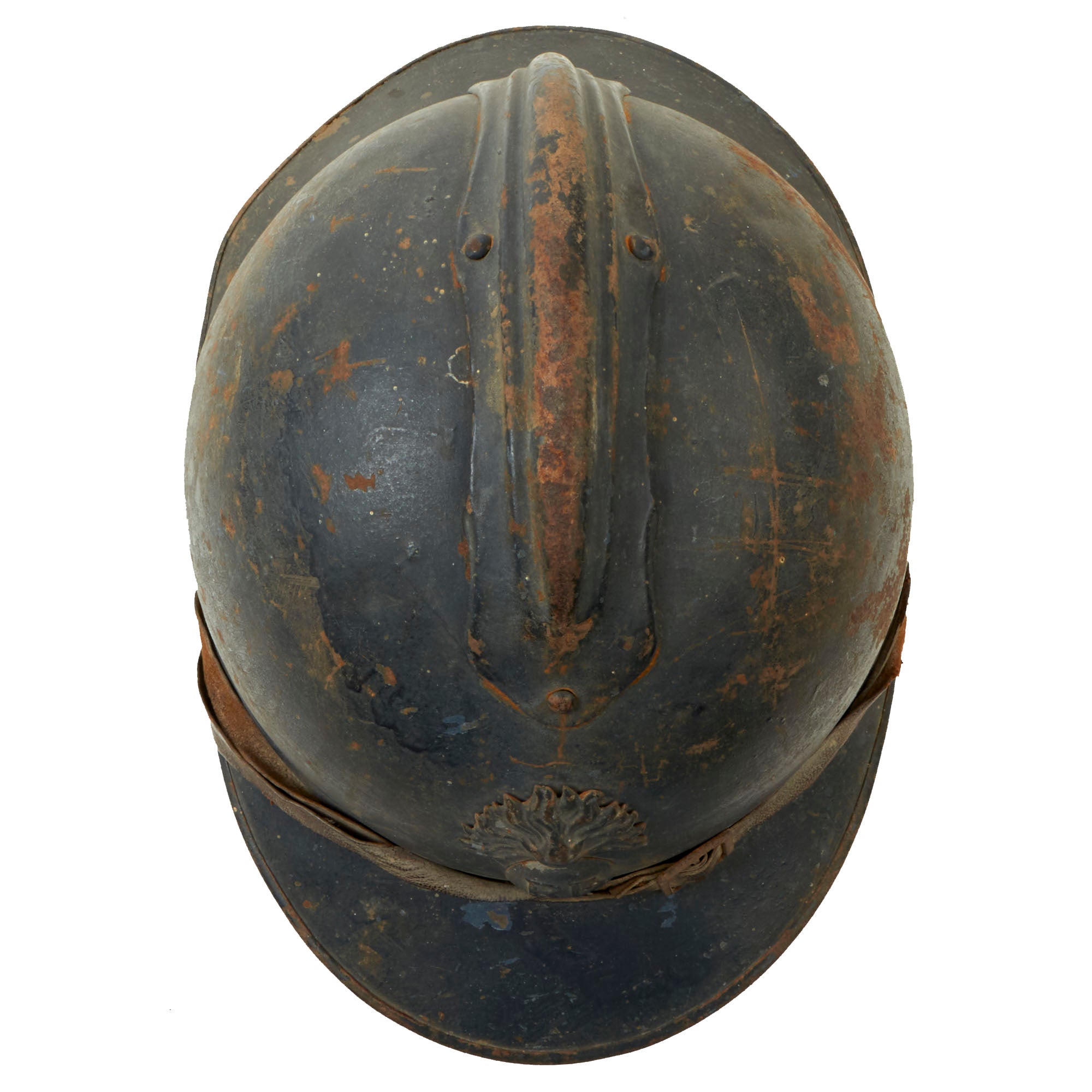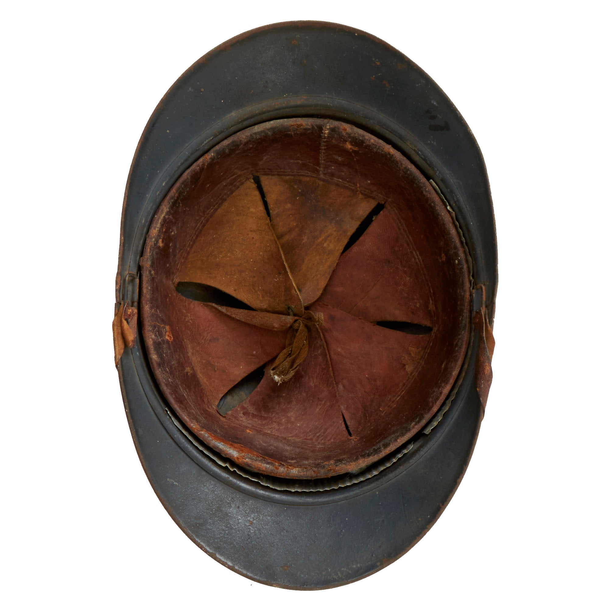 Original French WWI Issue Model 1915 Adrian Helmet in Horizon Blue with RF Badge and Second Pattern Liner - Complete