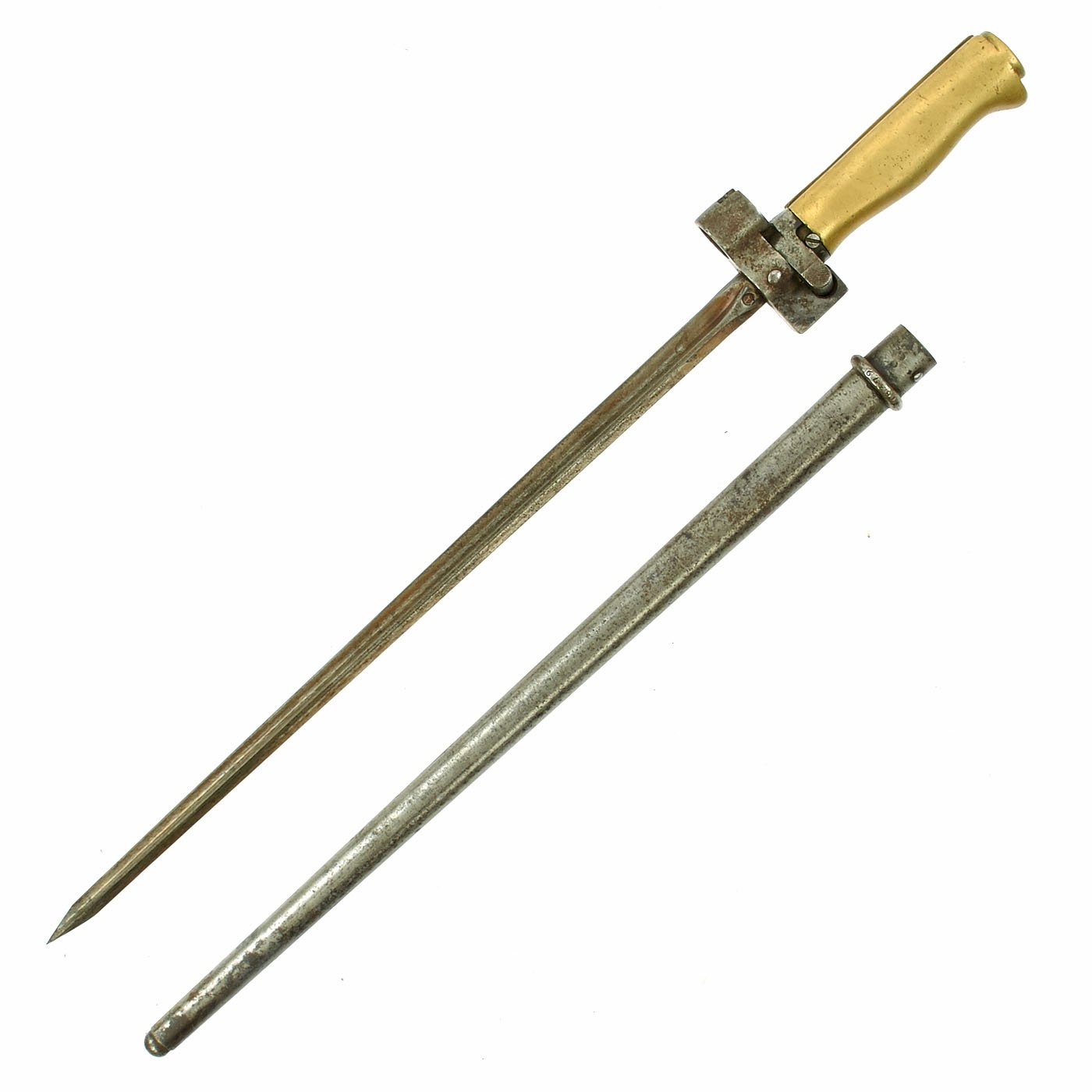 Original Item: Only One Available. Known affectionately as “Rosalie” to French troops, the M1886 was the French mainstay during WWI and many were still in service at the Fall of France in 1940. The Lebel also saw extensive use worldwide by native troops in the French colonies. The M1886 introduced the distinctive cruciform blade, which remained a feature of most French bayonets until 1956. This was intended to create such a terrible would that because of it's shape torn open very easily condemning the poor recipient to a very painful and long recovery.