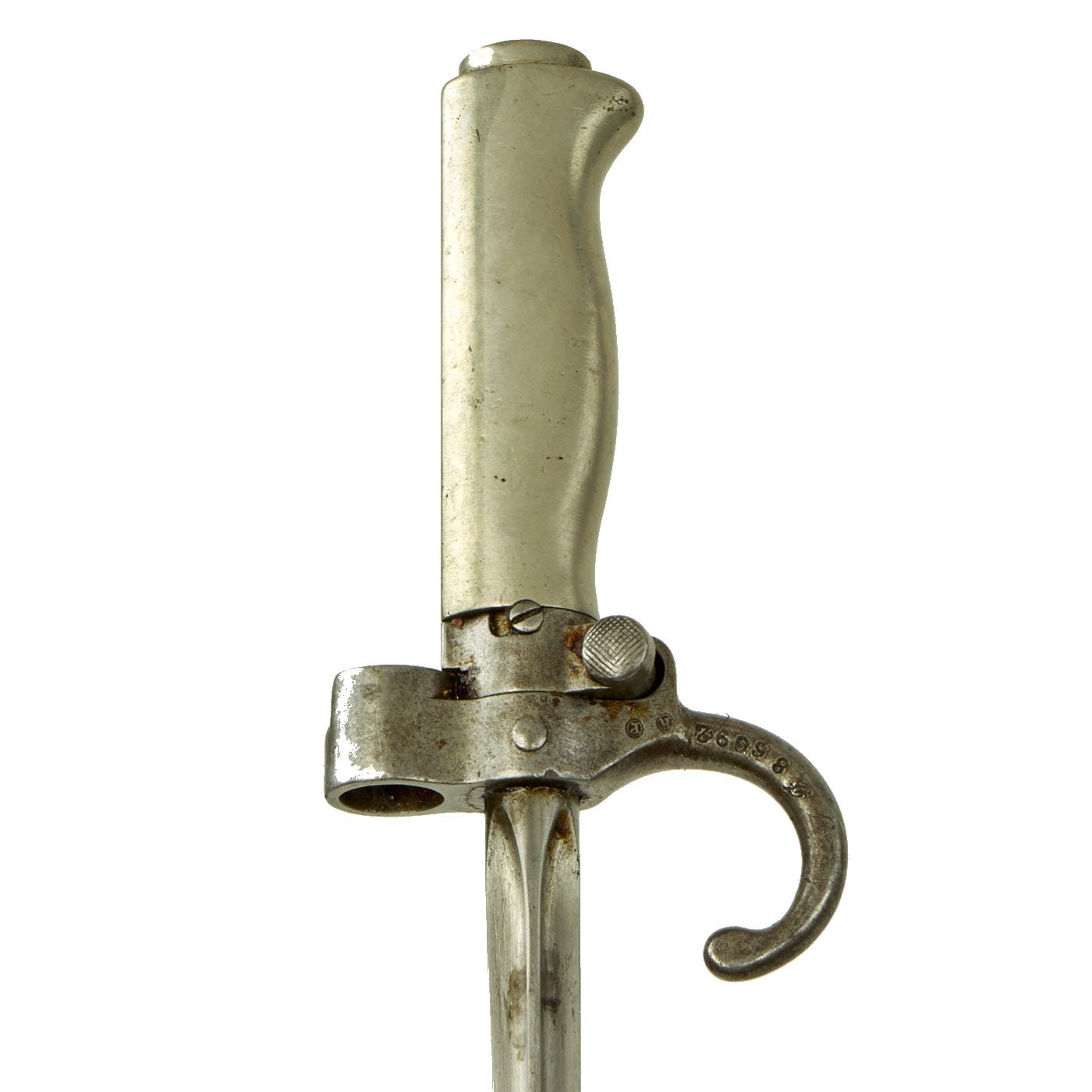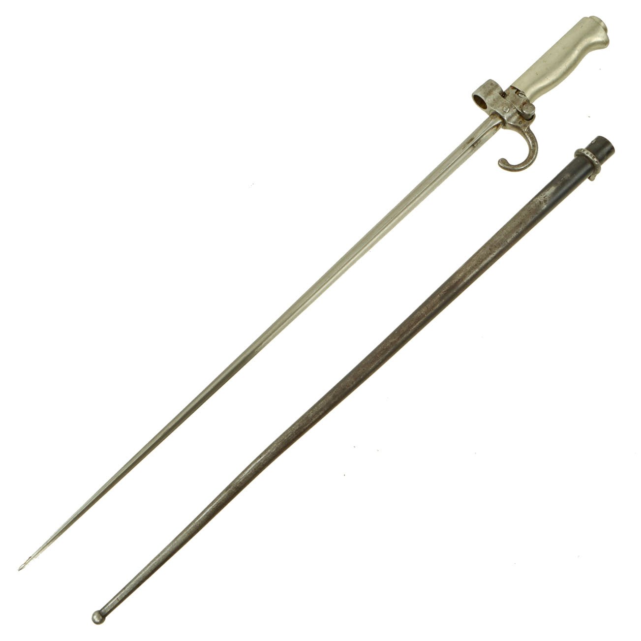 Original Item: Only One Available. Known affectionately as “Rosalie” to French troops, the M1886 was the French mainstay during WWI and many were still in service at the Fall of France in 1940. The Lebel also saw extensive use worldwide by native troops in the French colonies. The M1886 introduced the distinctive cruciform "Épée" blade, which remained a feature of most French bayonets until 1956. This was intended to create such a terrible would that because of it's shape torn open very easily condemning the poor recipient to a very painful and long recovery.