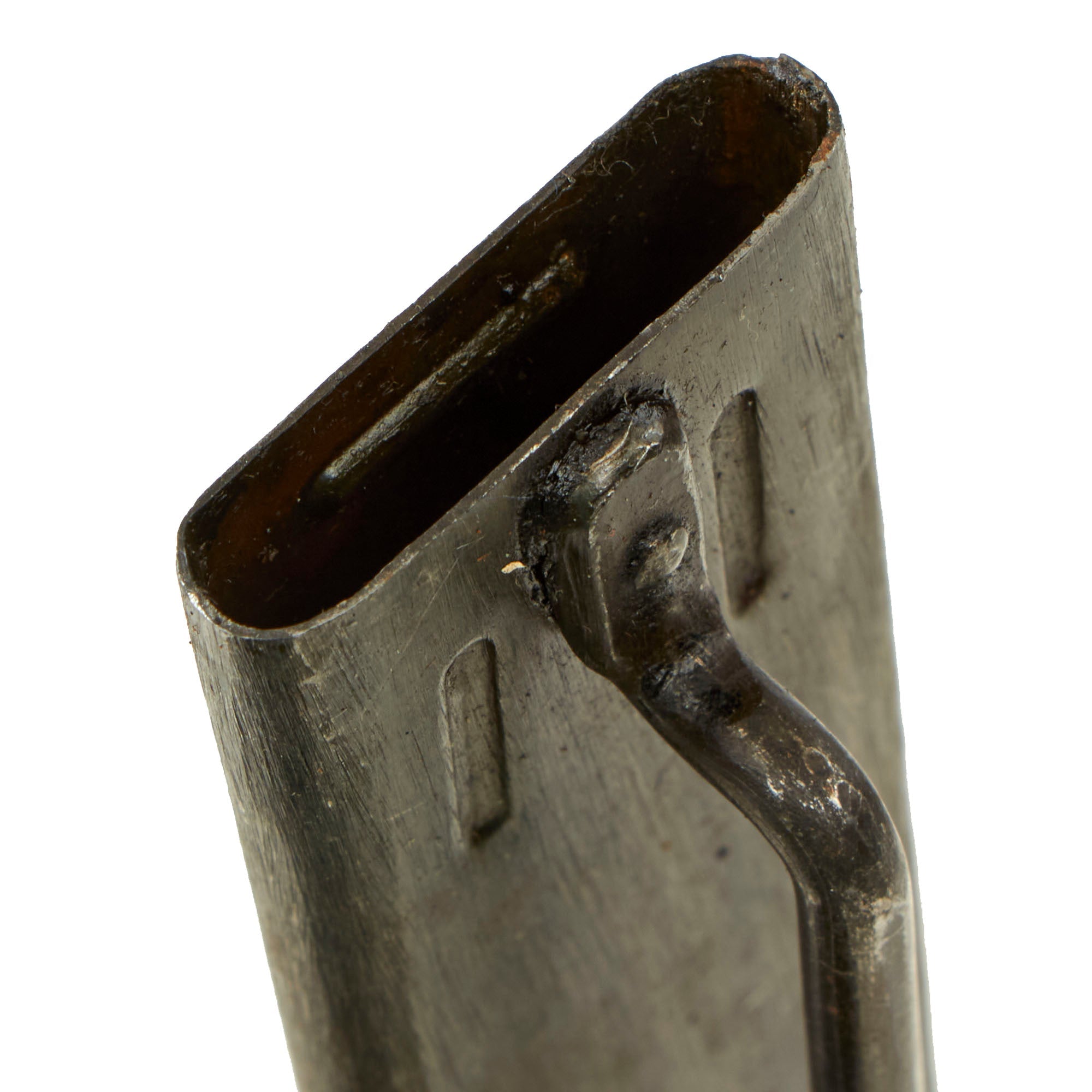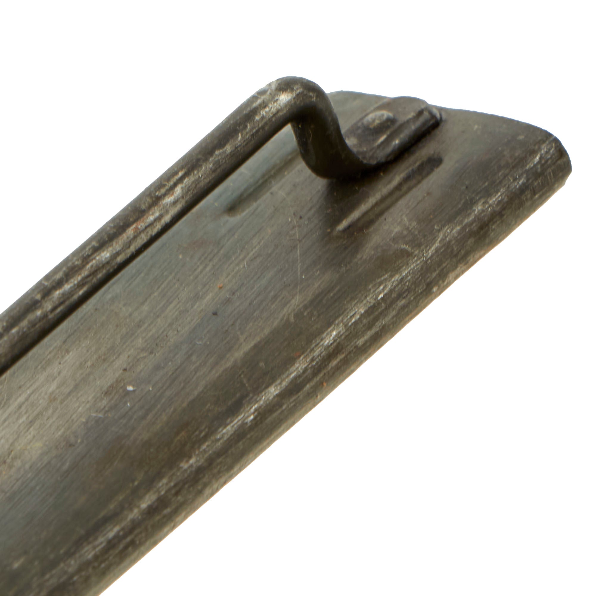 The steel scabbard is in very nice condition, with no major damage we can see. The black paint does appear to be original to the knife and is retained quite well.