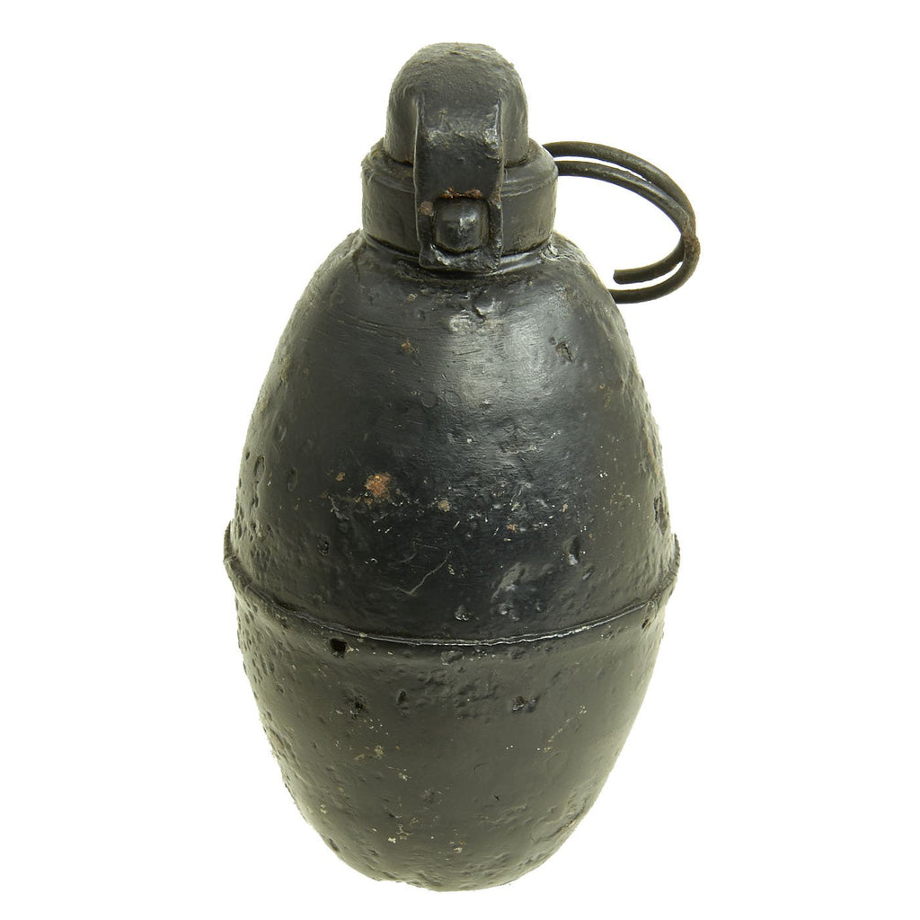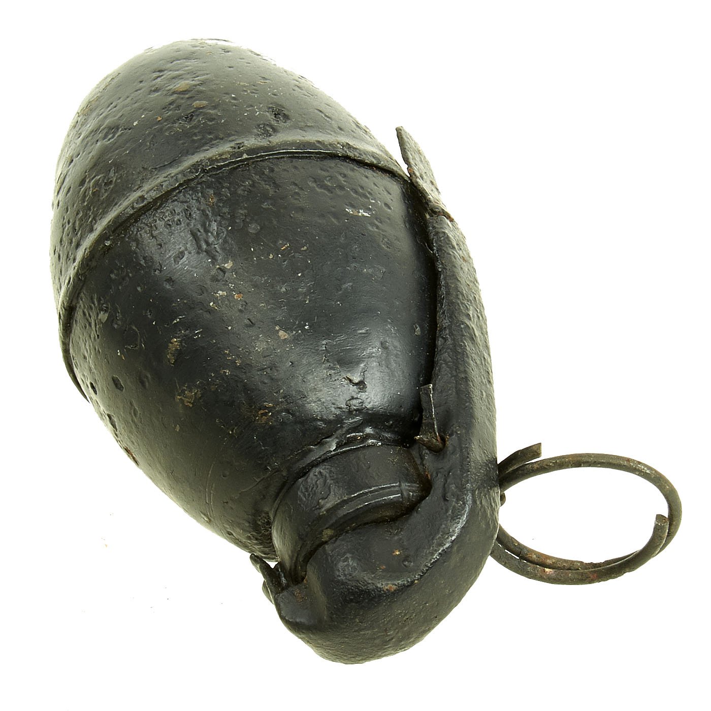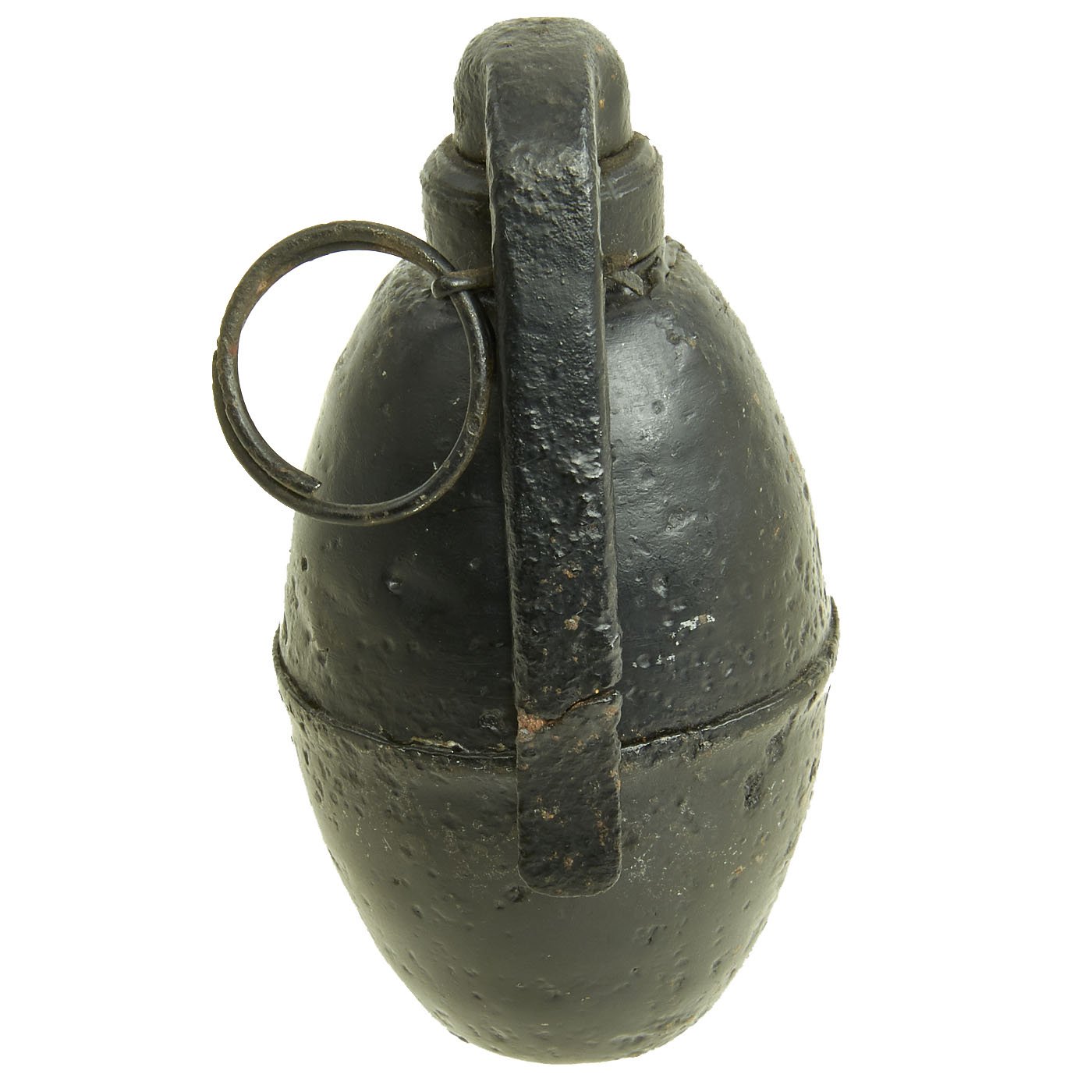 Original Item: Only One Available. This is totally inert BATF compliant genuine World War One French Grenade Suffocante modèle 1916 (Suffocating Grenade Model 1916) tear gas grenade. It was dug up some time after the war, cleaned, and painted a lovely black color. It features a M1916 Billant fuze, which replaced the percussion igniter used on the M1914 Gas Grenade.