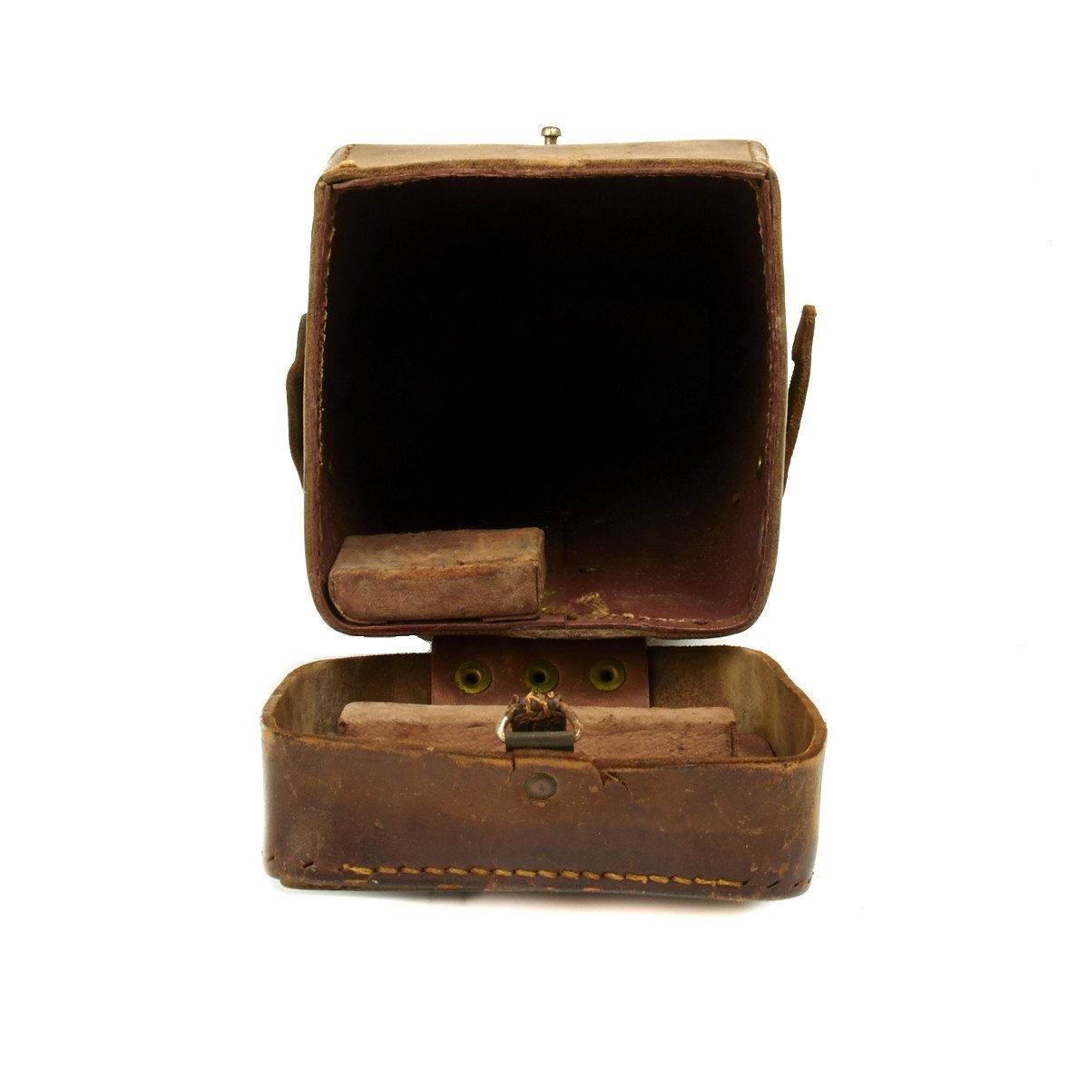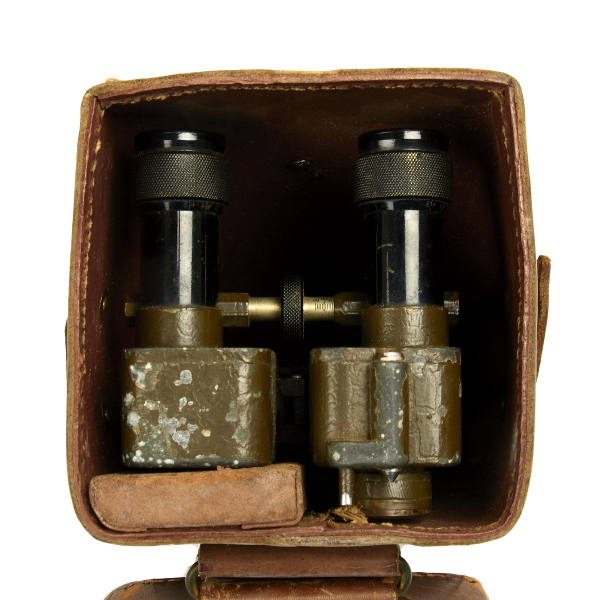 Function perfectly with clear optics and a moveable handle. Used by soldiers in the trench to peak over the top without losing their head. Also included is the original thick leather carry case with strap.