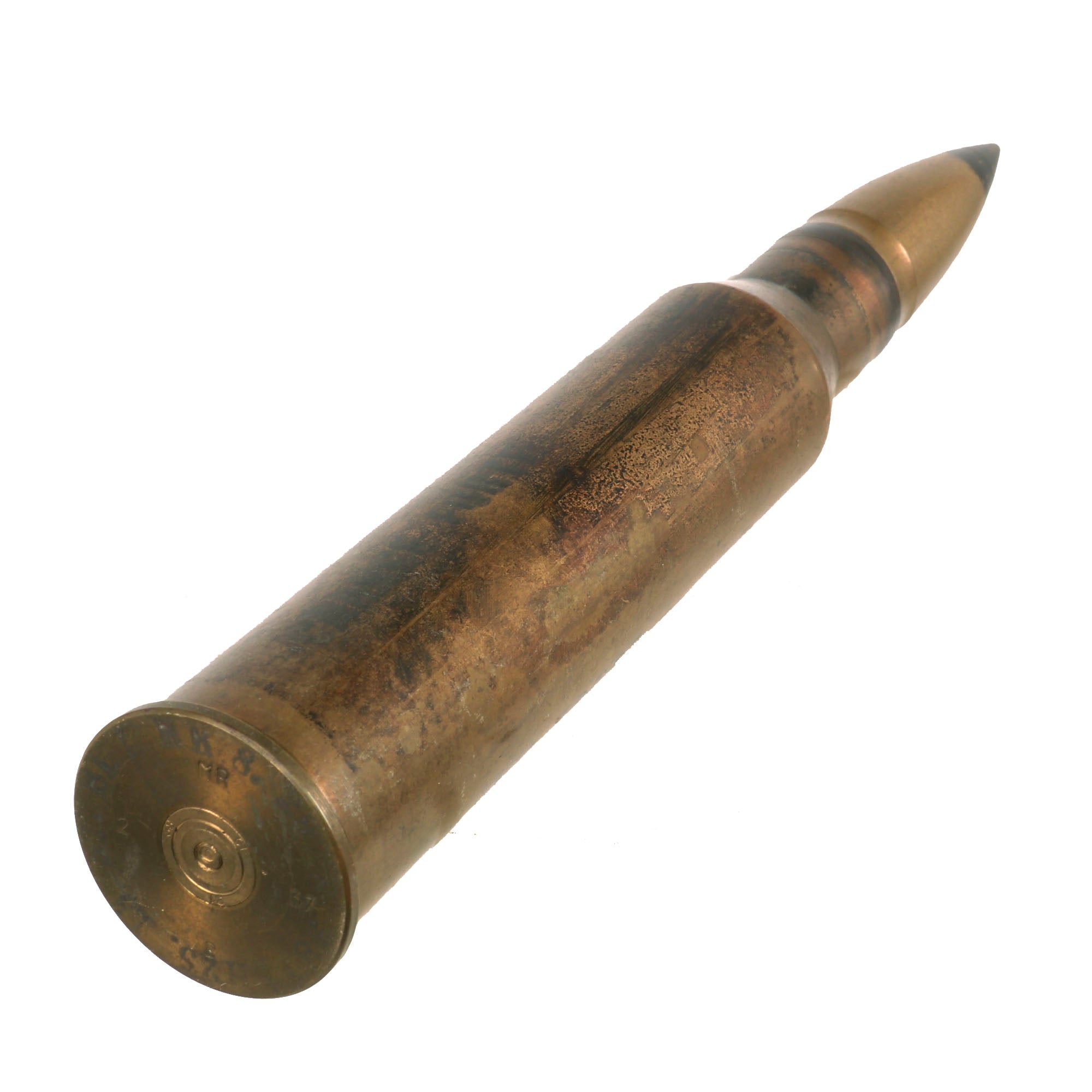 Original Item. Only One Available. The 25 mm Hotchkiss anti-tank gun was a French anti-tank gun from the 1930s, built by the Hotchkiss arsenal, that saw service in the Spanish Civil War, the Second World War and the Indochina War. Light and mobile, it could be improvised into a portée weapon by its users. This shell is Not Available for Export.