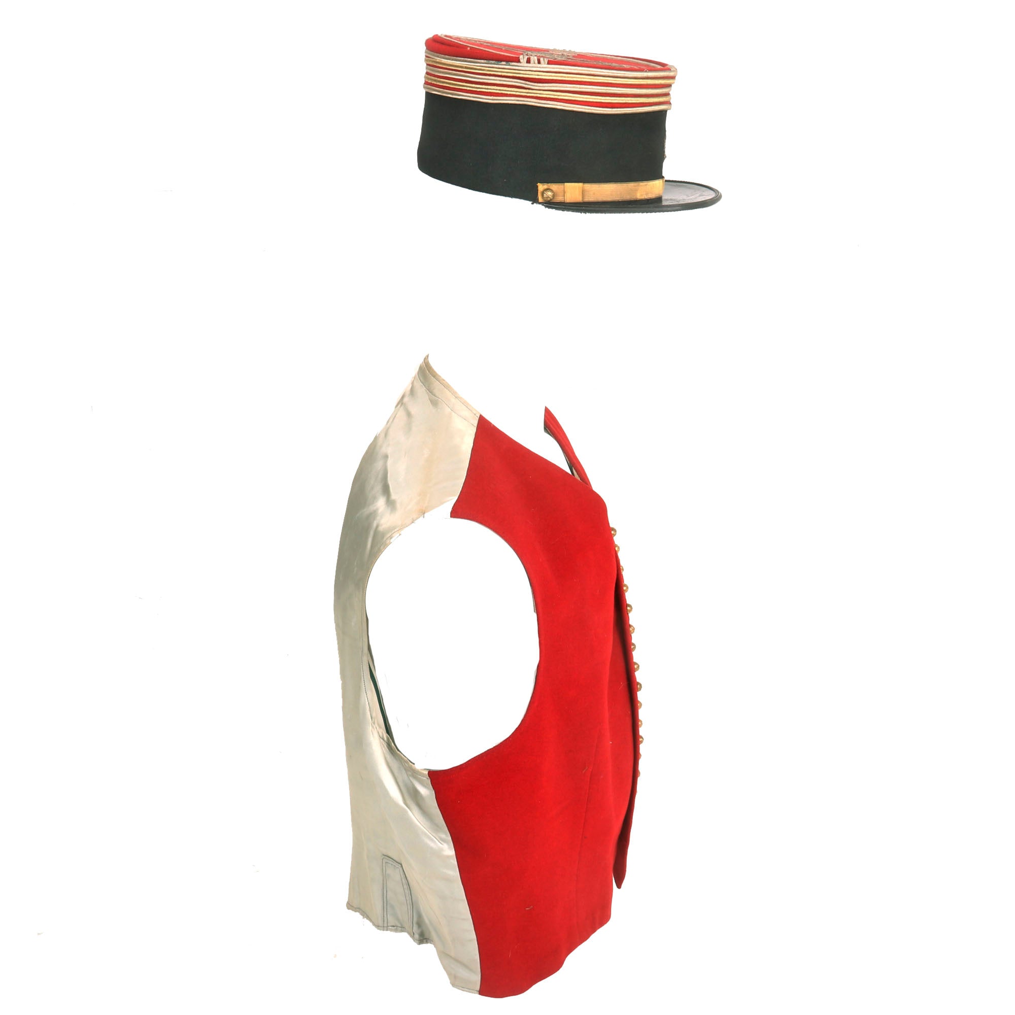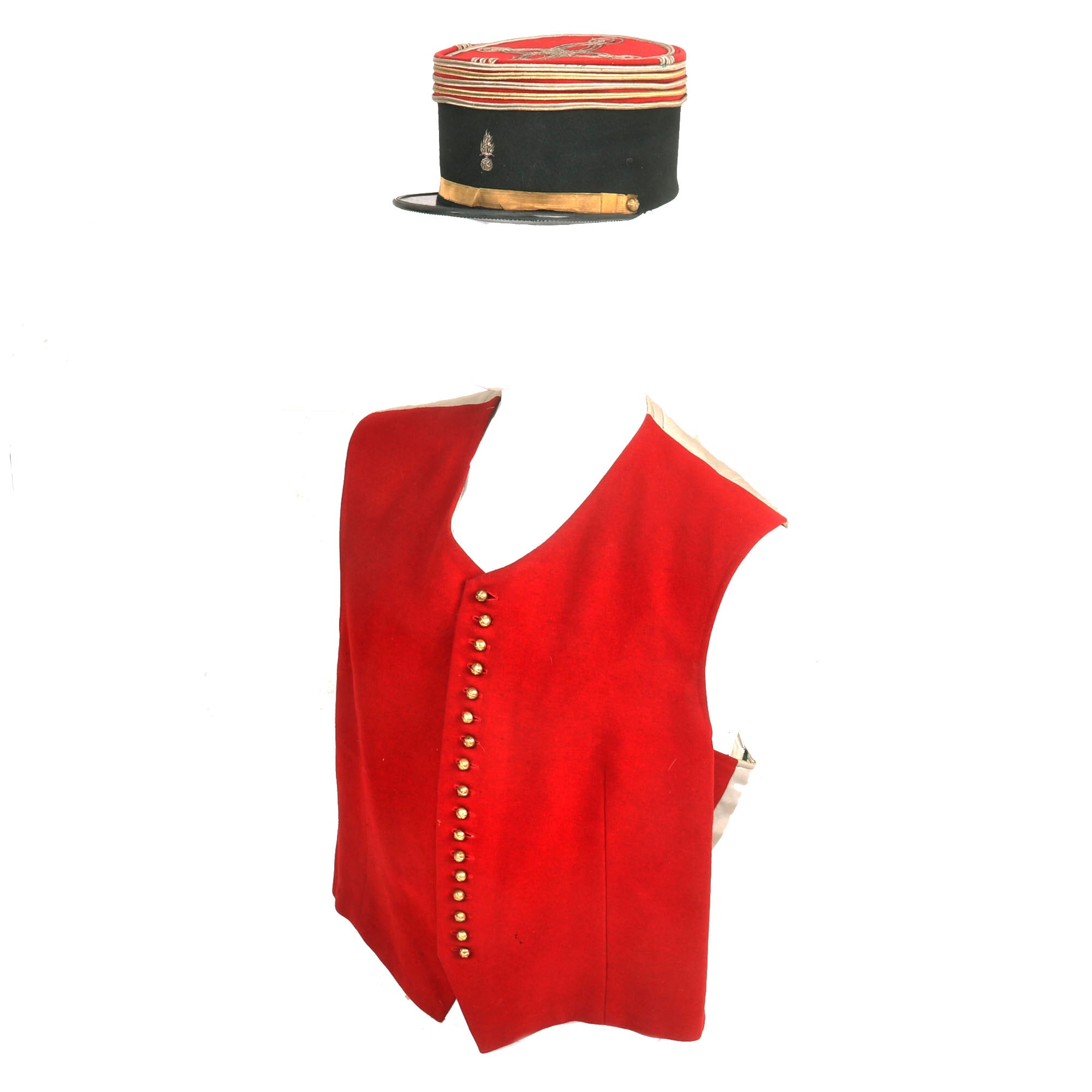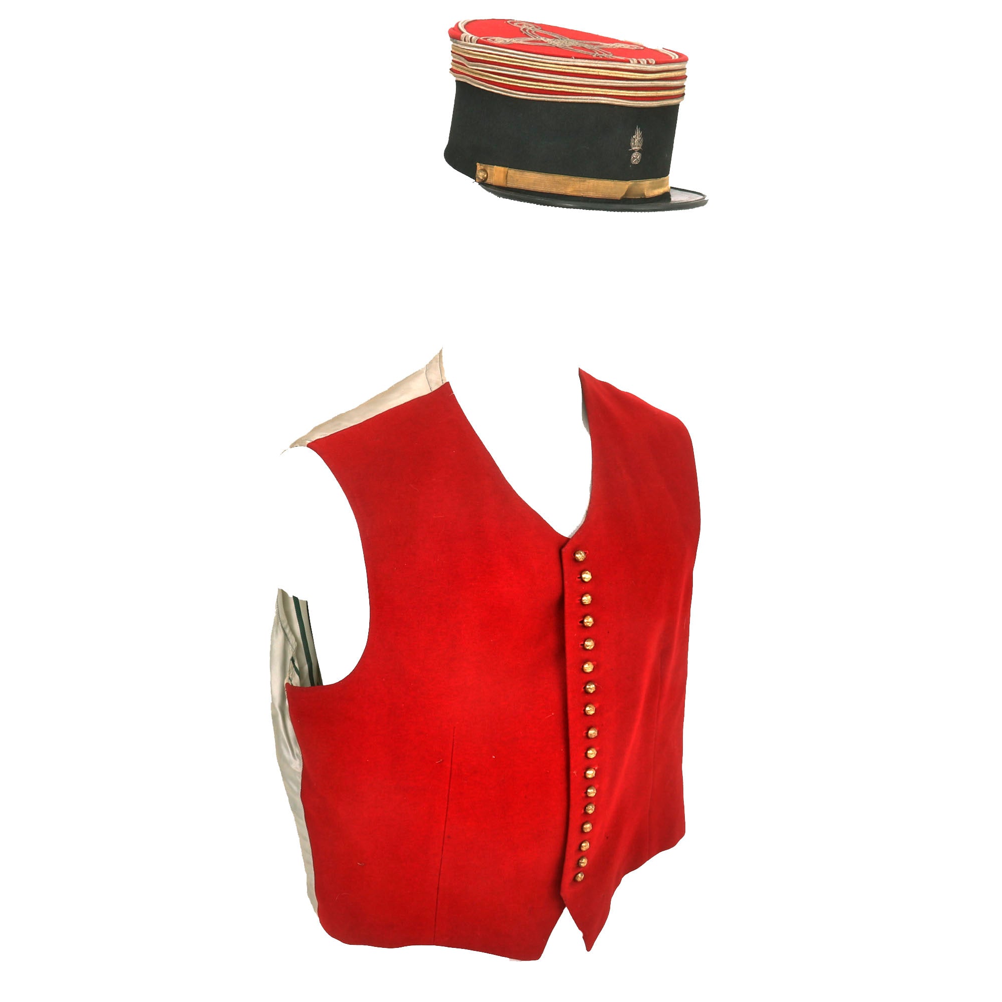 Original Grouping. One-of-a-Kind. This is a phenomenal French WWII uniform grouping to a Lieutenant in the French Field Artillery. This uniform dates to roughly 1940, and includes the officer’s tunic, breeches, red vest, greatcoat, Sam Browne Belt, Kepi, and M26 Helmet with a braided chinstrap.