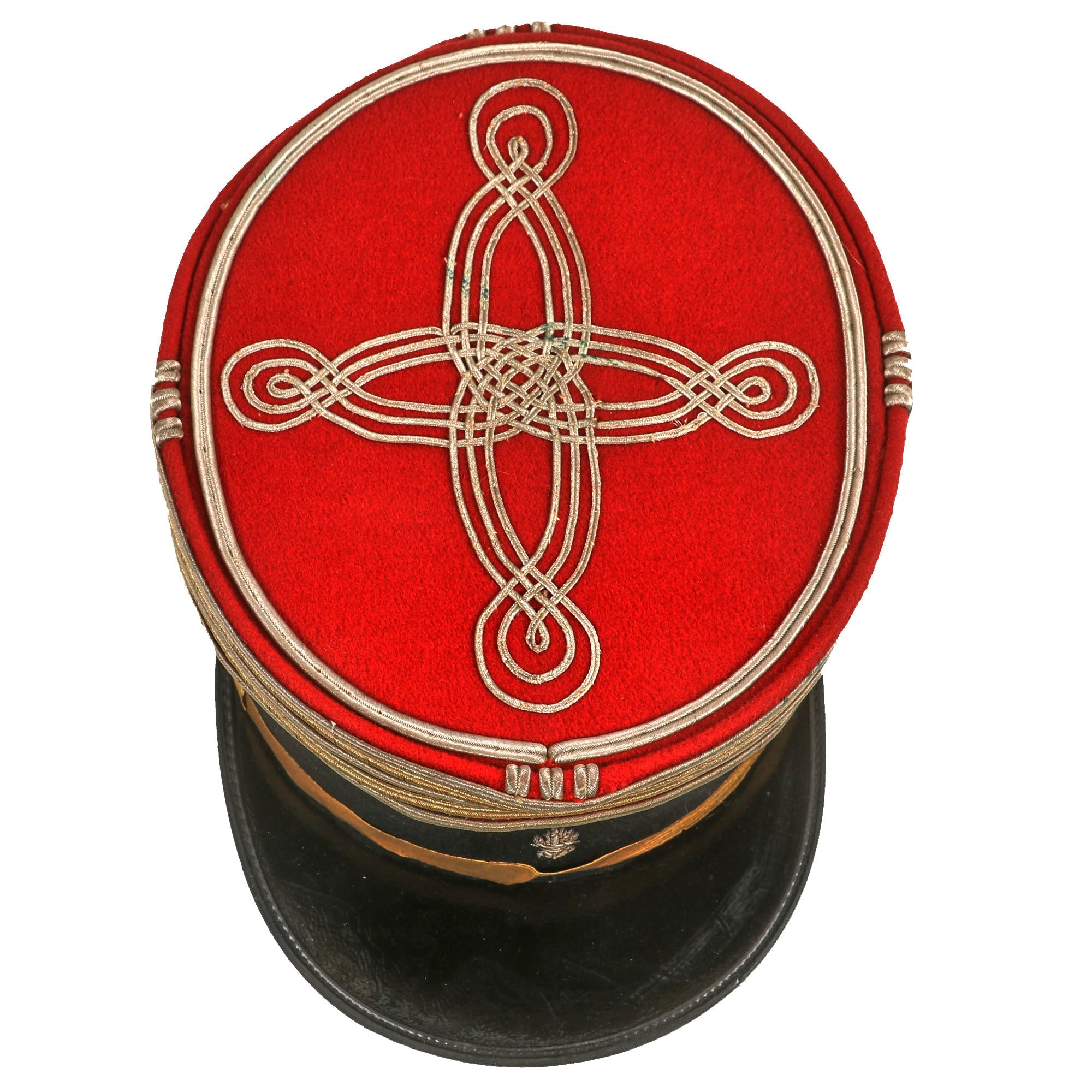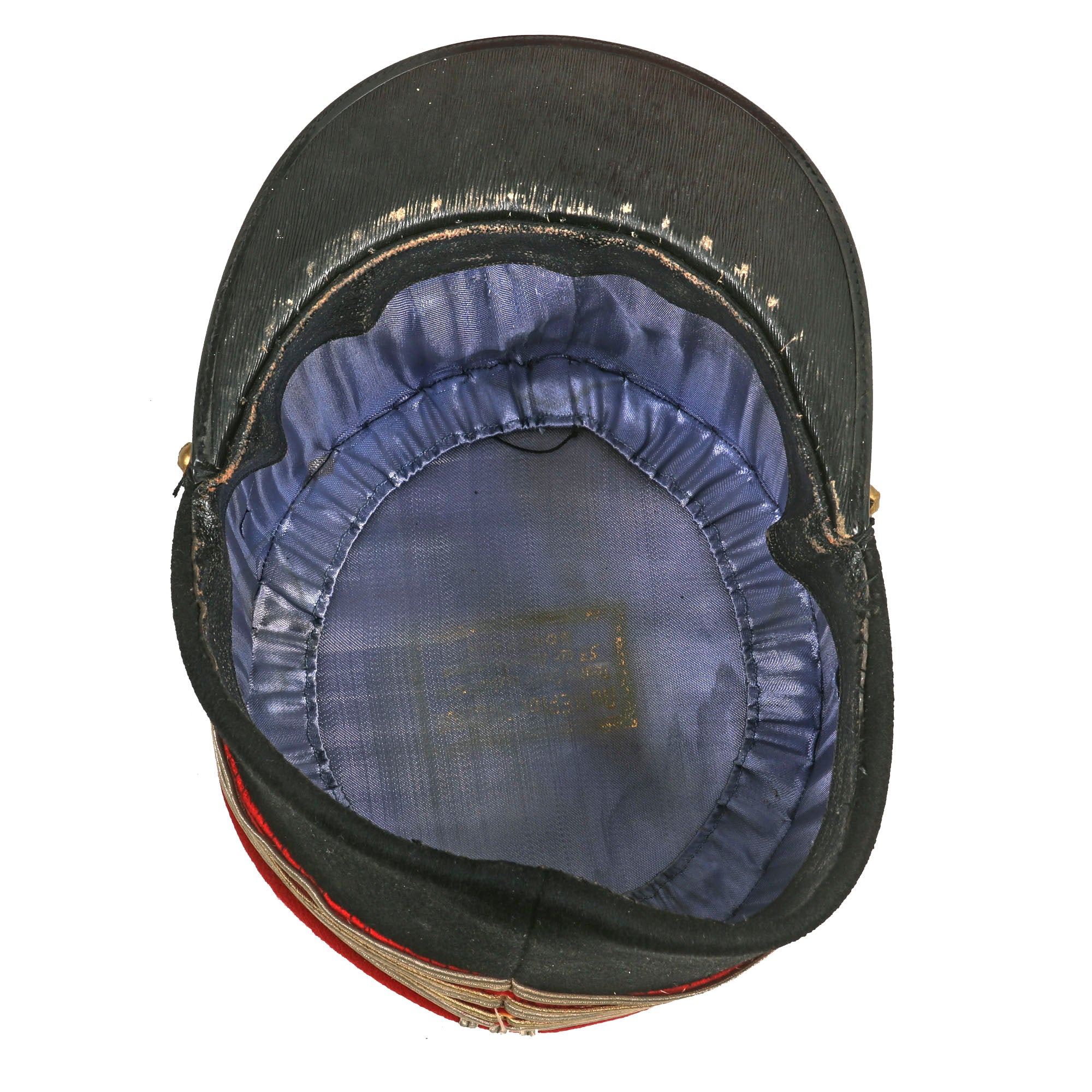 The included Kepi is a gorgeous private-purchase officer’s example which bears a maker’s stamp on the interior crown which is unfortunately too faded too fully read, but we can make out that the maker is in Bordeaux. The blue silk lining is well-retained as well as the sweatband, the stitching of which is partially intact. The front bears a gorgeous bullion flaming bomb insignia. The gold tape chinstrap is retained by the two small Field Artillery buttons on the sides of the cap. There are five gold bands around the circumference of the cap, which denotes the rank of Colonel. A tremendous kepi that presents well with the group.