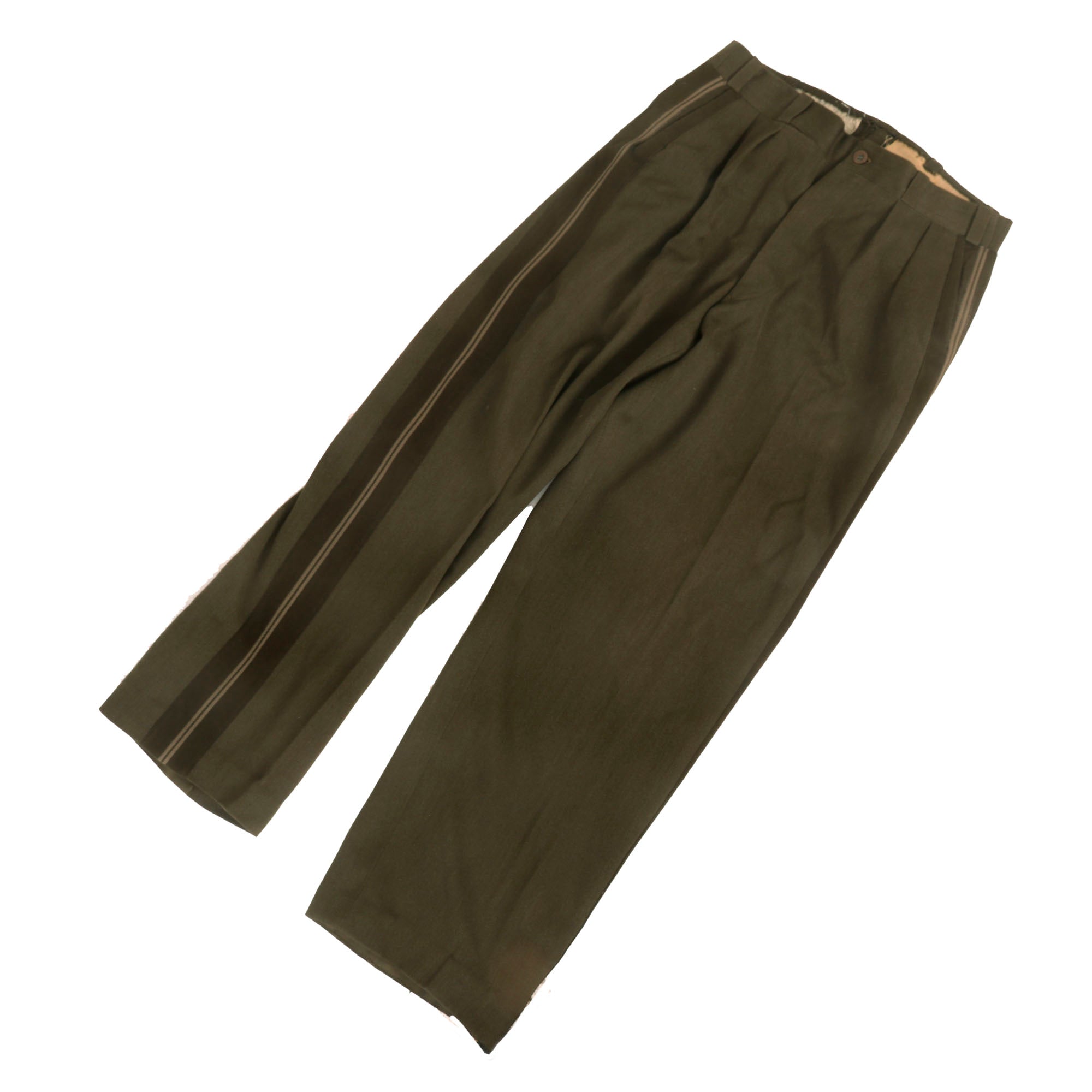 The included breeches are of the same color as the tunic and are missing one of the crotch buttons. There isn’t much damage and the breeches complement the uniform well. The Sam Browne belt is also in good wearable condition and looks great with the uniform.
