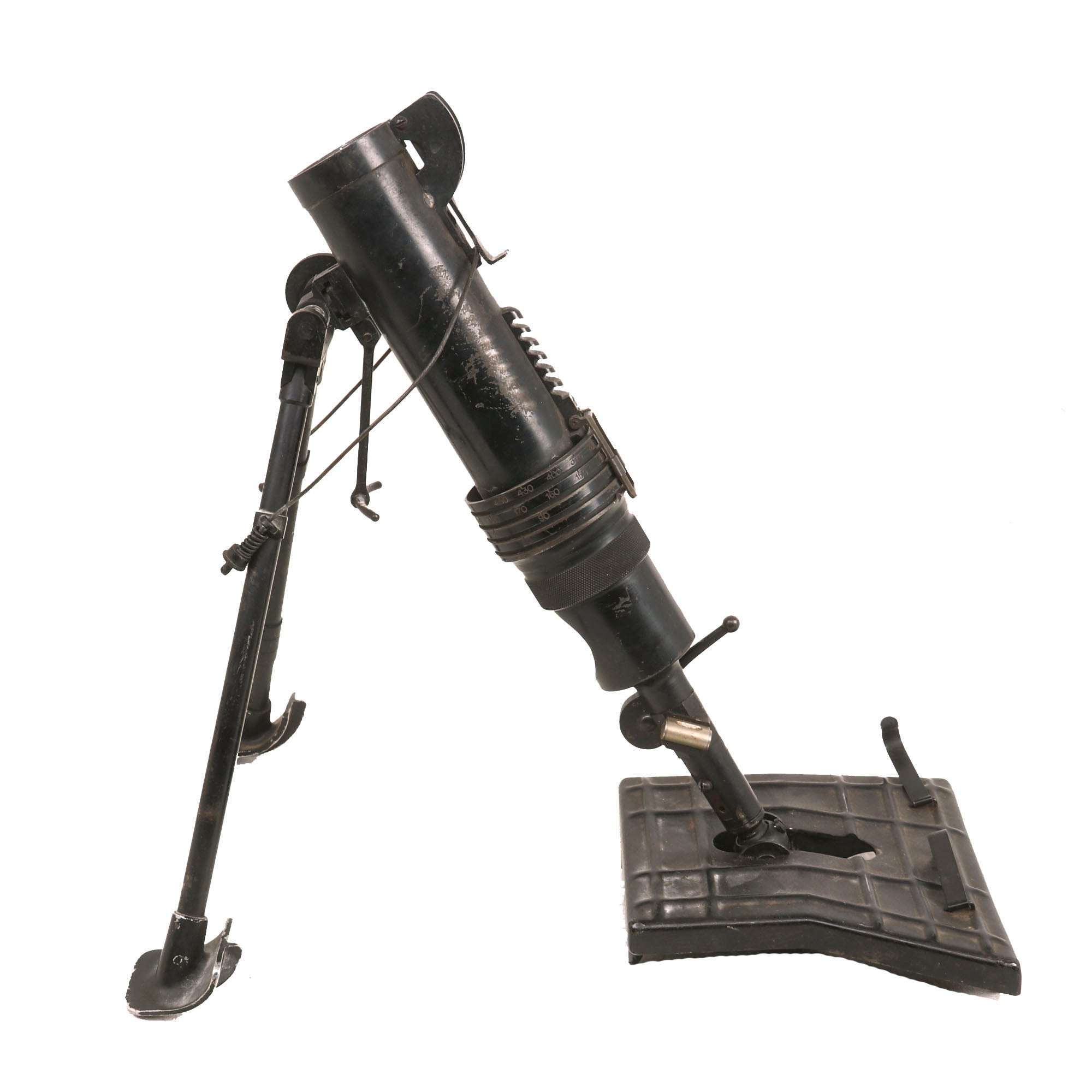 Original Item: Only One Available: This is a fantastic Original French WWII Brandt 50mm L GR MLE 37 Display Light Mortar, offered in excellent complete non-functional display condition with original carry case. This item requires no type of license as it has been fully deactivated and rendered inert according to specifications outlined by the BATF, rendering it totally inert and incapable of ever being converted to an explosive device. It has had a bore width hole drilled in the tube at the bottom, a steel pin welded across the bore to prevent loading, and the firing system rendered inoperable per BATF requirements. As such it is NOT AVAILABLE FOR EXPORT.