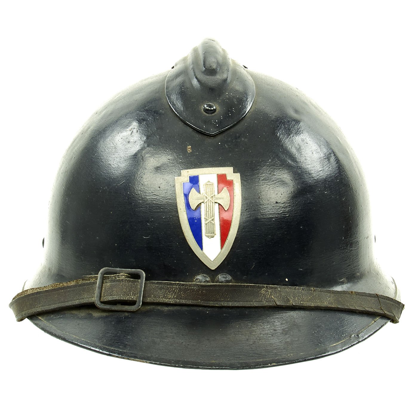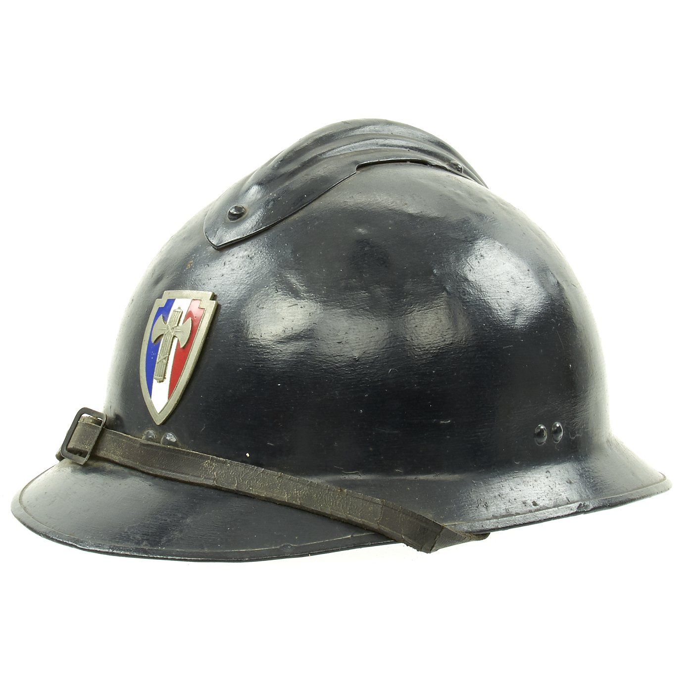 Original Item: Only One Available. Well this is something that we have not had before. This is a very good condition genuine World War II model 1926 French "Adrian" helmet. However, it is no longer in the original Olive Green, and instead has been painted black. After the Fall of France on Jun 25, 1940, France was divided into occupied territory in the North, and the south was put under the administration of Pro-Germany Fascist government based in Vichy, France.