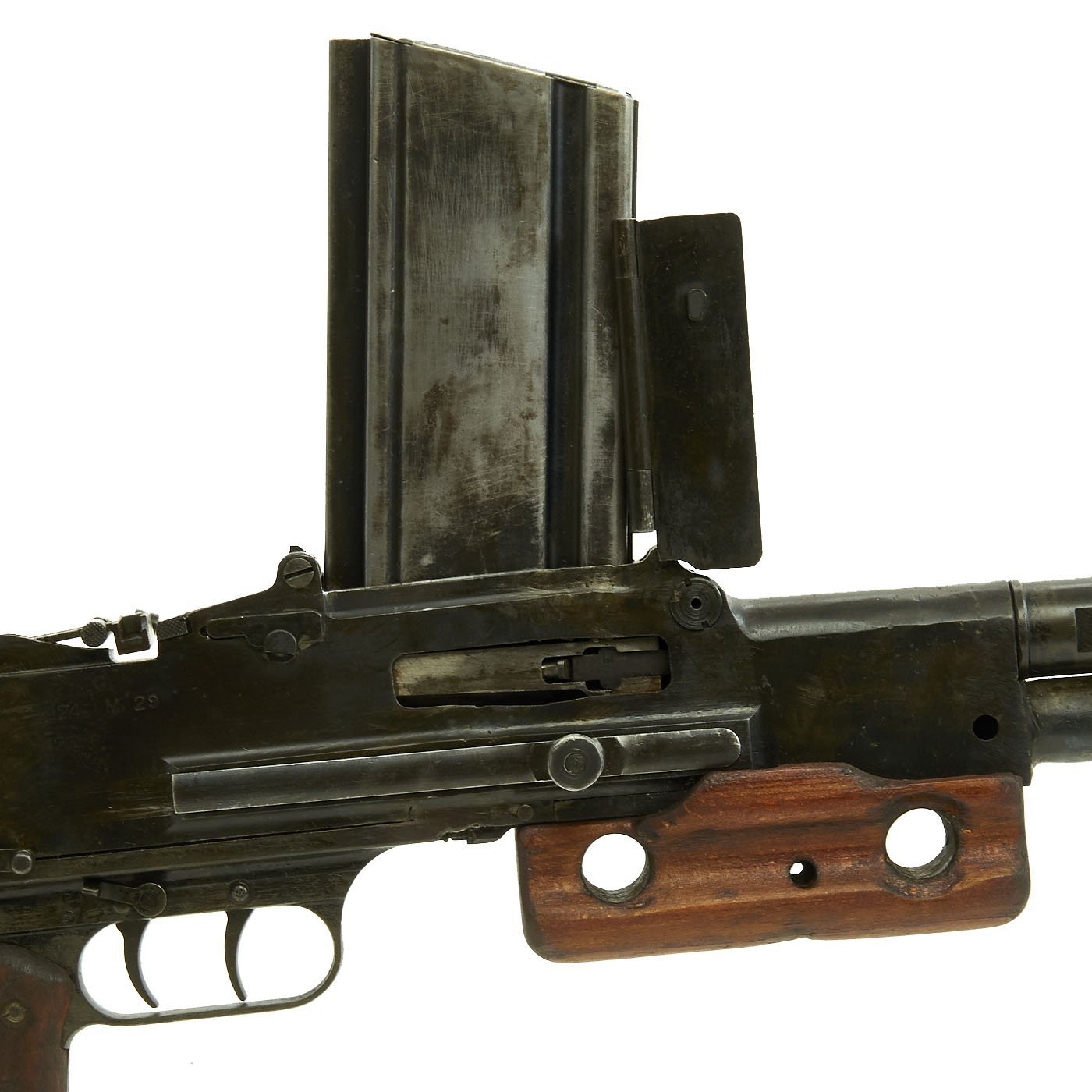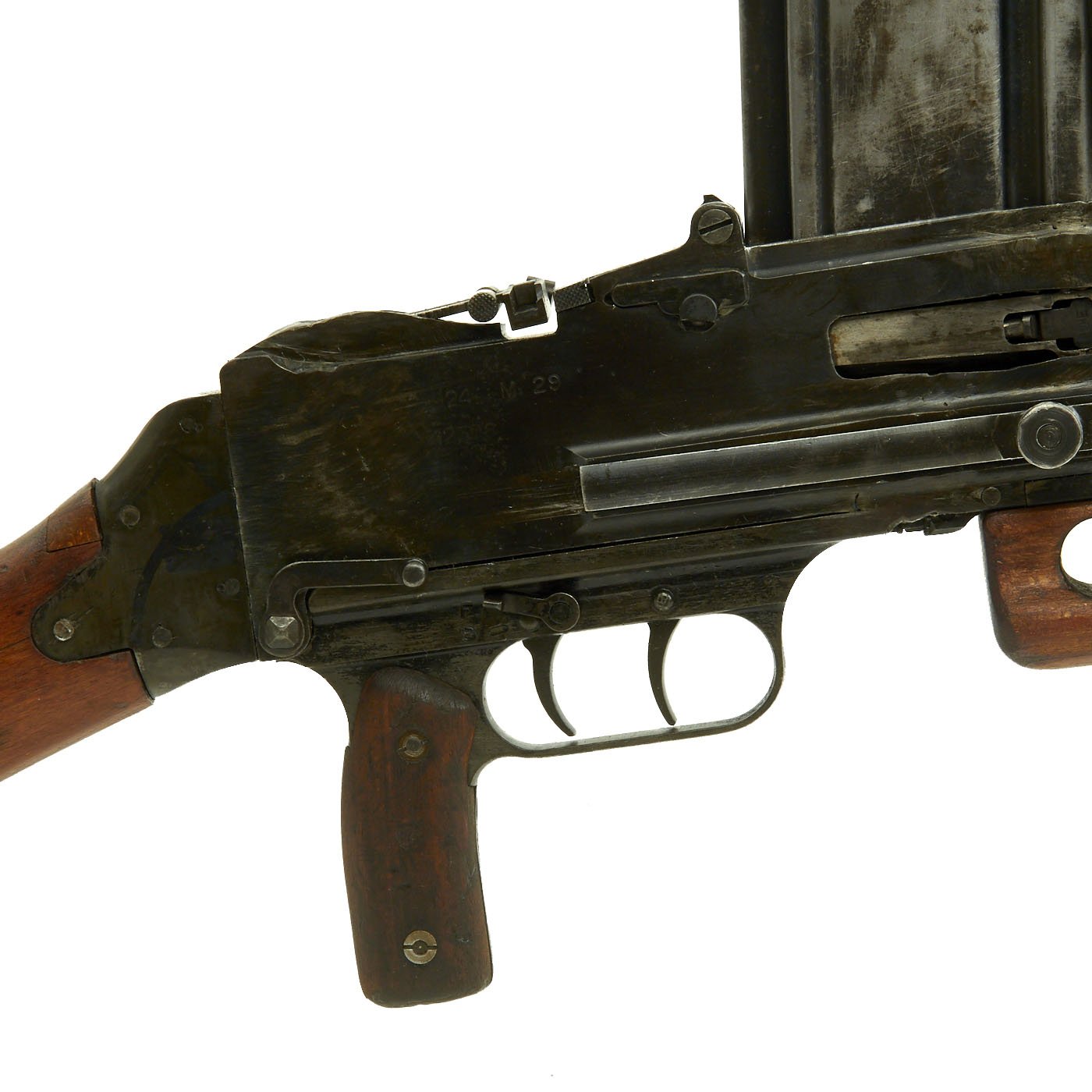 Original Item: Only One Available. This is something that we have not had before! This is a fantastic original Fusil-mitrailleur Modèle 1924 M29 (Machine Gun Model 1924 M29) Display Light Machine Gun. It has been de-activated to BATF specifications and built on a re-welded original receiver with 2 inches completely replaced, making this a totally legal non-firing FM 24/29. Included with this excellent example is a fully functional original magazine (deactivated where required).