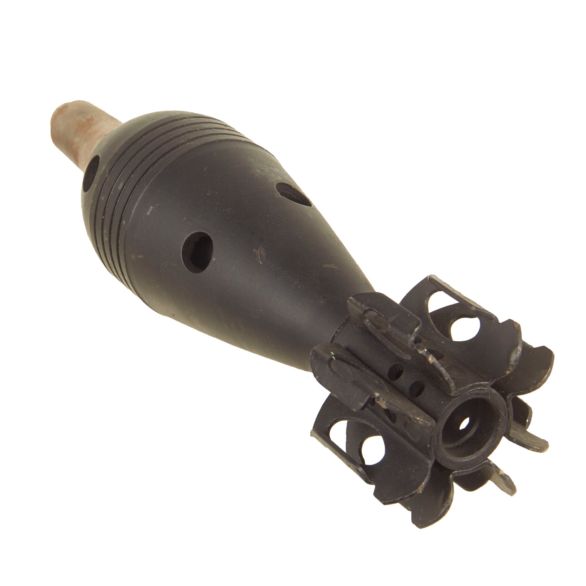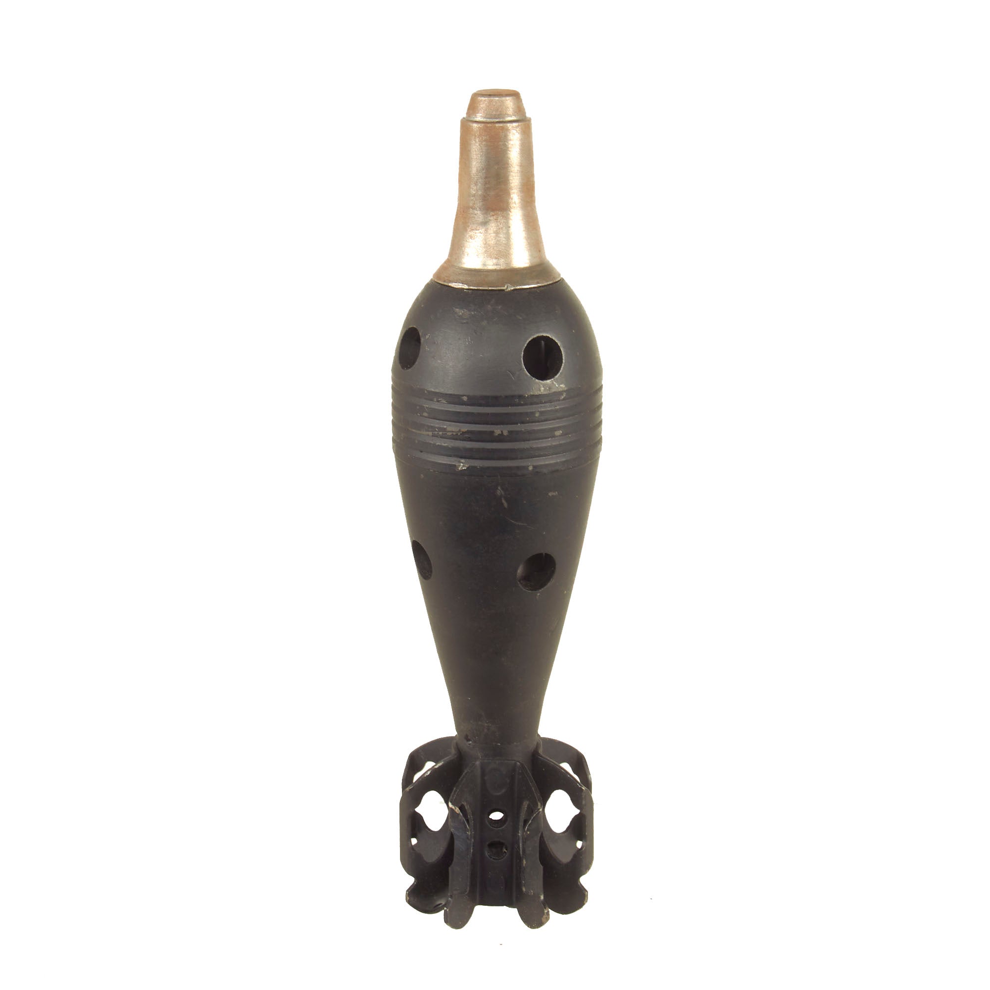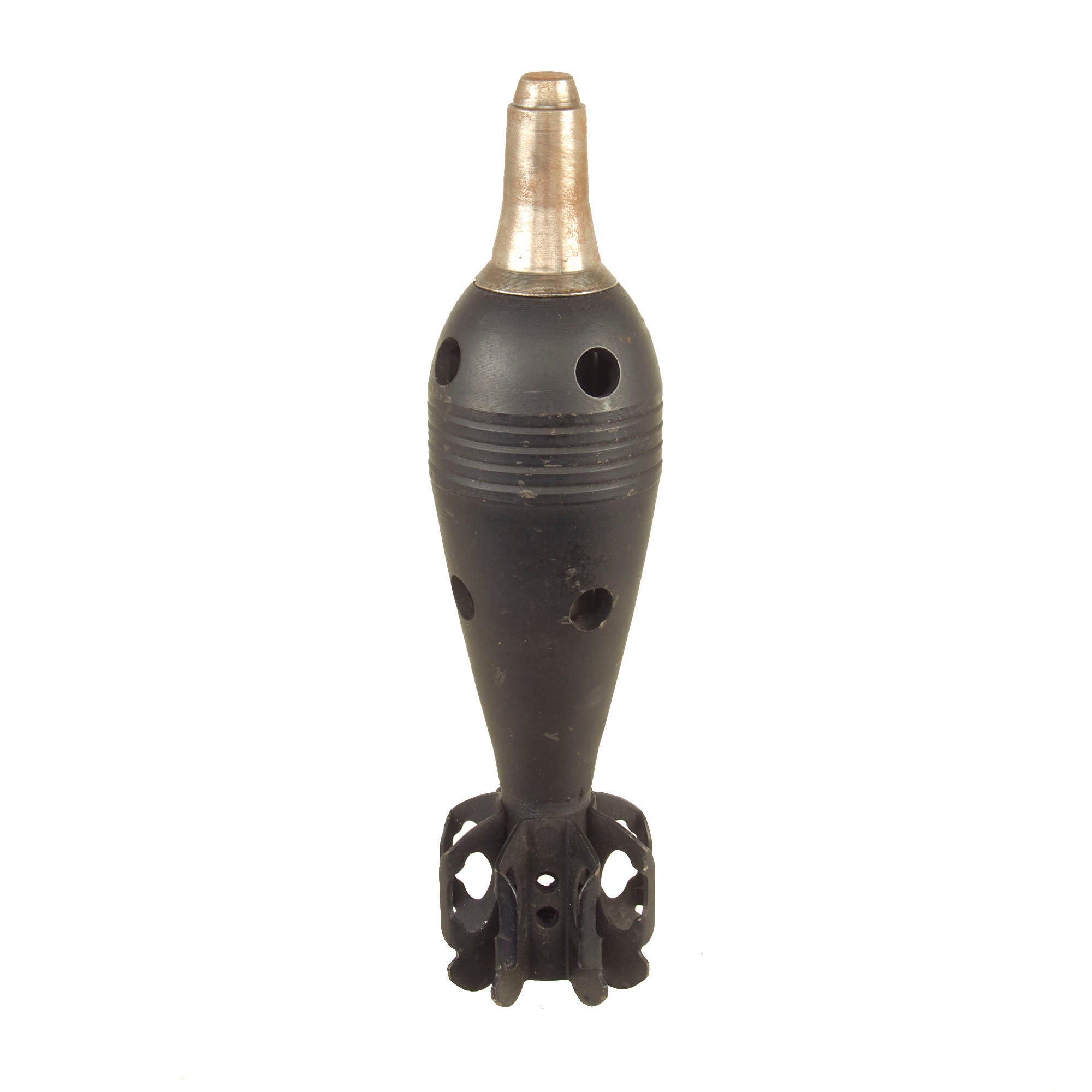 Original Item: Only One Available. This is a fantastic example of a French WWII 60mm mortar with integral fragmentation pattern. This round was rendered inert, the point detonating fuse replaced with a solid one that was made with a counterbalance. There are holes drilled into the body and can no longer be filled with any combustible components making it live again, making it BATF compliant.
