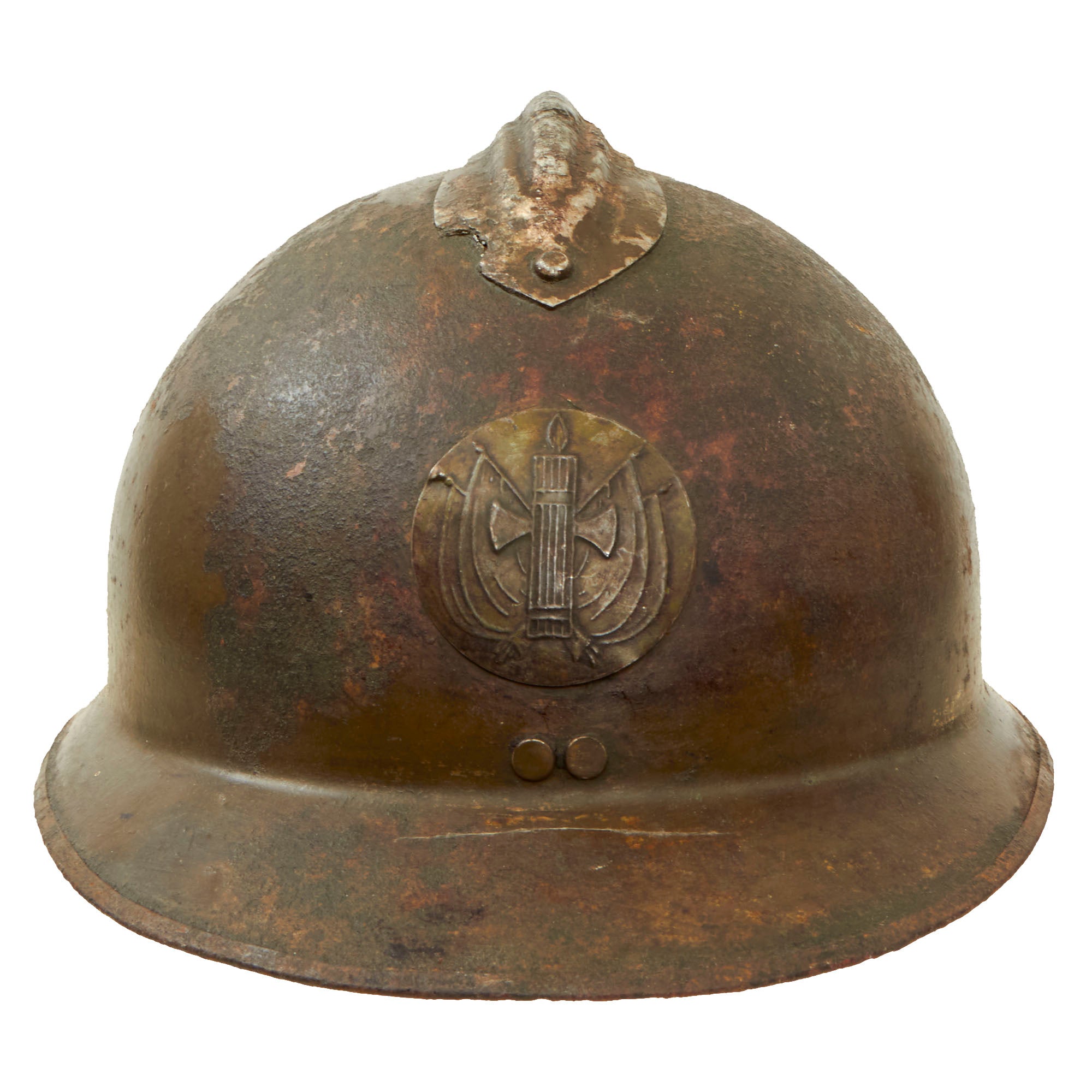 Original Item: Only One Available. This is a very rare bird that doesn’t come up often. A genuine very good condition M1926 French "Adrian" helmet. It is still painted in the original Olive Green, but sports a badge for the Pro-Fascist Government in Vichy. After the Fall of France on June 25, 1940, France was divided into occupied territory in the North, and the south was put under the administration of the Pro-Germany Fascist government based in Vichy, France.