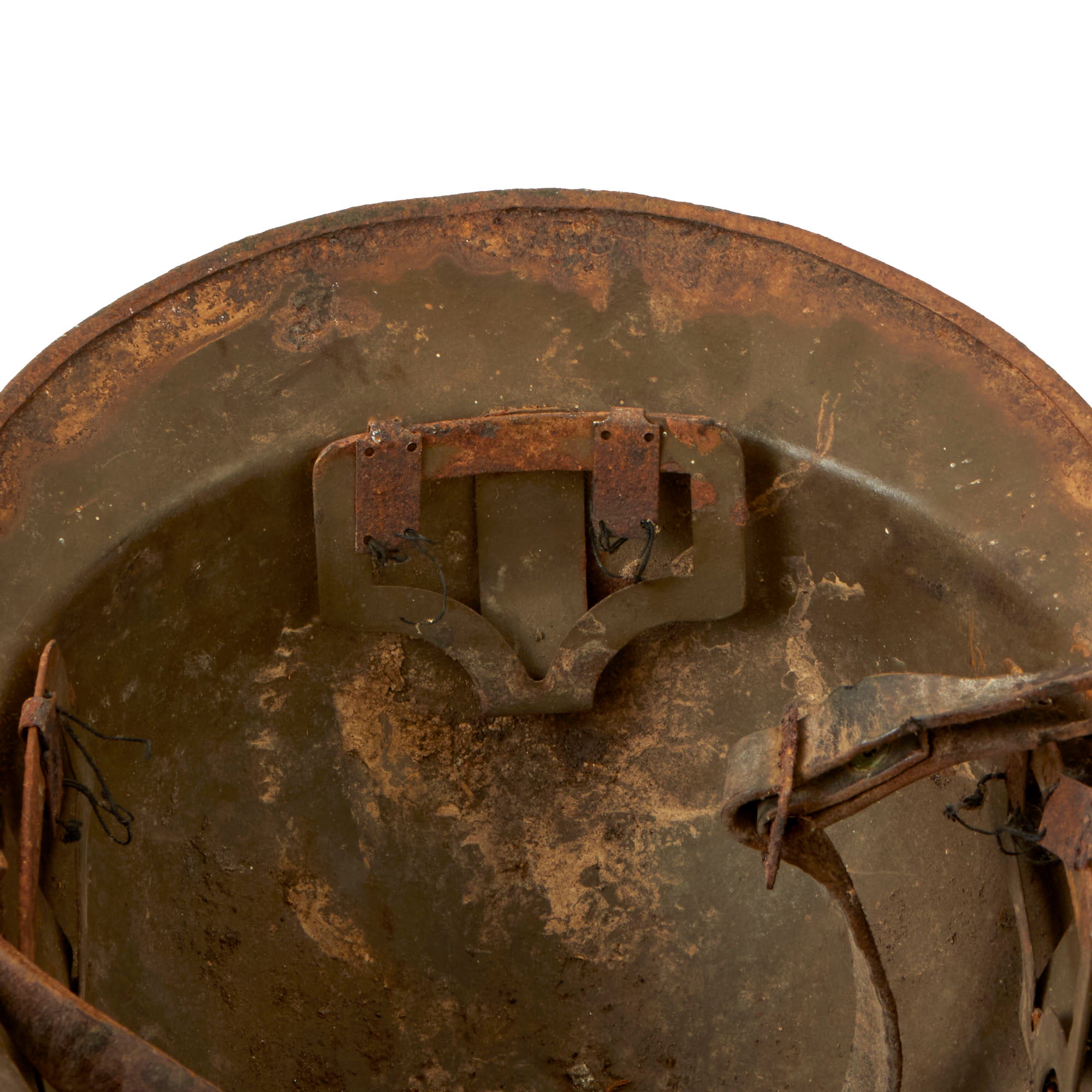 The helmet does not retain its liner but does retain its original leather chinstrap which is itself in rough shape, but still complete. The shadow around the badge does signify that it has always been with the helmet, making this a very rare example of a scarce helmet. Ready for further research and display.