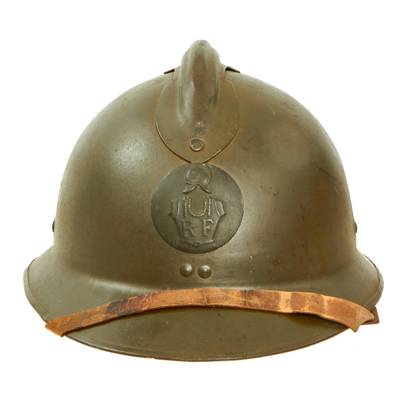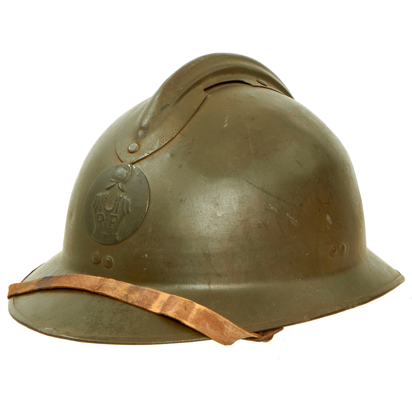 Original Item: Only One Available. This is an excellent honest condition WWII French M1926 Adrian Helmet for Engineer Troops. This example is in very good original condition, showing signs of honest wear and wear that has accumulated over the past several decades from storage. Affixed to the front is the emblem for Army Engineers, which features the helmeted Curaisse with RF on the chest. The badge has undoubtedly been on the helmet since the beginning!