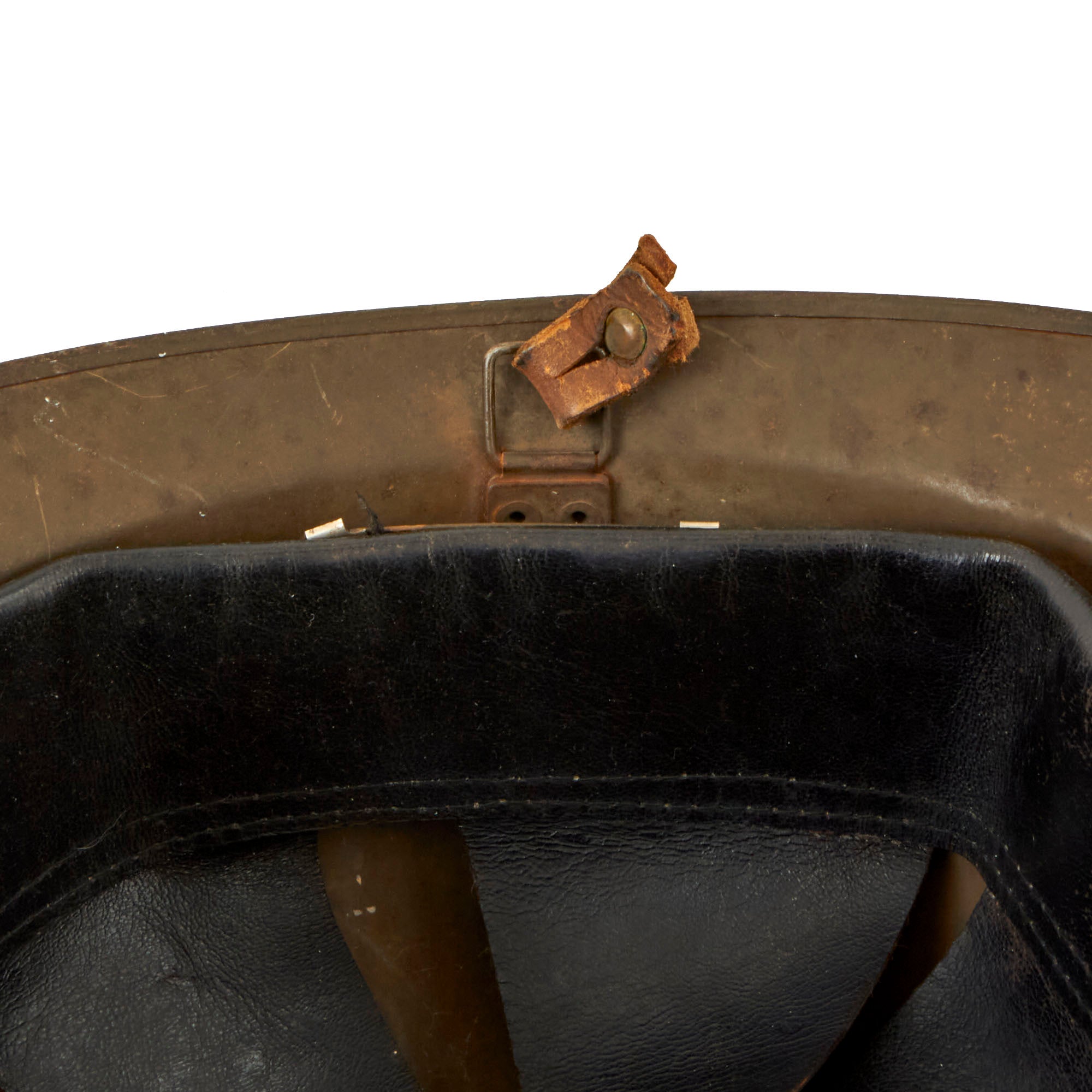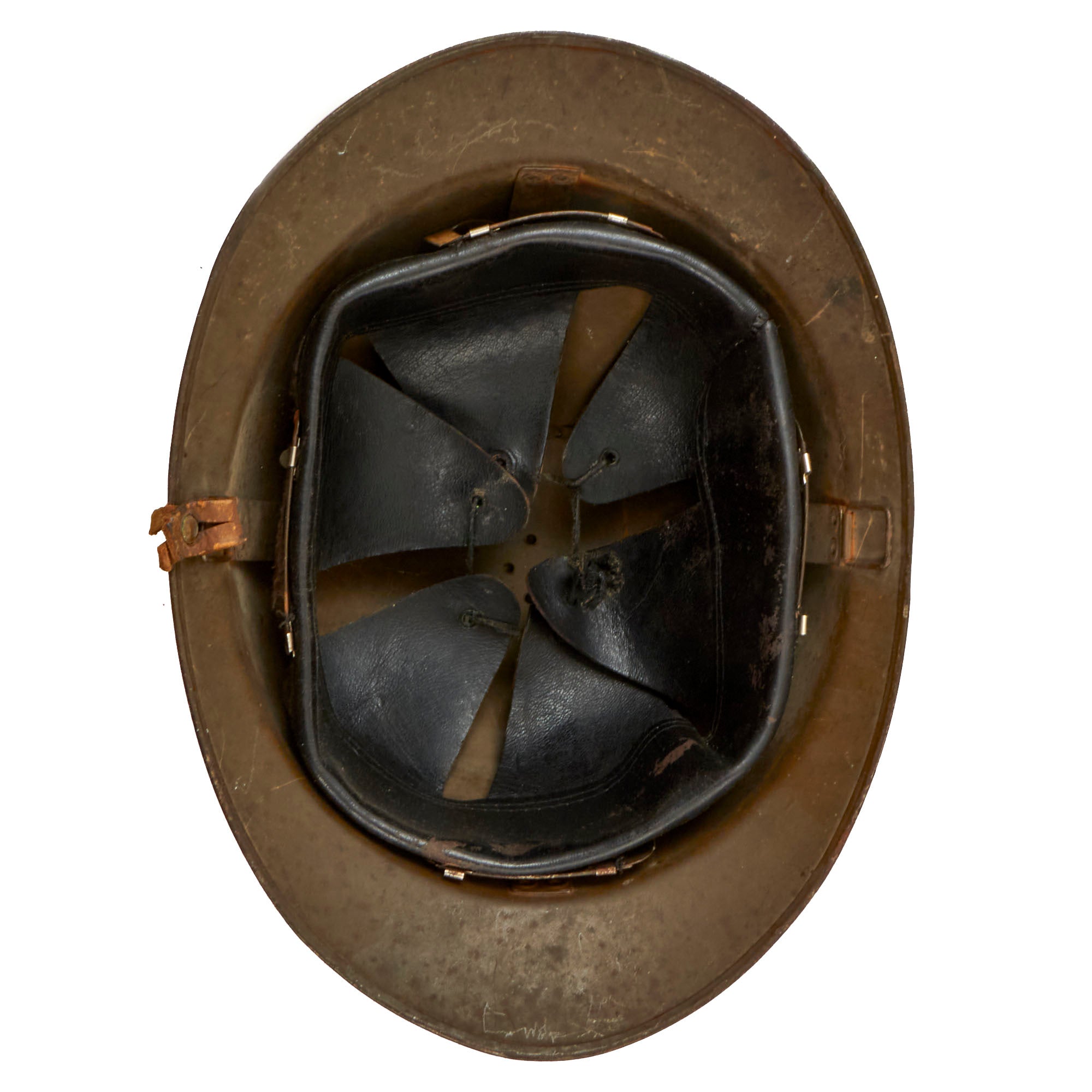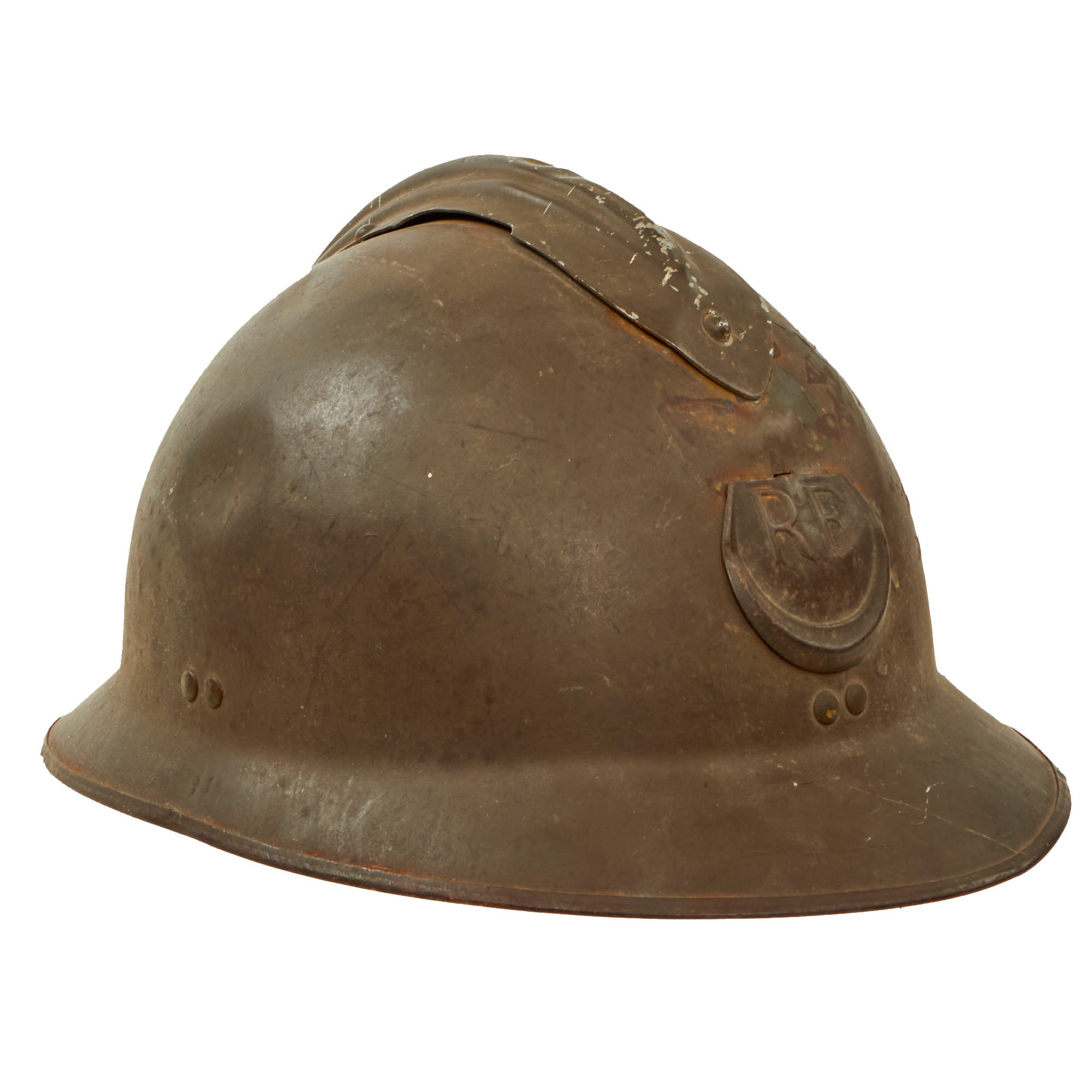 Original Item: Only One Available. Excellent genuine World War II model 1926 French North African campaign Zouave helmet. The helmet retains the original olive green paint and is complete with the French North African Zouave RF (République Française) badge to front. This example is in a scarce, large size, roughly 7½. Features a wonderful complete original black leather liner in a good condition. The liner finish is cracking around the rim of the liner band but the fingers are all in good shape. The chinstrap is absent on this example, one of the ends still retained on one of the chinstrap bales. Overall condition of the helmet is very good, shell shows some minor dings, scratches and paint loss consistent with age. These helmets are rare and very hard to find in such good condition.