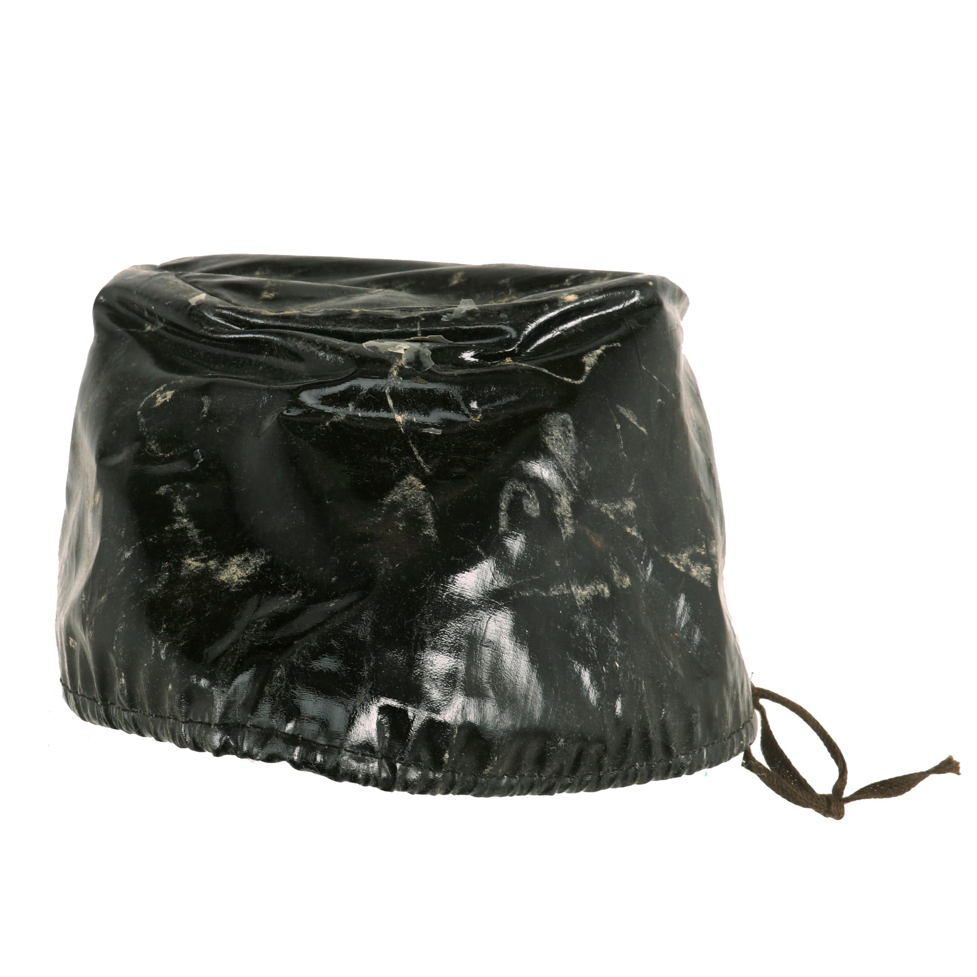 Original Item. Only One Available. This is a scarcely seen oilcloth kepi rain cover for the French kepis worn during World War II. The oilcloth is in fair shape with some damage as shown, as these were often stored flat causing the oilcloth to crack.