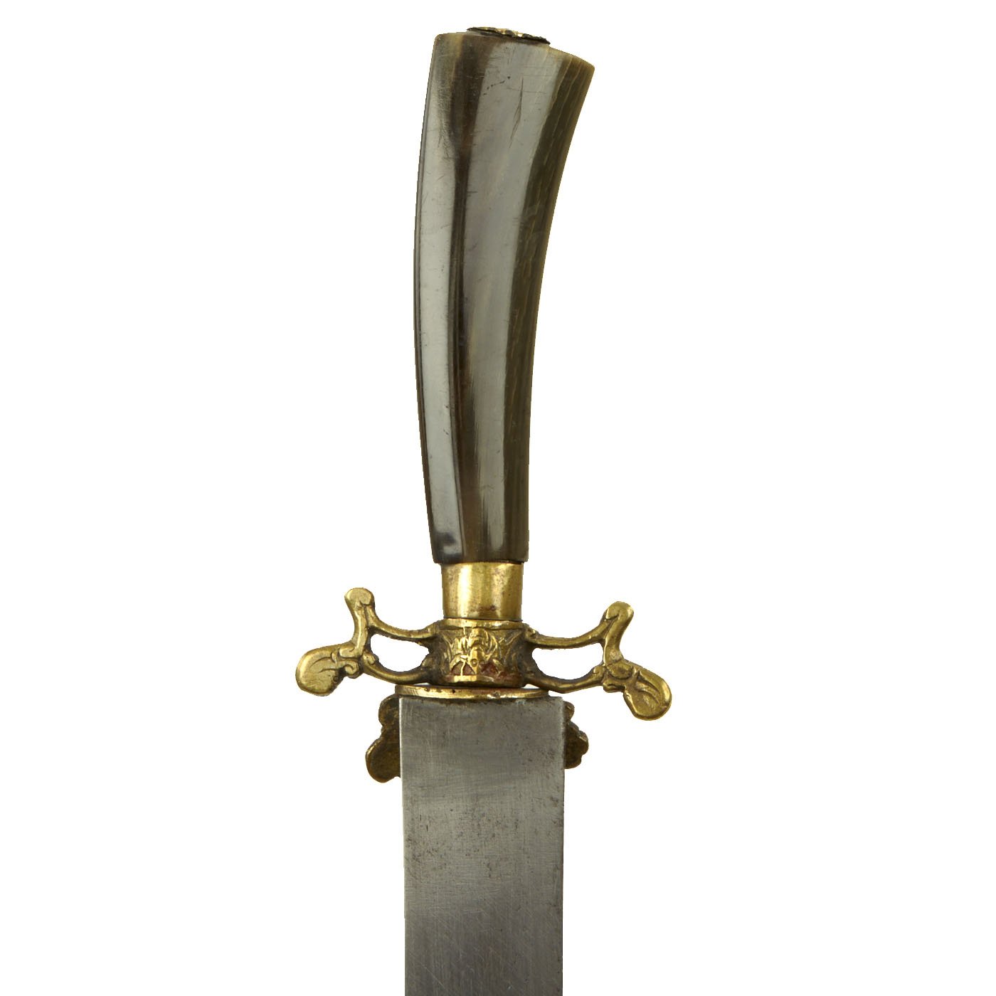 Original Item: Only One Available. This is an item that simply reeks of romance! In use for centuries, the German Hirschfänger (Deer Catcher) long hunting daggers have always made lovely display pieces, as well as military sidearms. They were designed to quickly end the struggling of wounded game. Many of the early bayonets used by the various German States were based on the Hirschfänger design, which is both simple and elegant, almost a short sword or dirk in practical terms.