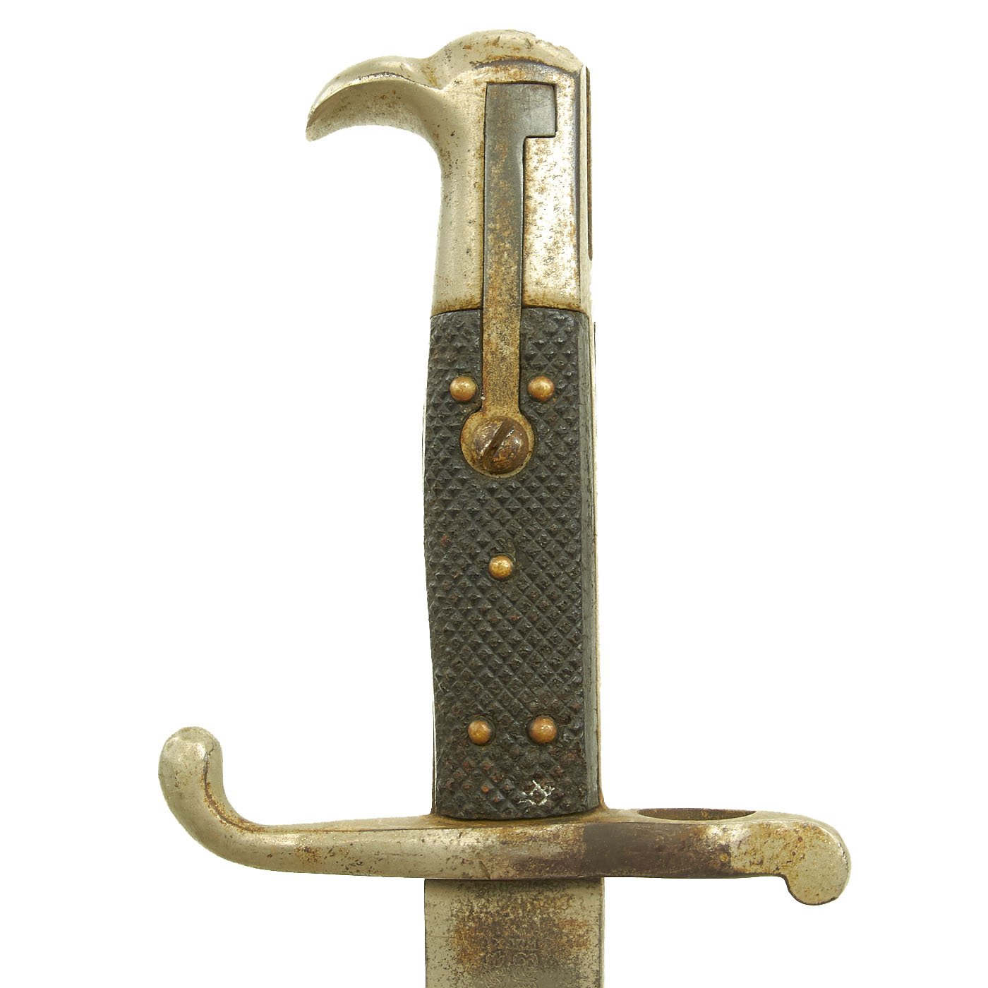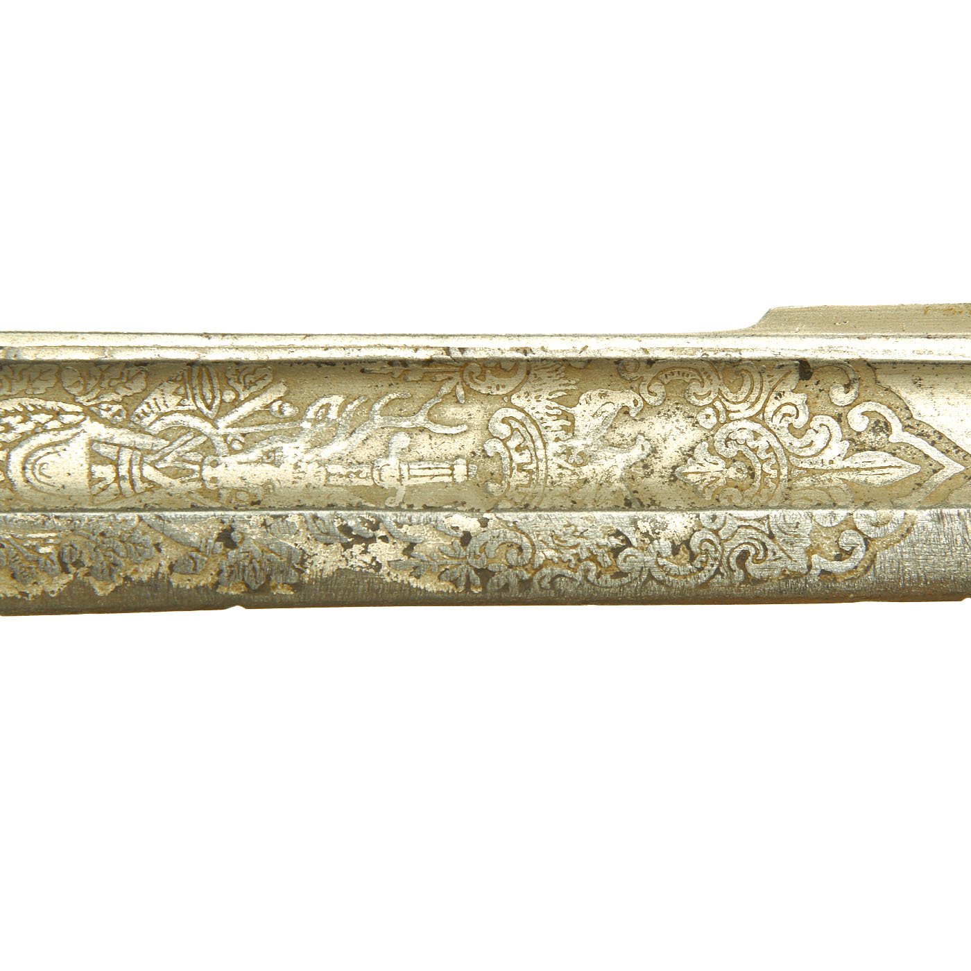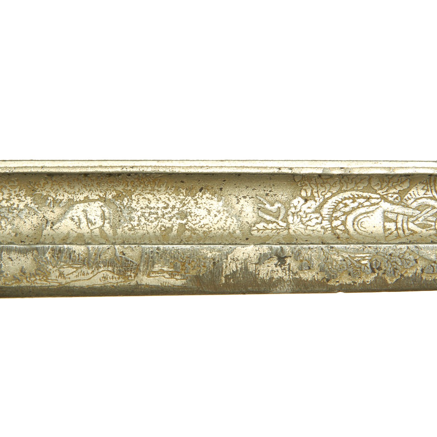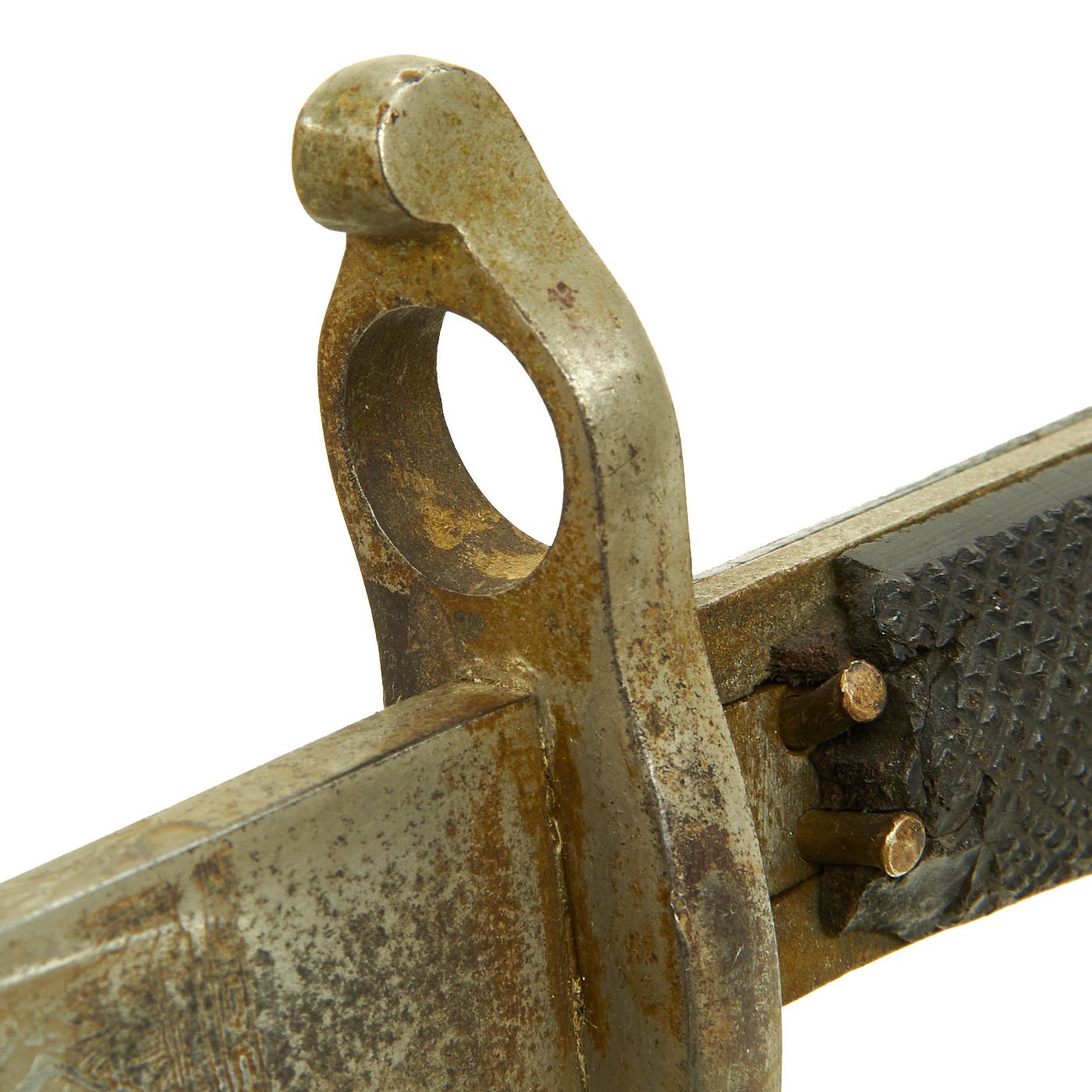 Original Item: Only One Available. This particular fine quality etched bladed bayonet was intended to actually fit onto the Mauser 1871 Rifle which is unusual as many were never machined to fit and also lacked the catch assembly. This design is based on Hirschfänger (Deer Catcher) long hunting daggers in use in the German area for centuries. It has an overall length of 24 ¼” with a 19 ¼” long blade.