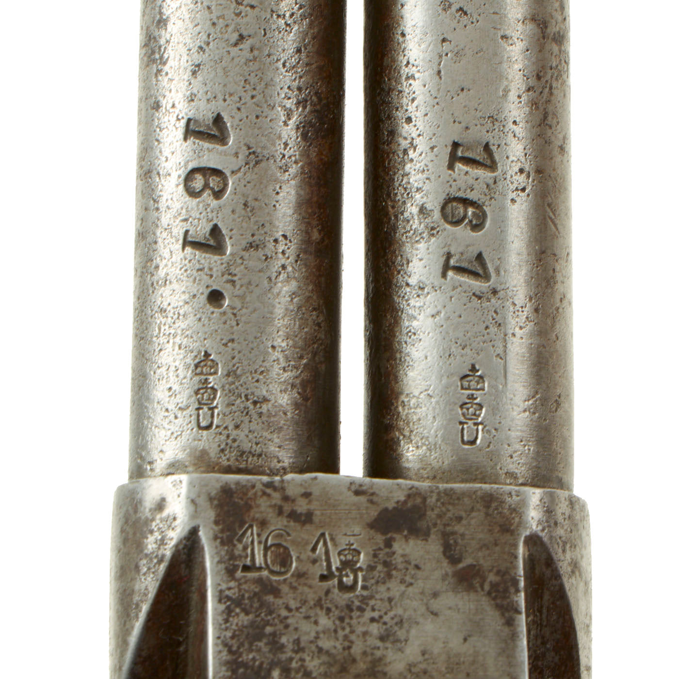 The underside of the barrels and the frame are all marked with serial number 161, and with Crown / Crown / U, a German proof mark used during the 19th and early 20th centuries. Dating to sometime in the late 1840's, pistols such as this were intended for self protection.