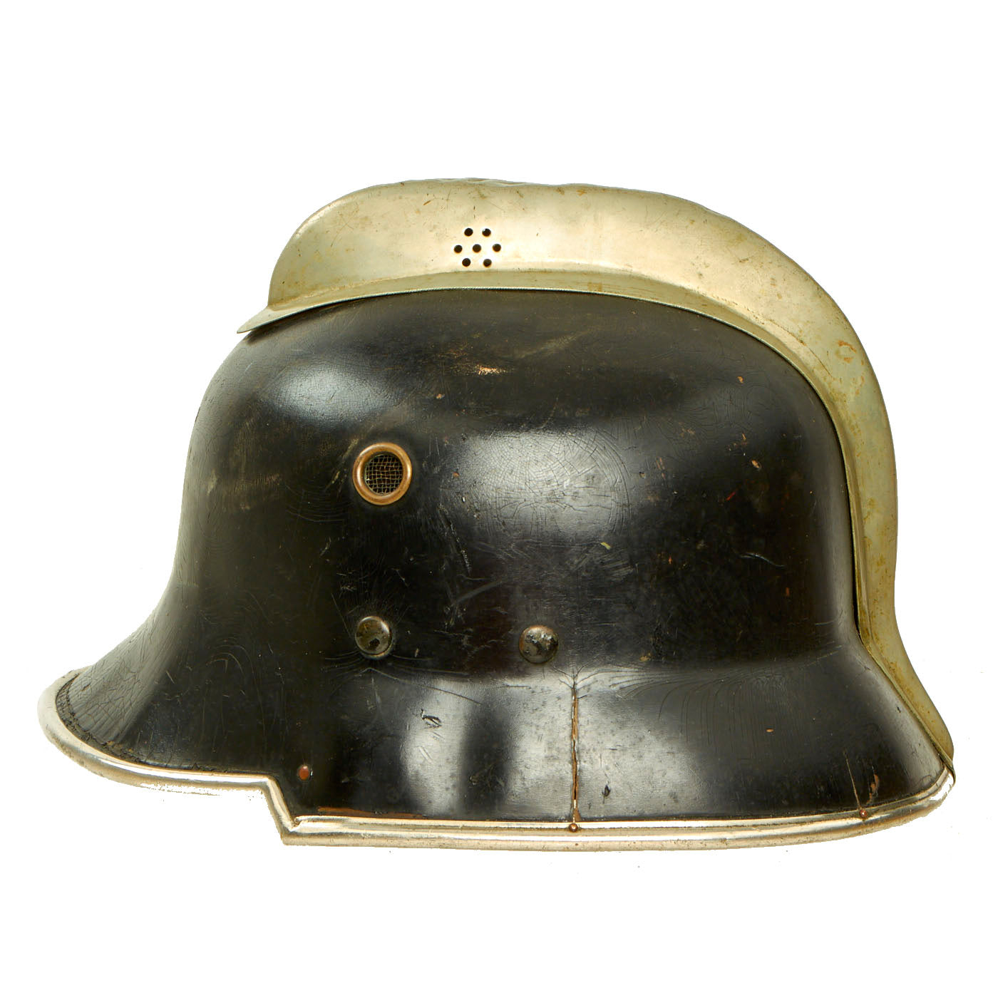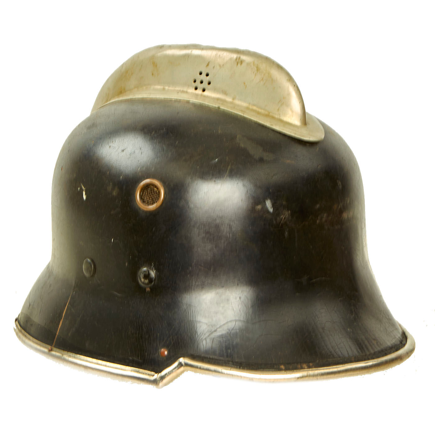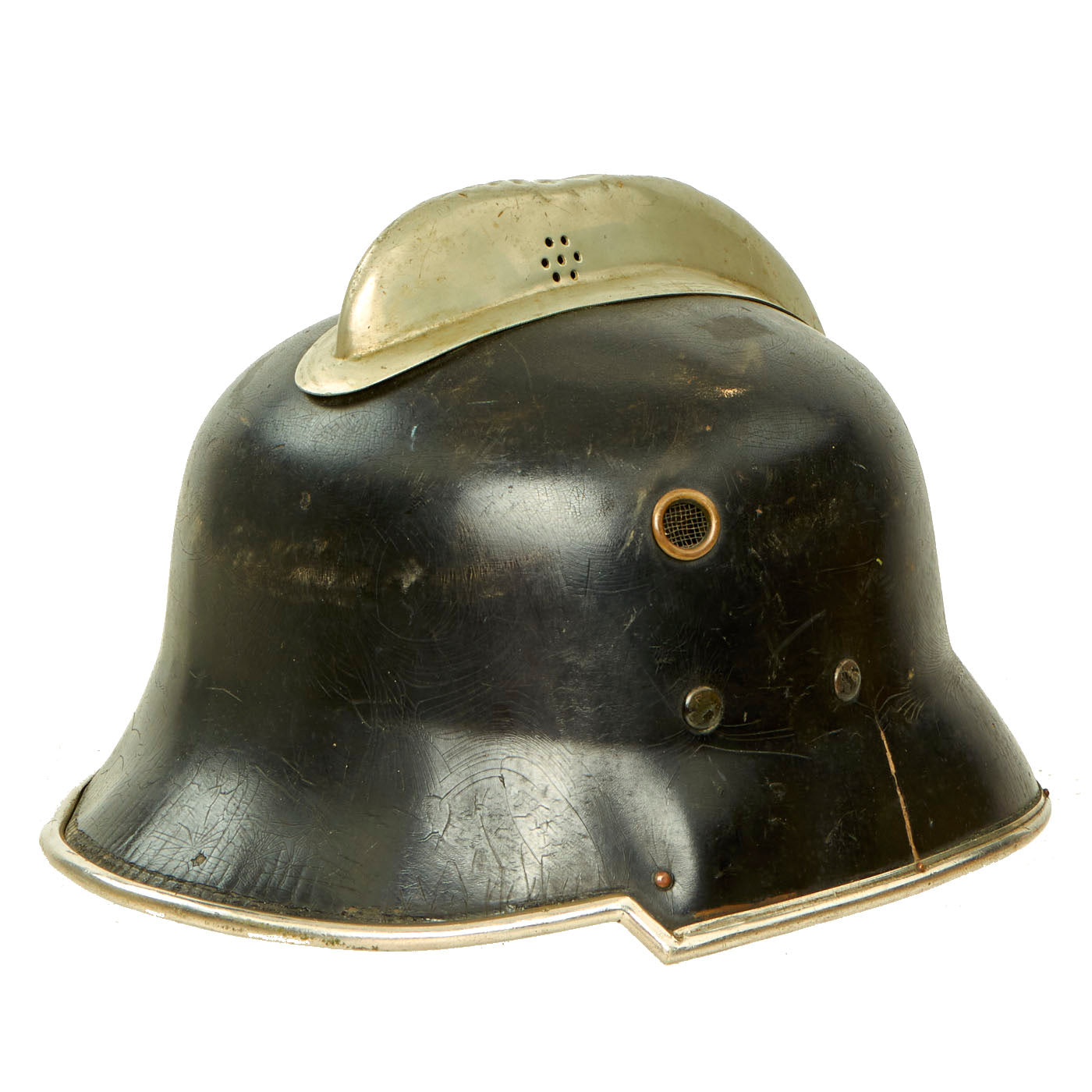 In 1929 a light-weight plastic fiber (Vulkanfiber) helmet was prototyped for general use by all fire-fighting units. The first models were issued in 1932 and proved unworthy of further consideration. As a result a second prototype was explored using light-weight steel alloy known as "Edelstahl." During this time leather fire-fighting helmets were slowly replaced with a combination of surplus World War I model steel helmets and privately manufactured versions in the “Austrian” pattern shell. These early helmets were generally painted black although some were left in their original field-gray World War I color.