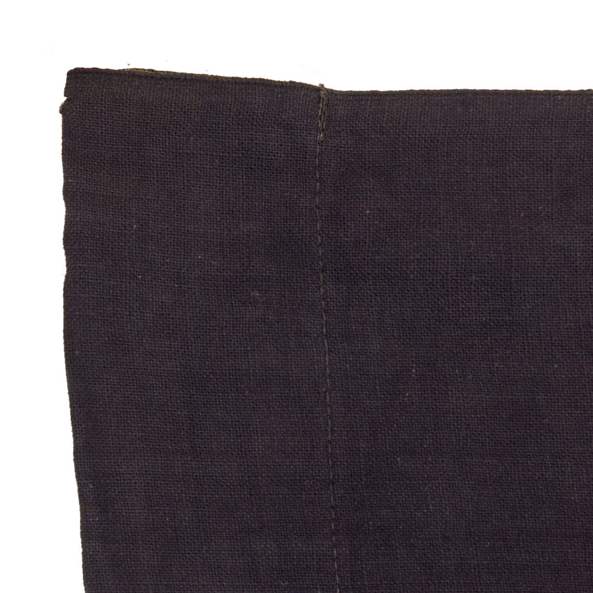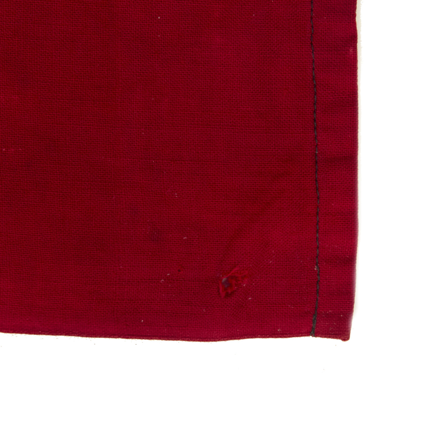 This is a very good condition example of a Pre-WWII German National Tri-Color Banner, which measures a nice 44 inches long by 29 1/2 inches wide. These were used inside buildings, or possibly during parades on poles. It is of all cotton construction, with the tri-color design dyed into the fabric. It is hemmed to have a hanging loop on one of the narrow ends.
