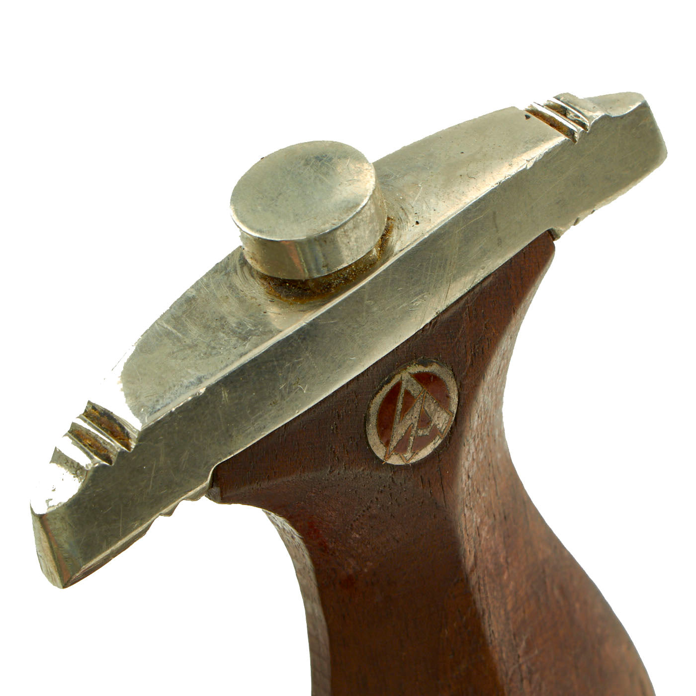 Prior to his "unmasking" as a traitor, Ernst Röhm was the leader of the SA. In 1934, he distributed approximately 100,000 SA daggers with his personal inscription on the reverse blade. These daggers were to honor individuals who had served with the SA prior to December, 1931. Other than the inscription, these pieces were identical to the standard M1933 SA dagger. After the Röhm purge, the inscription was ordered to be removed. Many examples were returned to the factory for grinding. Others were simply ground in the field by whatever means were available. Examples will occasionally be encountered with remnants of the original inscription remaining on the blade, but mostly none will remain. Some blades exist with an intact inscription, reflecting only the removal of the Röhm signature. Very very rarely is an example seen with a full, untouched inscription, as the holder would have surely risked a charge of treason.