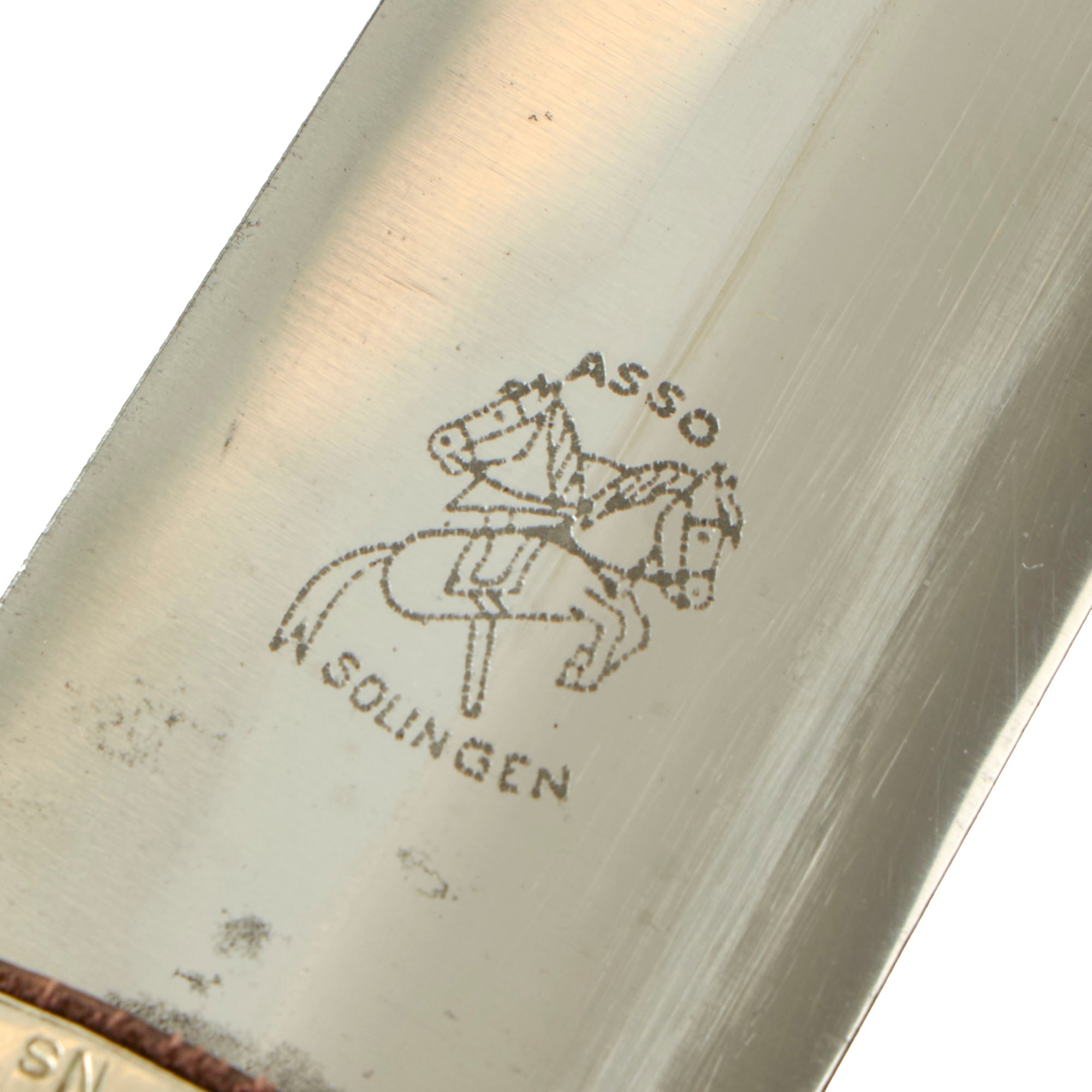 The reverse of the blade is clearly marked with the "Two Hobby Horses in Saltire" trademark of Artur Schüttelhöfer & Co., surrounded by their trade name and location: