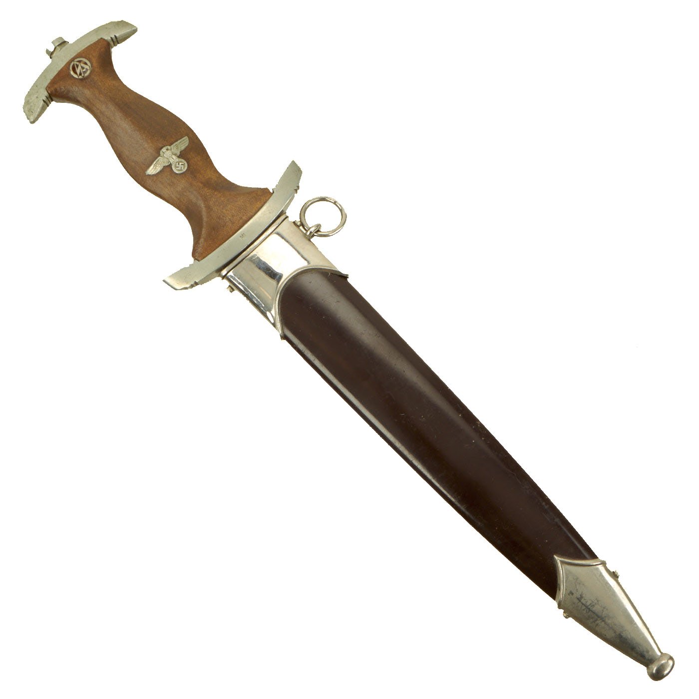 The SA or Brown Shirts, were a private political formation which Adolf AH and the NSDAP used to maintain order at organized Party meetings and demonstrations. The group was formed in 1921, and grew to a huge force of nearly 3,000,000 men by the later 1930's. To instill esprit de corps, as well as create employment for the Blade City of Solingen, it was decided each SA man would carry a dagger with his Brown Shirt uniform. Huge quantities needed to be produced to accommodate the demand. The dagger initially was produced of hand-fitted nickel mounts with attractive finished wood grip and brown anodized (a bluing process) finished scabbard.