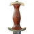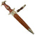 The grip is a fine product having a nice dark red brown color, with a medium center ridge construction. There is some light wear and pressure denting, and there also is a hole drilled in the reverse, all the way in to the tang. We imagine this was for possibly mounting the dagger, or maybe there was some type of insignia added on the back, now removed. It did cause a bit of splitting of the wood on the reverse. The grip fits the cross guards well, and there is no real wobble to the grip we can detect. The symbol button is nicely set, and has about 50% of the translucent enamel intact, and there is some oxidation of the nickel, as well as some cracking of the wood around it. The grip eagle is a fine example being the style with beak that points straight. Most of the details are still there to the eagle to include the beak, breast feathering, wing feathering, talons, wreath and mobile swas. There is a bit of wear and verdigris, showing that is the correct solid nickel silver for an early pattern eagle.