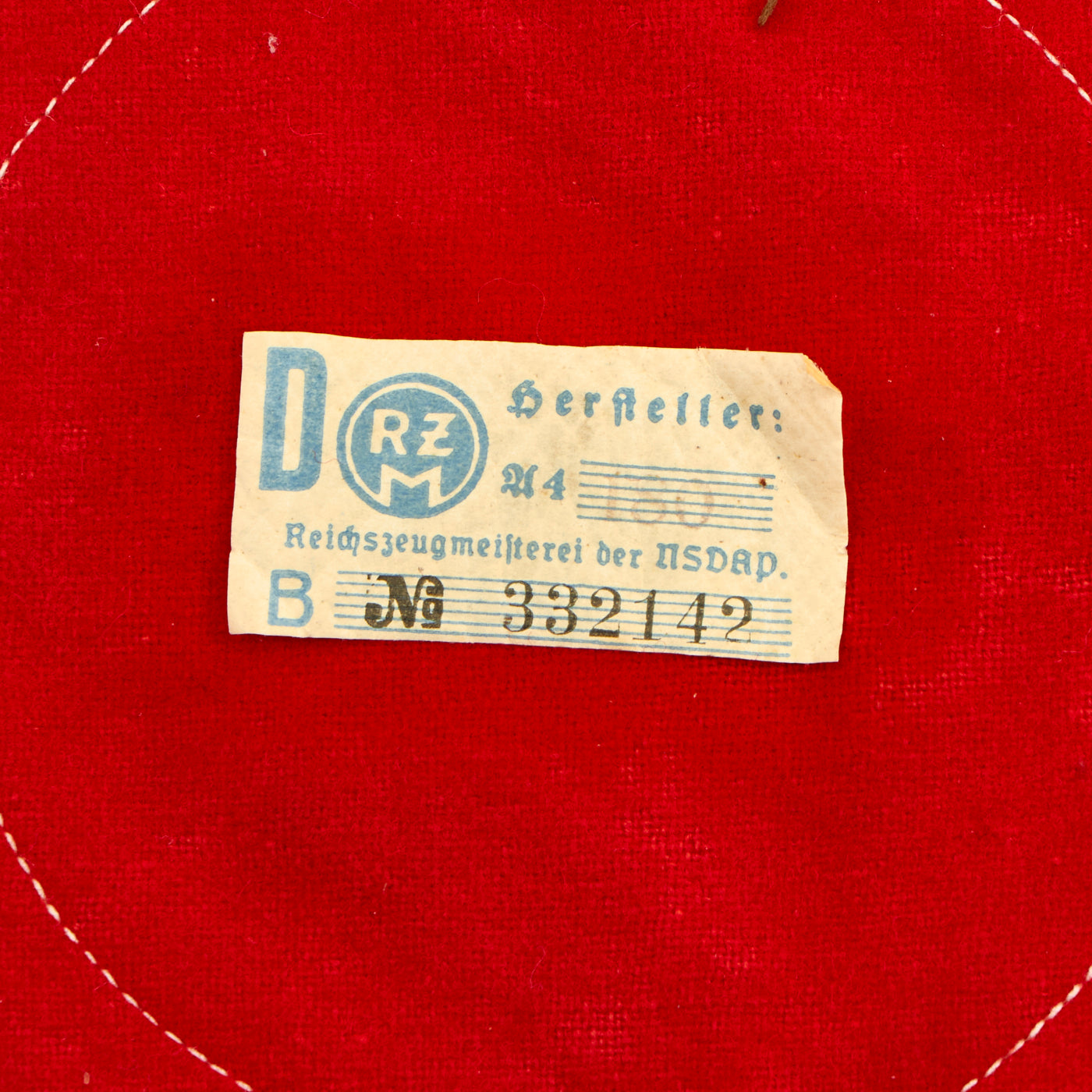 The inner side still features the original RZM tag which is crisp, with just a bit of folding from storage. The tag has a correct “B” tax code and features the RZM logo as well as the ink stamped numerical designation of the hersteller (manufacturer) A4/180 over lot No. 332142. There are minor moth nips present.